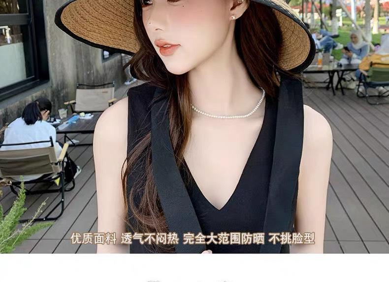 Sombrero de Paja de Ala Ancha para Mujer Nuevo de Verano para Viajes y Vacaciones Sombrero de Playa para la Costa Sombrero para el Sol con Protección Solar y Anti-UV