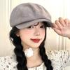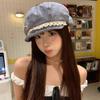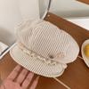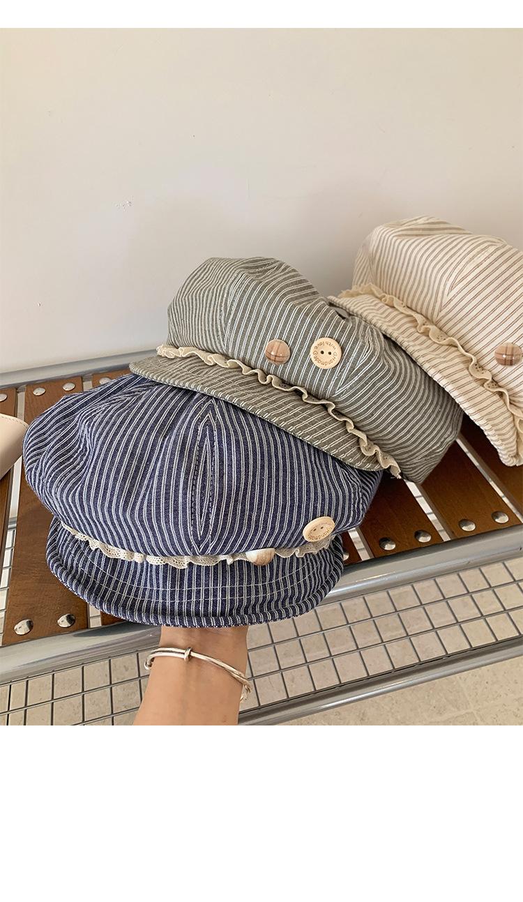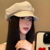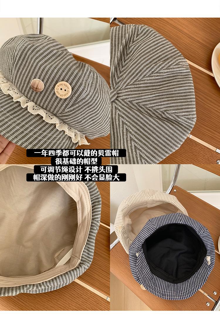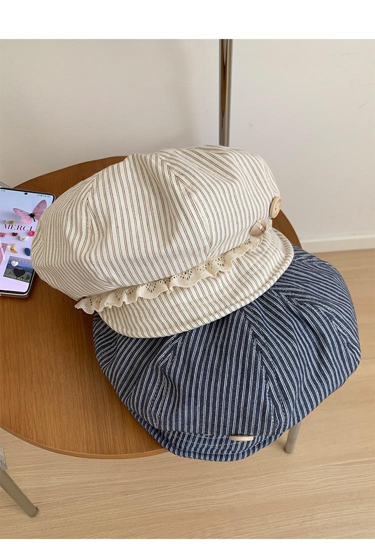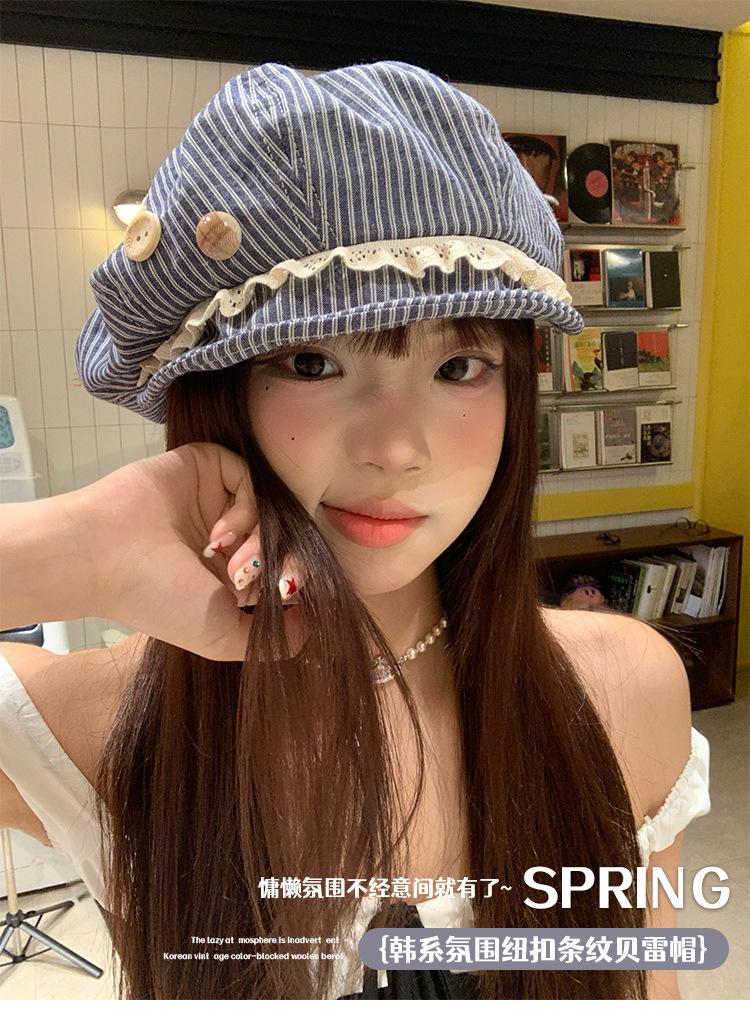 Boina a rayas con botón estilo coreano para mujer verano versátil circunferencia de cabeza grande muestra cara pequeña boina octogonal literaria nicho gorro de repartidor