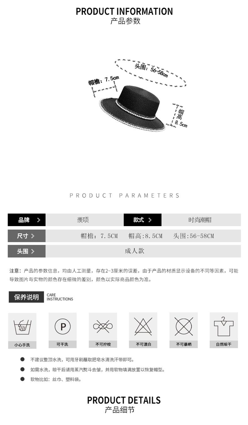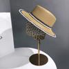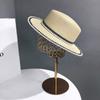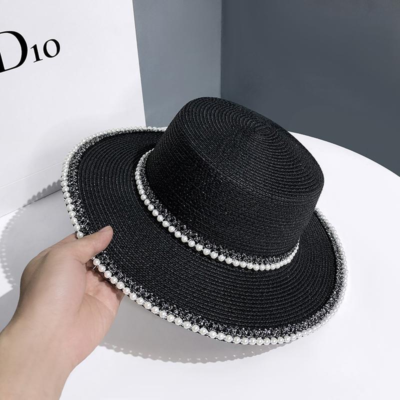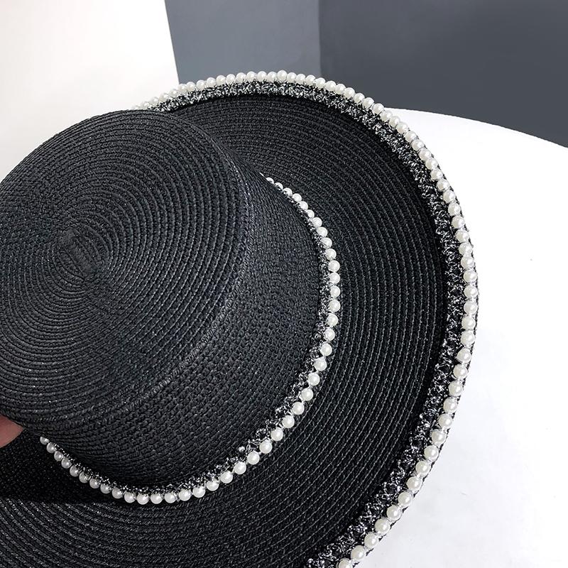 Sombrero de Paja Retro Francés con Perlas para Mujer Protección Solar Verano Viaje Marítimo Playa Sombrero Parasol Protección UV Sombrero para el Sol