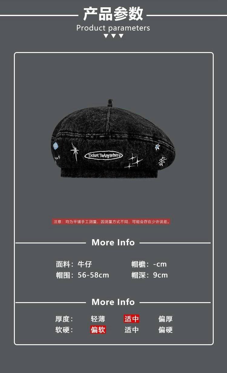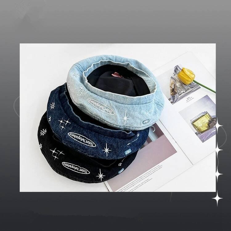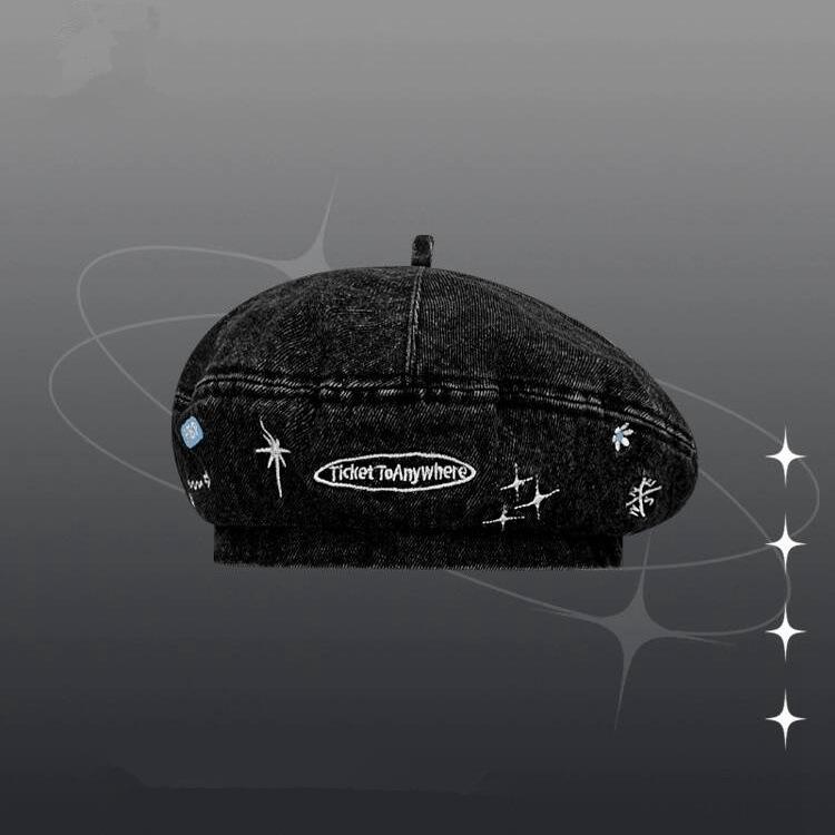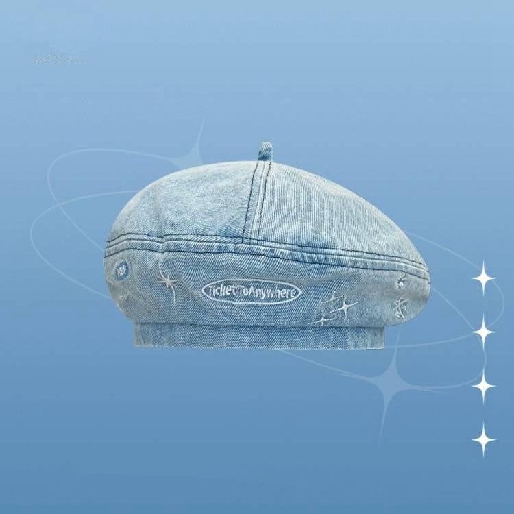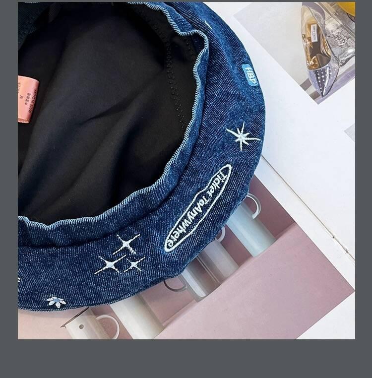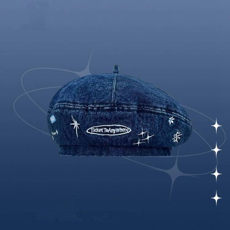 Boina de mezclilla bordada con letras dulces y geniales de estilo retro americano para mujer, nueva de primavera y otoño, de moda y combinable con todo, sombrero de pintor