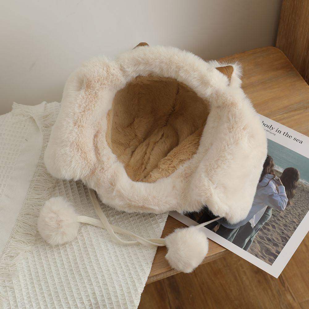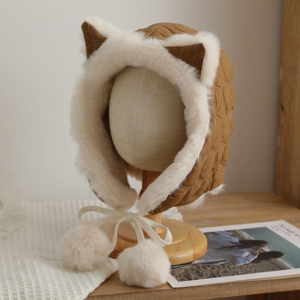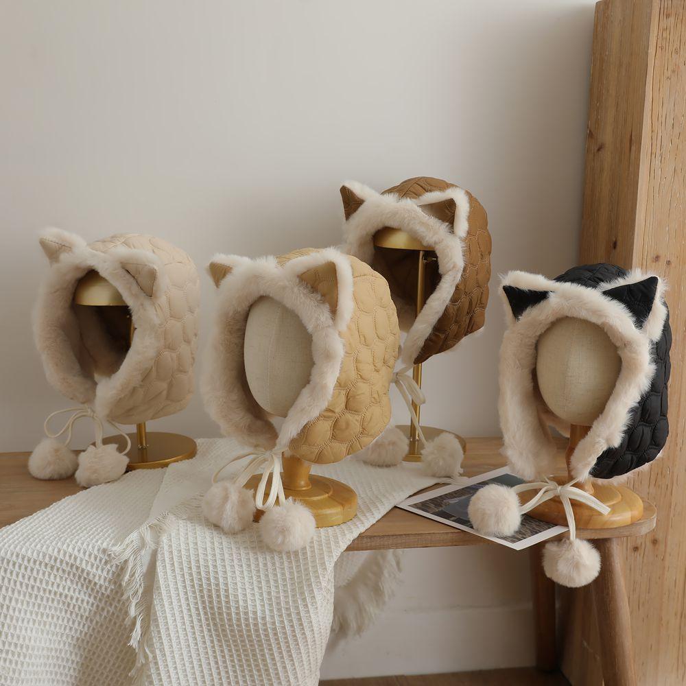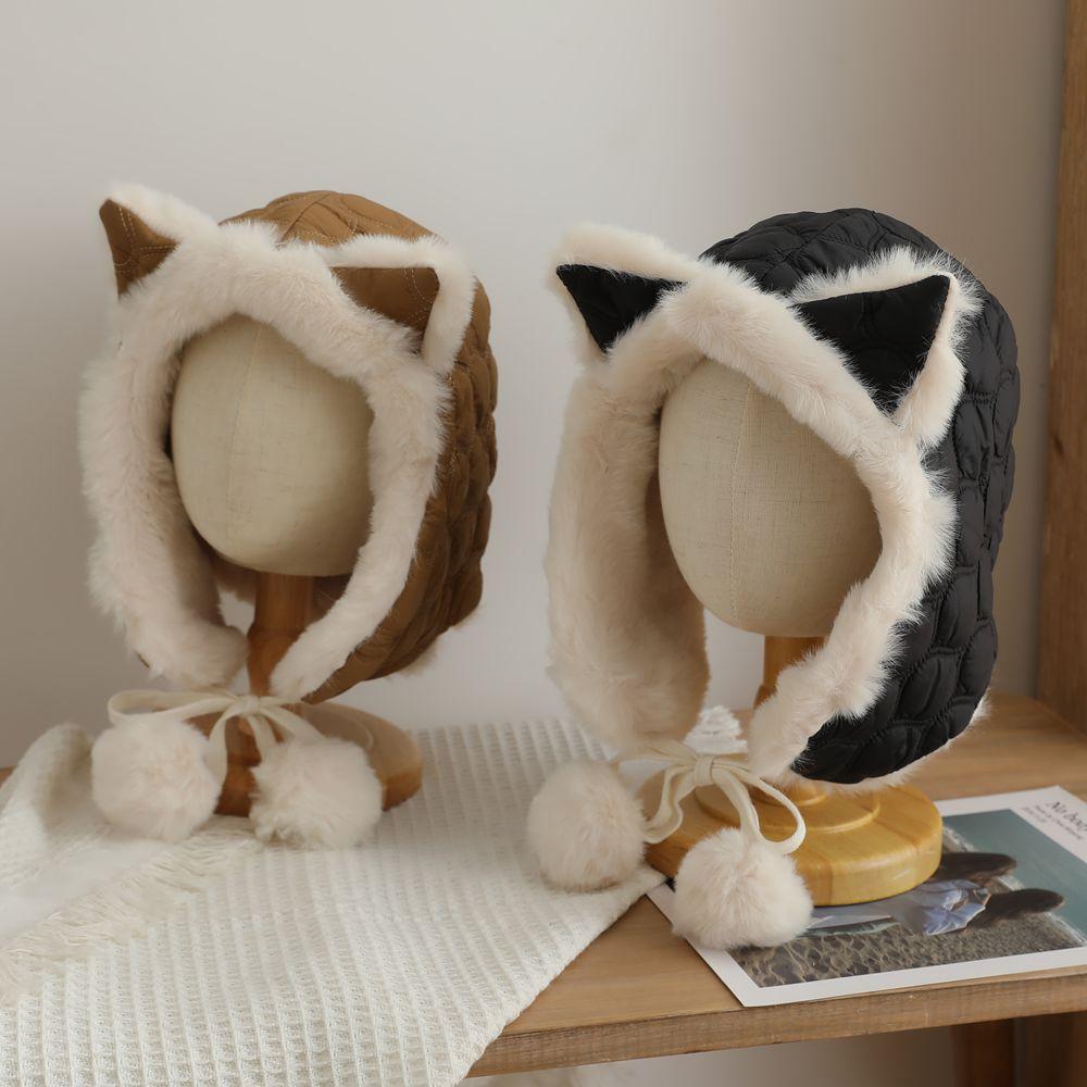 Gorro de felpa con orejas de zorro para mujer, otoño e invierno, bonito, nuevo, 2024, cálido, para ciclismo, resistente al frío, del noreste, Lei Feng.