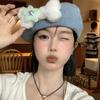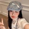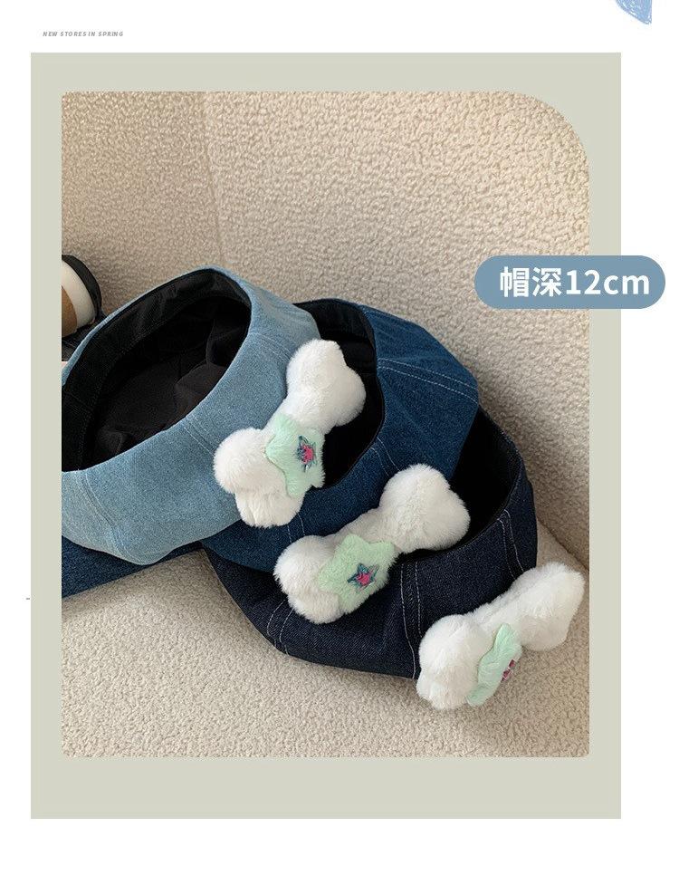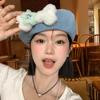 Bones Star Boina Azul Vaquero para Mujer Verano Cabeza Grande Alrededor Brote Mostrando Cara Pequeño Dulce Lindo Sombrero Nube