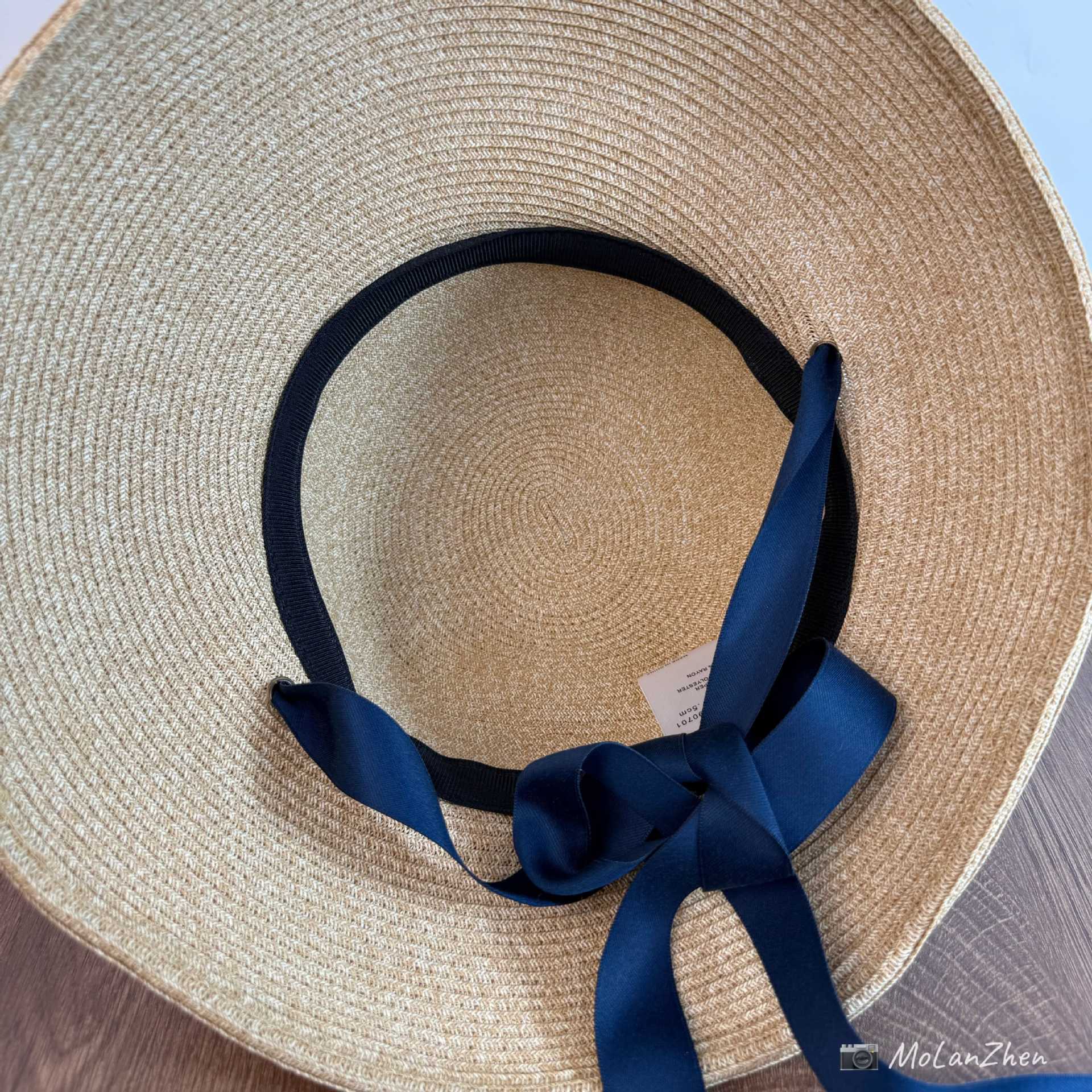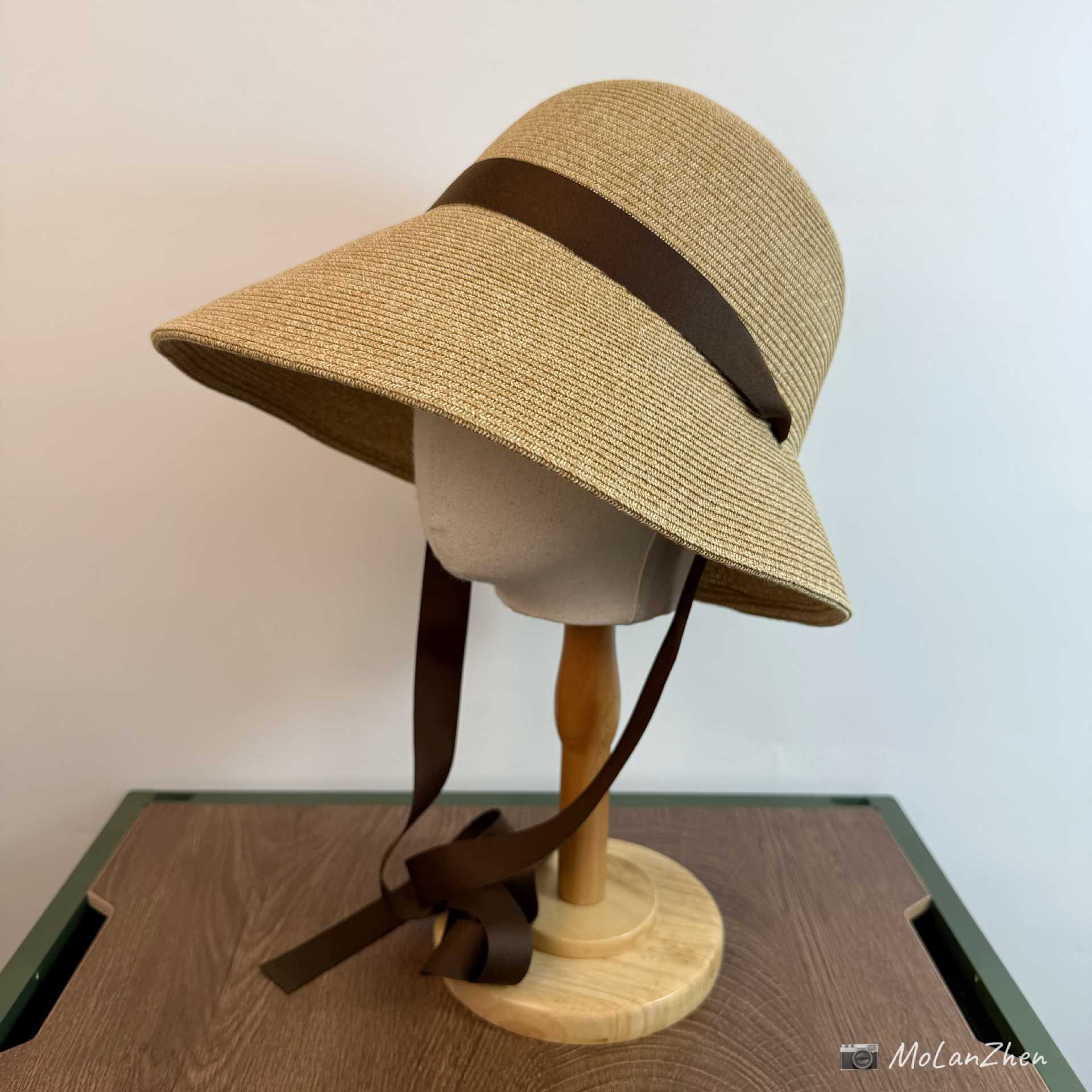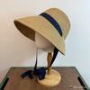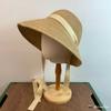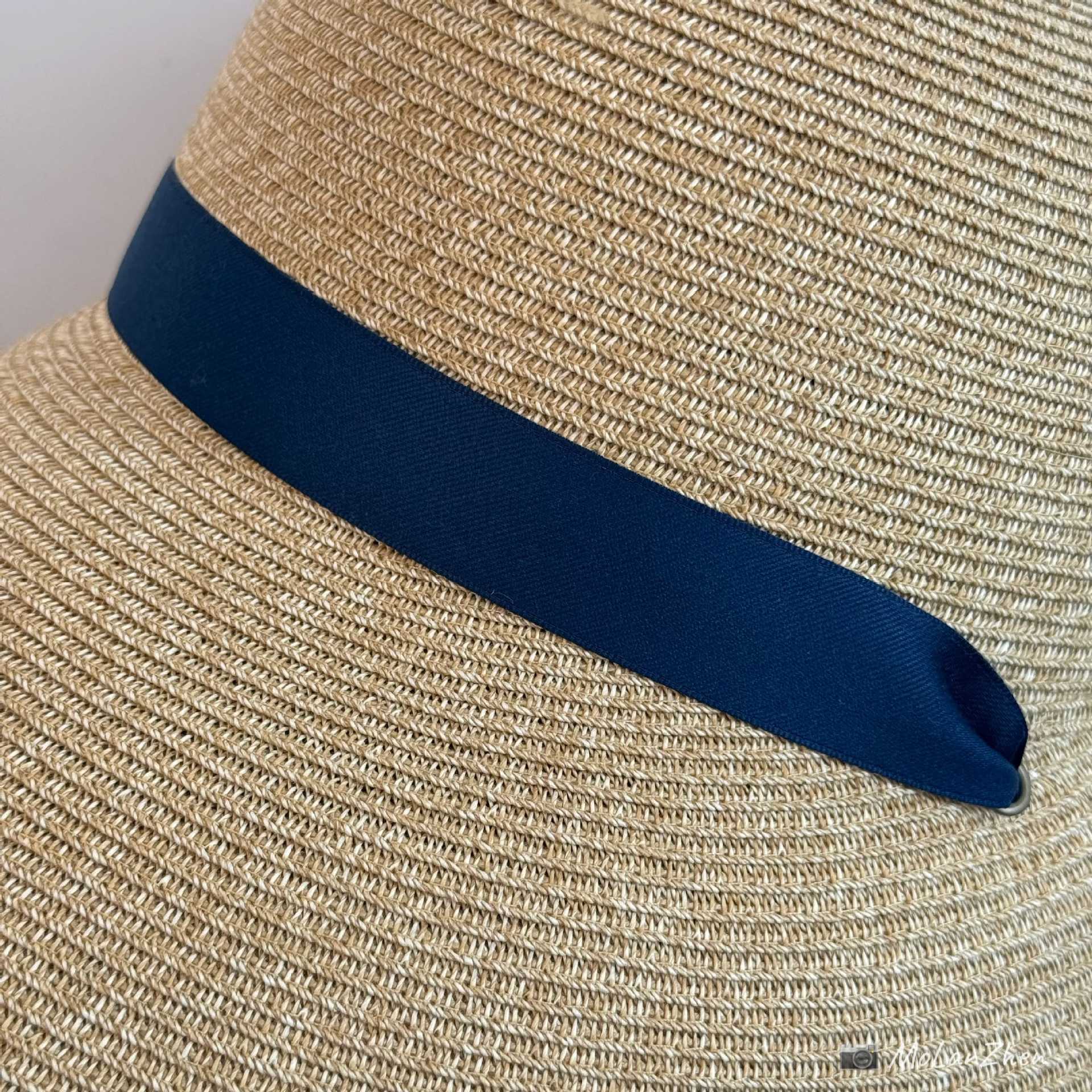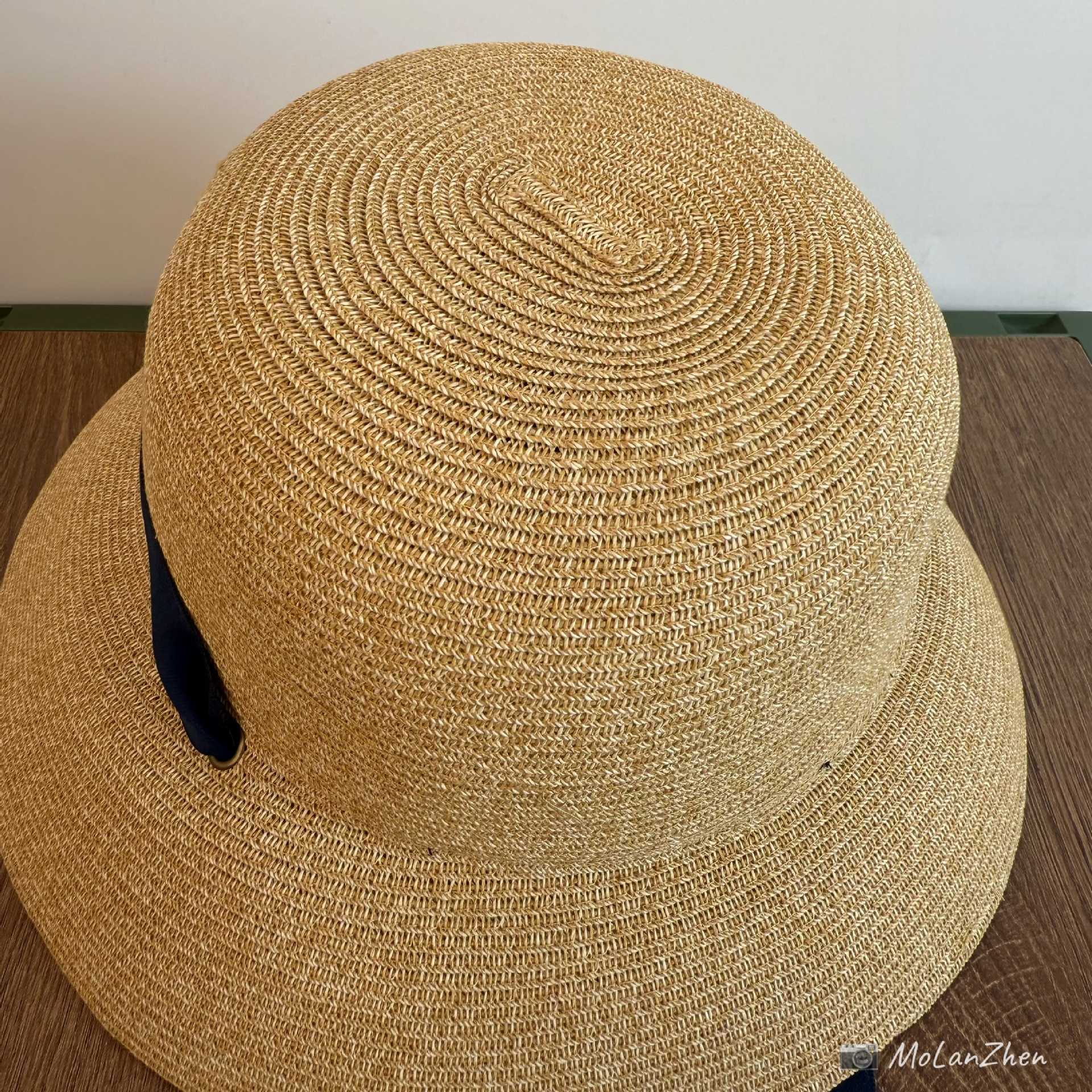 Sombrero de Paja Francesa Estilo Hepburn Primavera y Verano Protección Solar Delantero Largo Trasero Corto Sombrero para el Sol Plegable Vacaciones en la Playa Correa Sombrero para el Sol