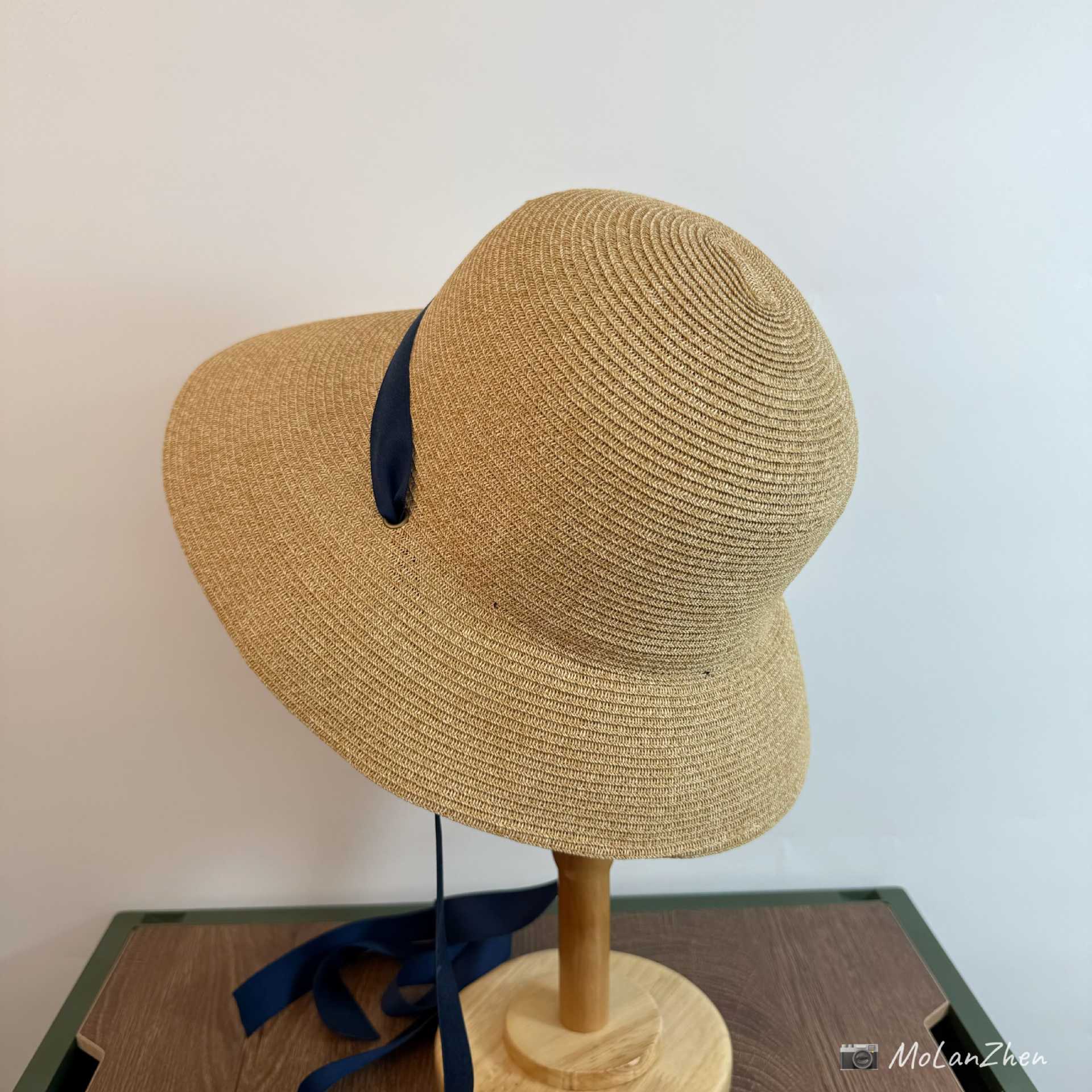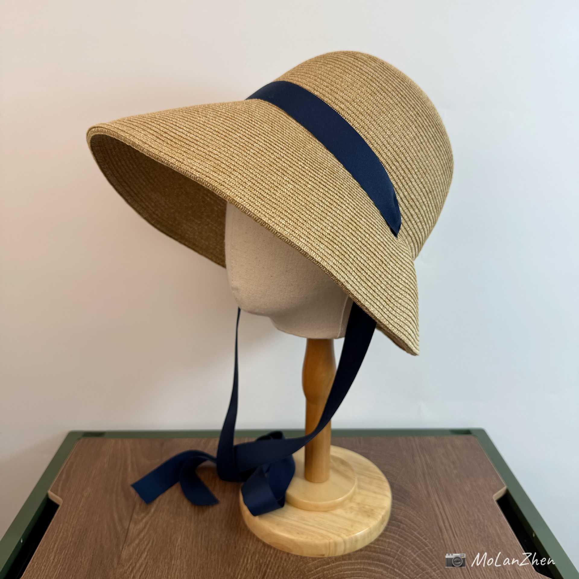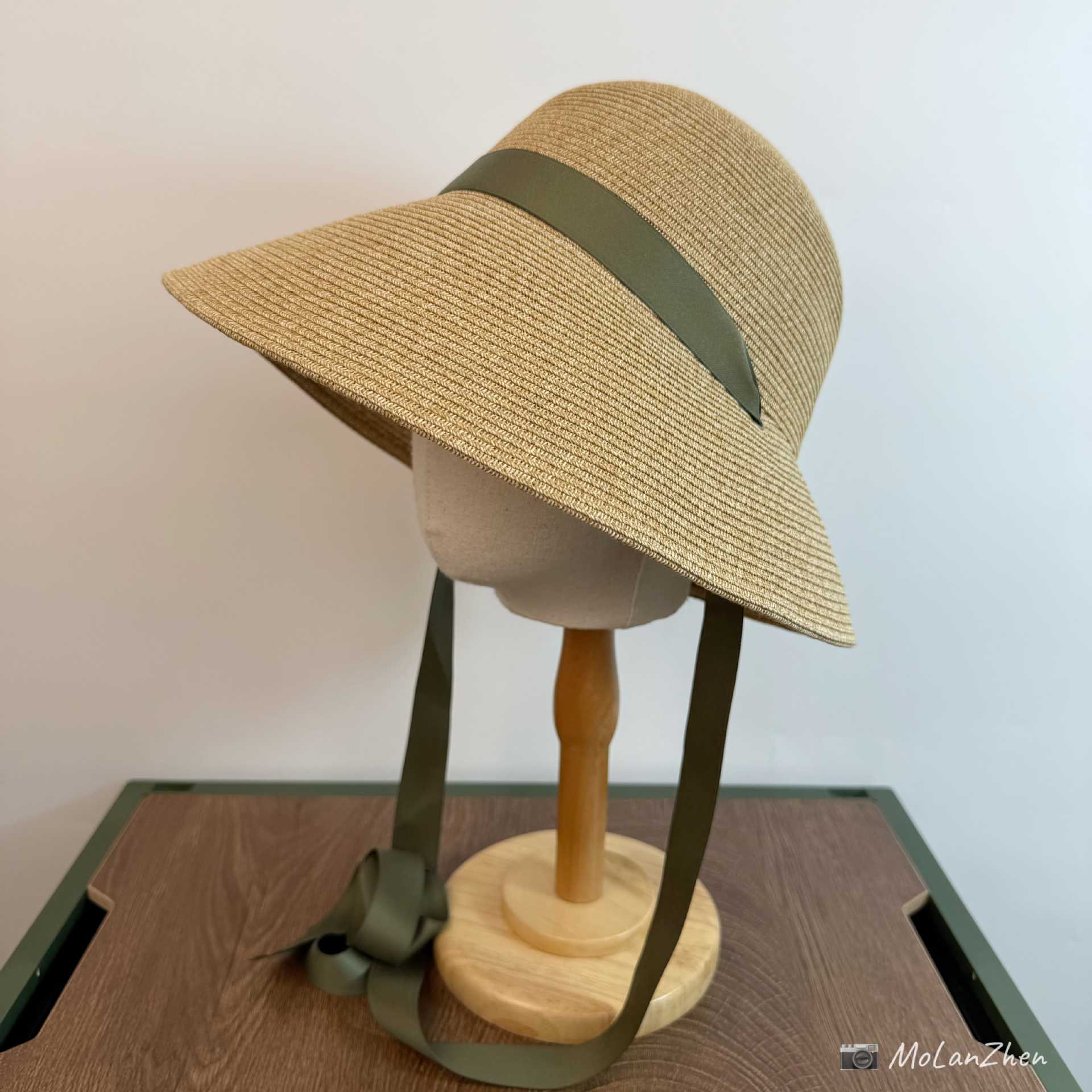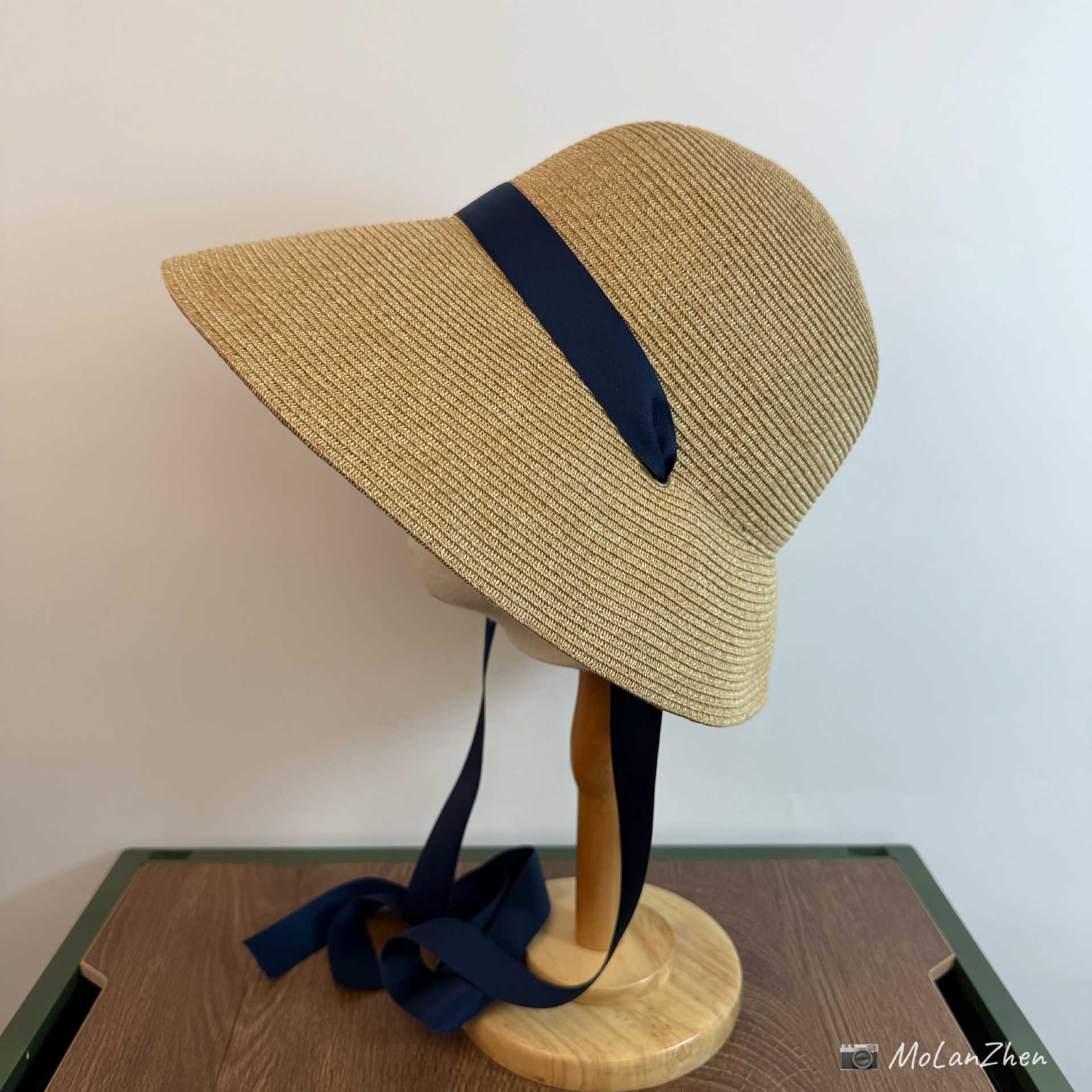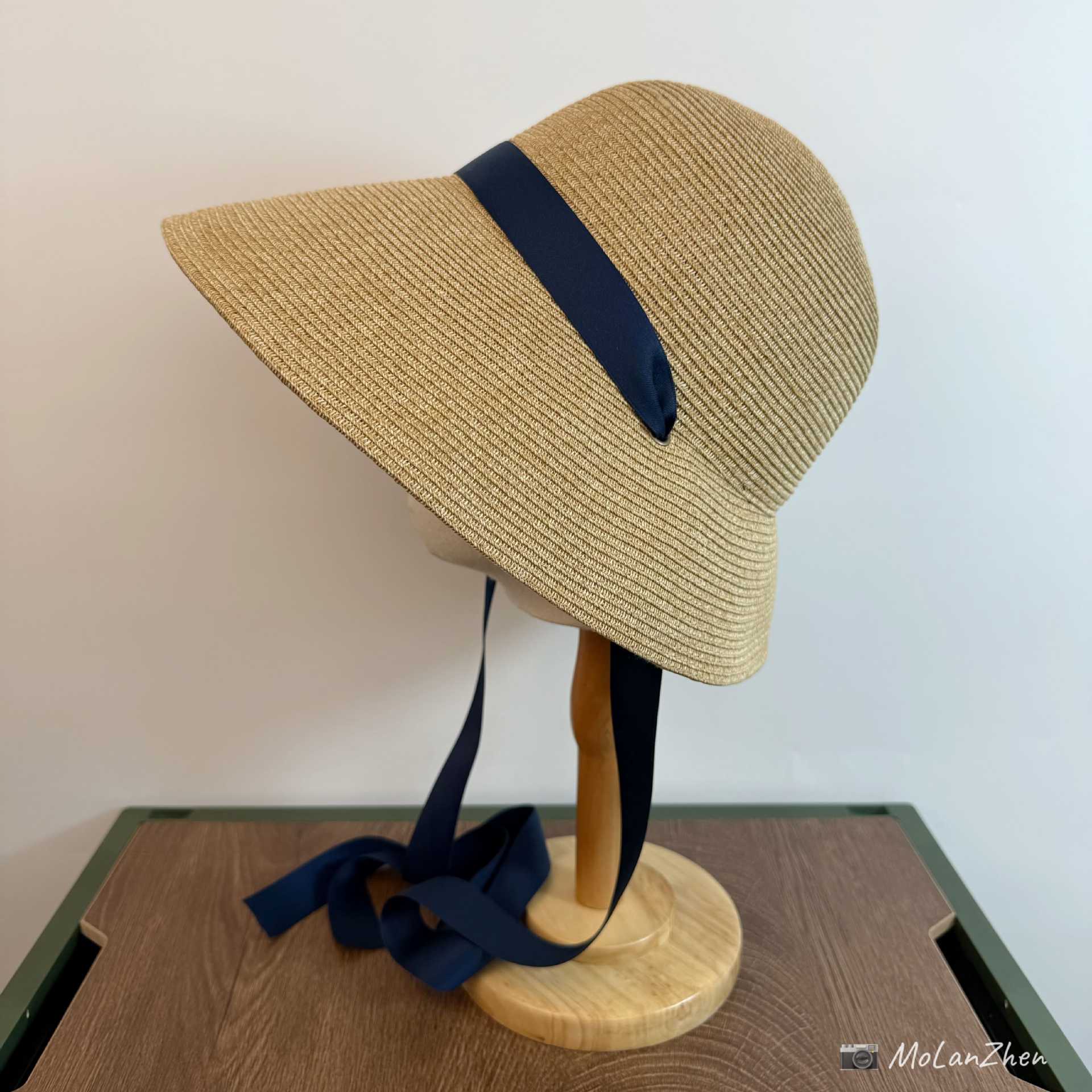 Sombrero de Paja Francesa Estilo Hepburn Primavera y Verano Protección Solar Delantero Largo Trasero Corto Sombrero para el Sol Plegable Vacaciones en la Playa Correa Sombrero para el Sol
