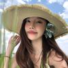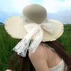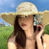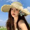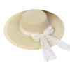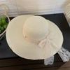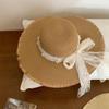 Sombrero de Paja con Lazo de Encaje para Mujer Verano Francés Ala Ancha Sombrero de Protección Solar Vacaciones en la Playa Junto al Mar Sombrero para el Sol