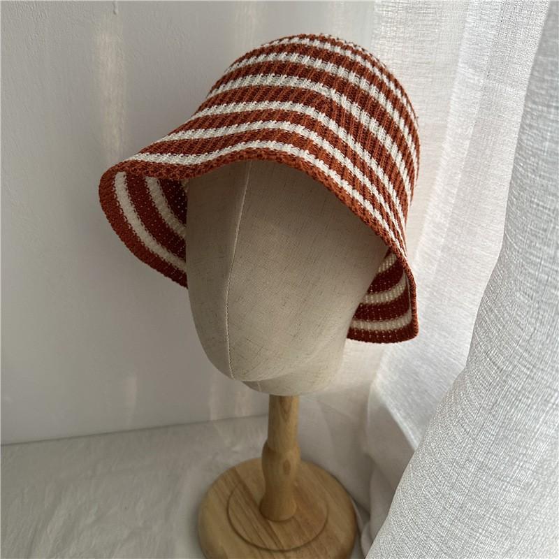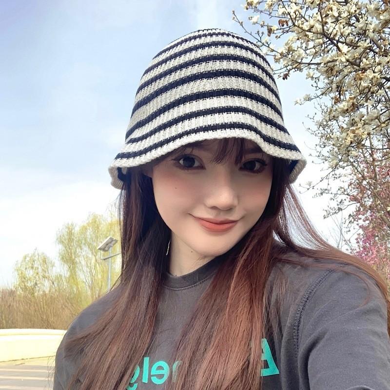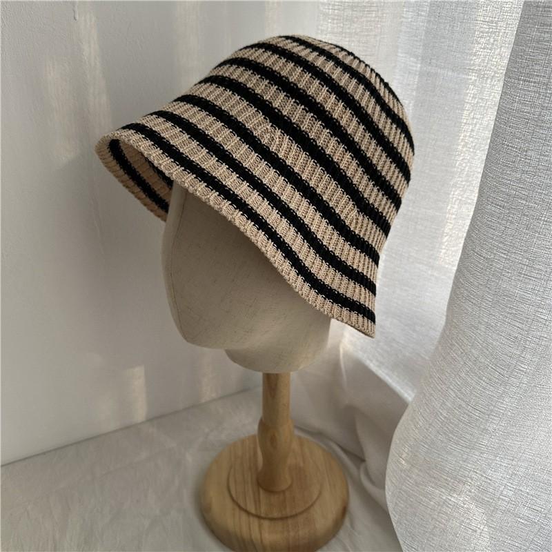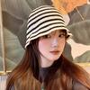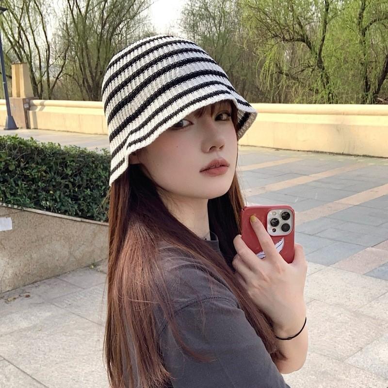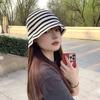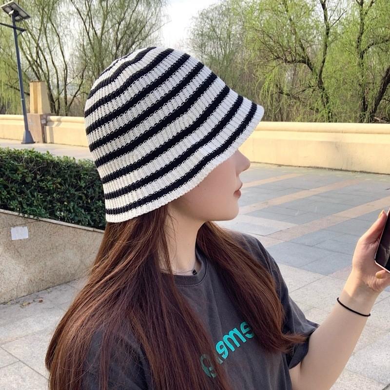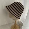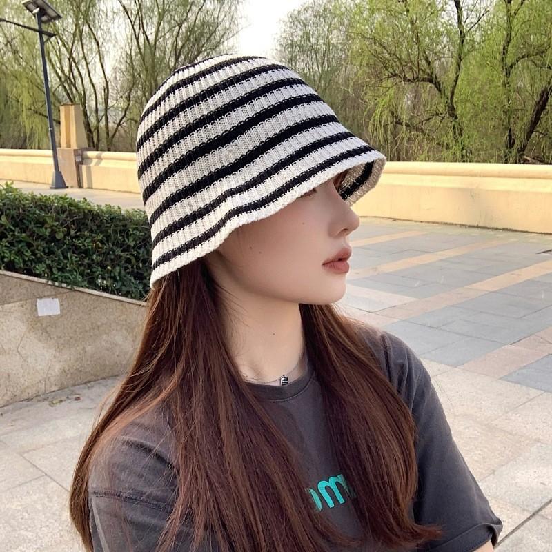 Sombrero de Pescador de Rayas Blancas y Negras de Primavera y Otoño para Mujer, Transpirable, Sombrero de Cubo Parasol, Sombrero de Cuenca de Punto a la Moda, Sombrero Artístico Combinable para el Sol