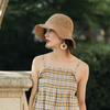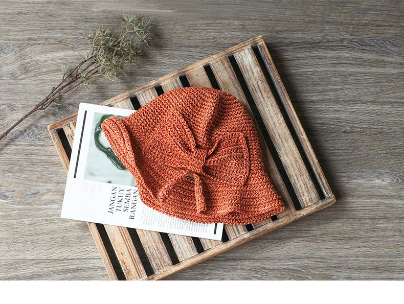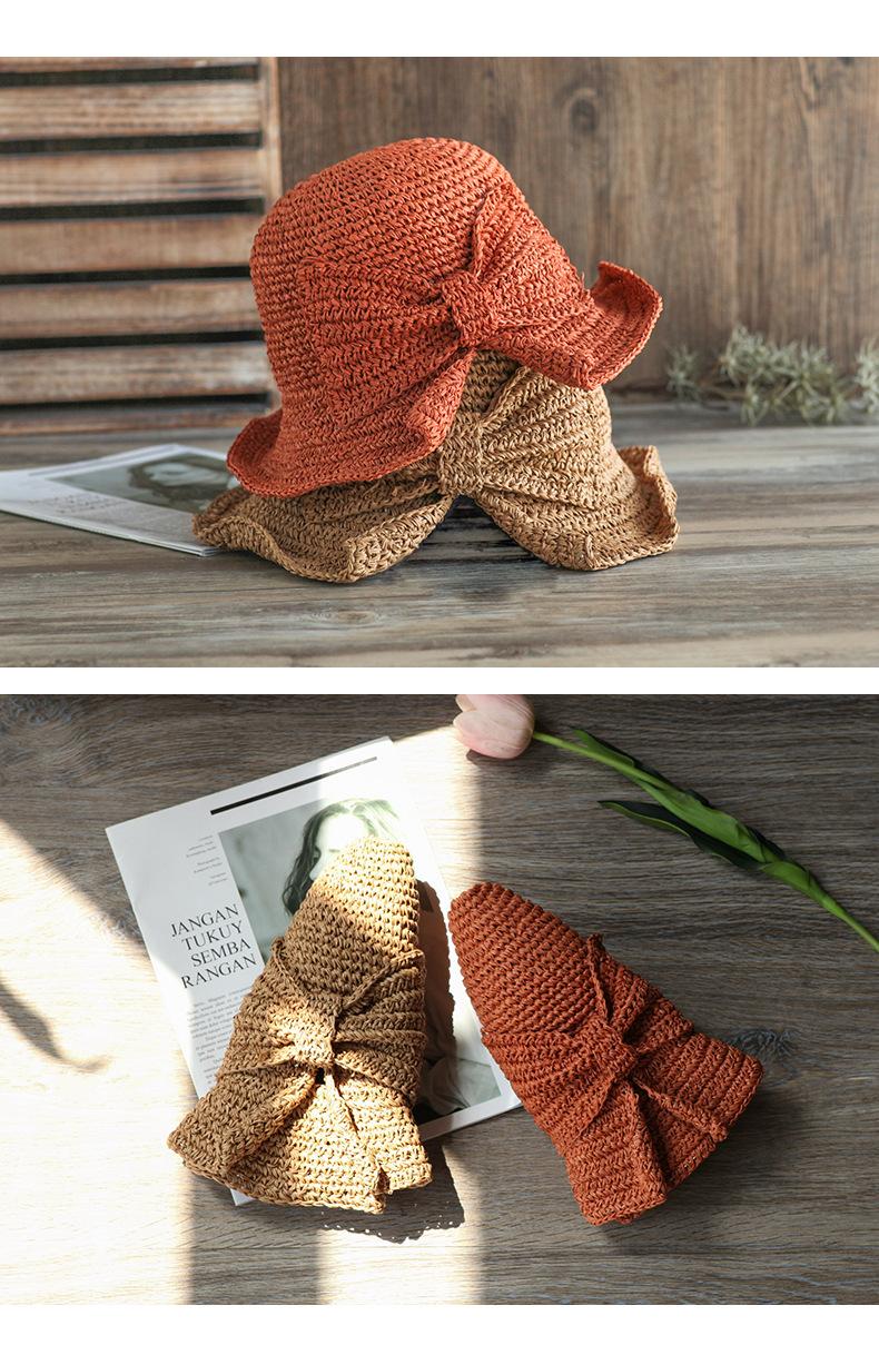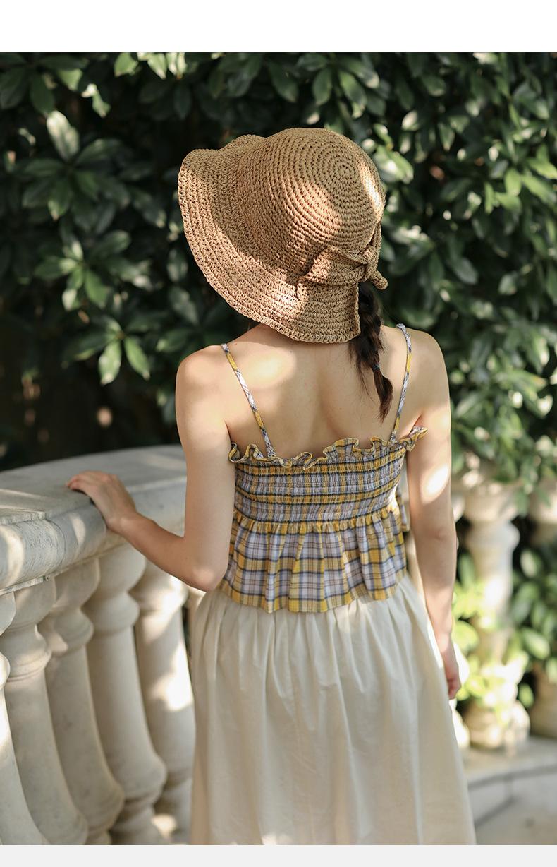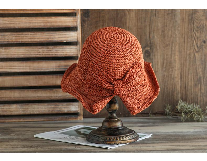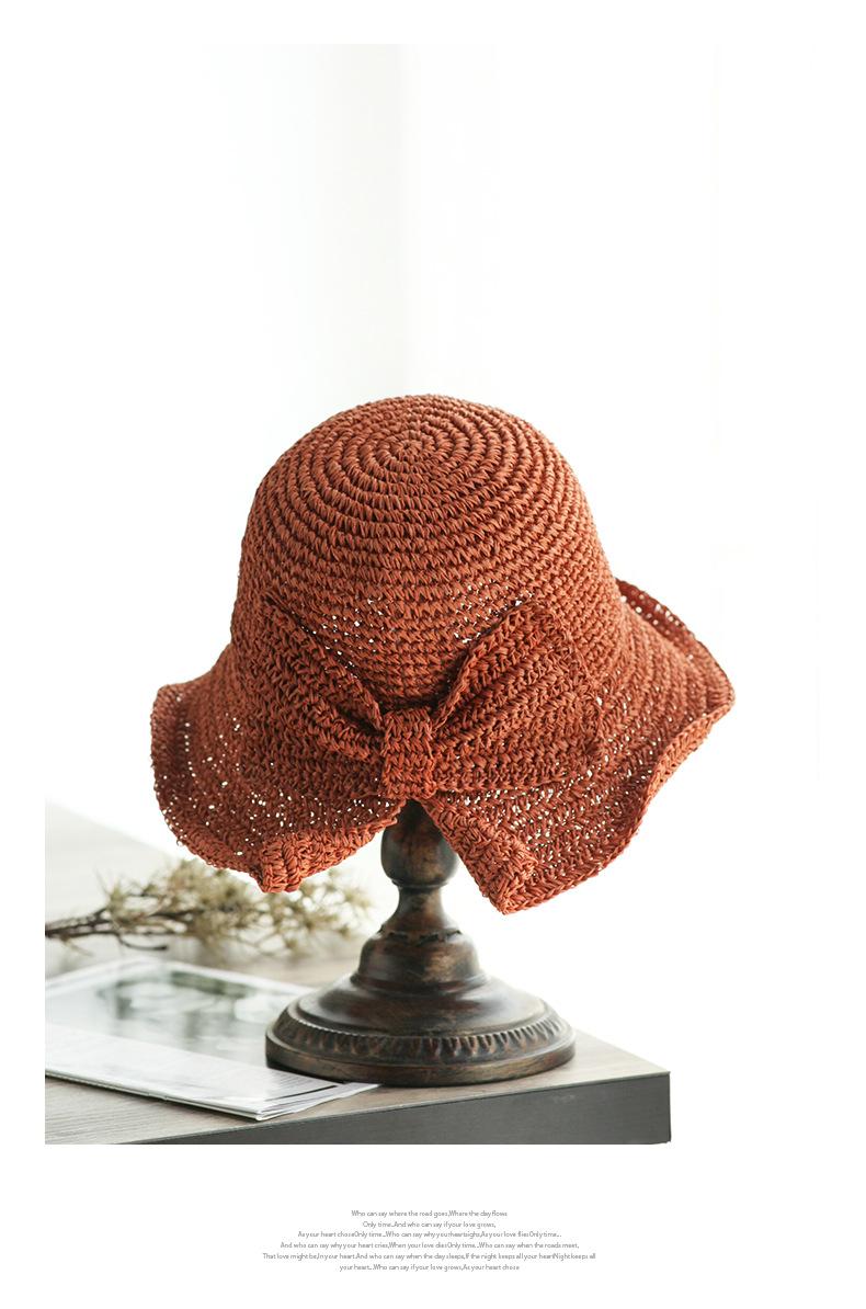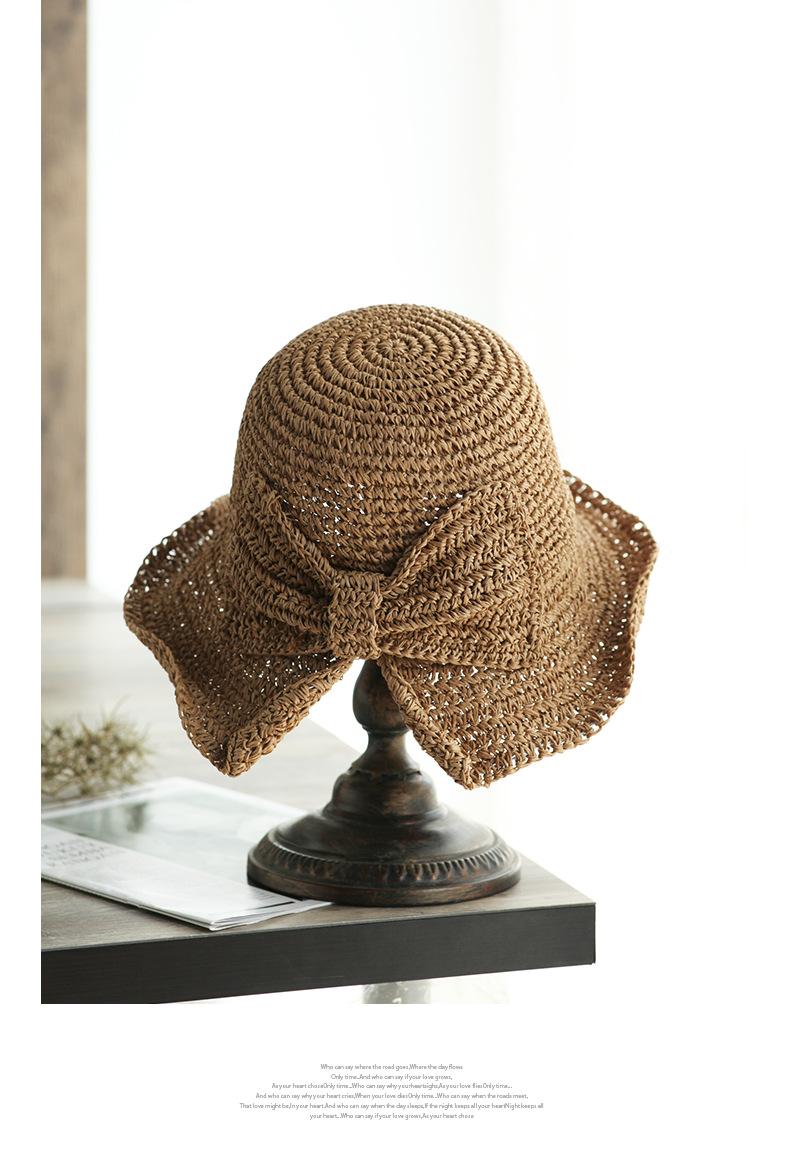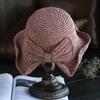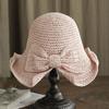 Sombrero de paja pequeño para mujer, de verano, sencillo, con lazo, informal, para lavabo, para ir de compras, viajar, de ganchillo, para el sol.
