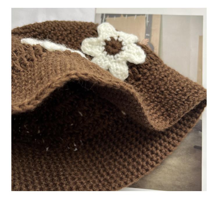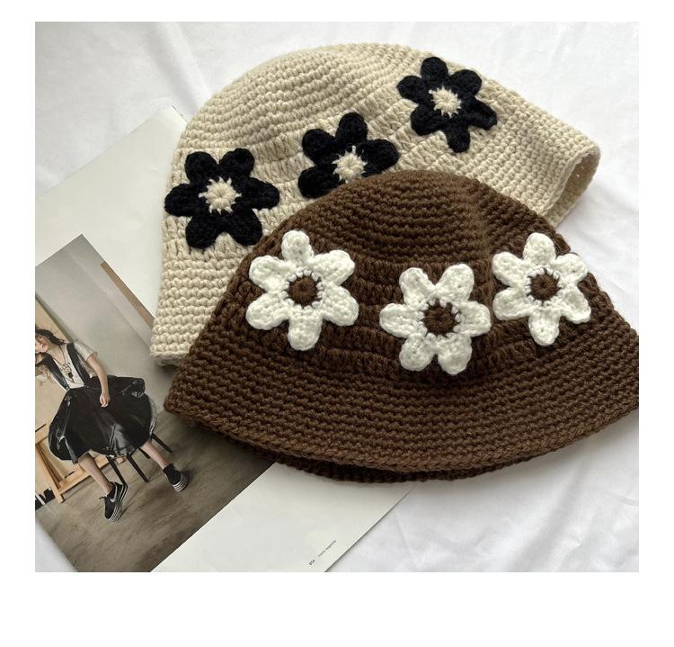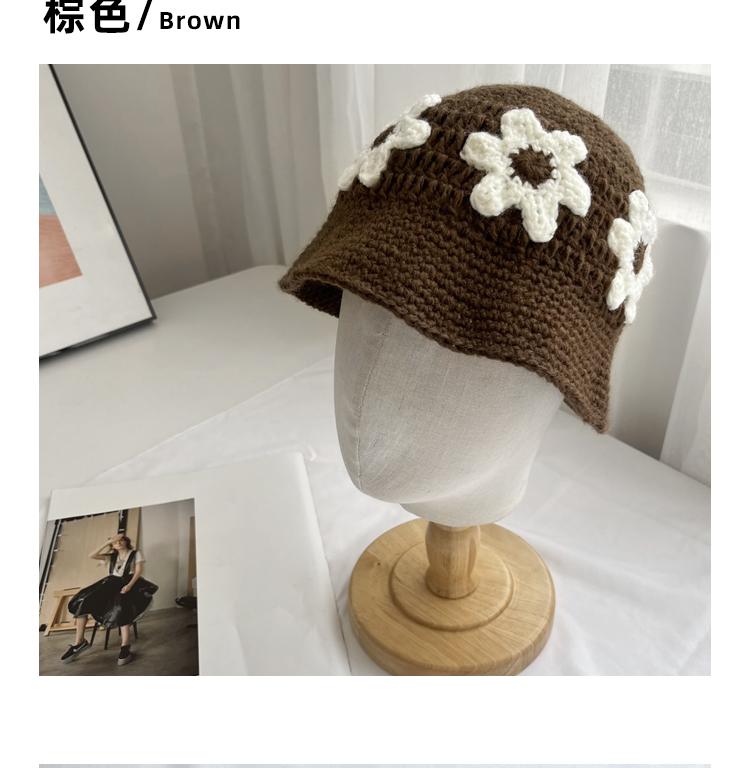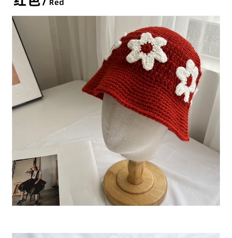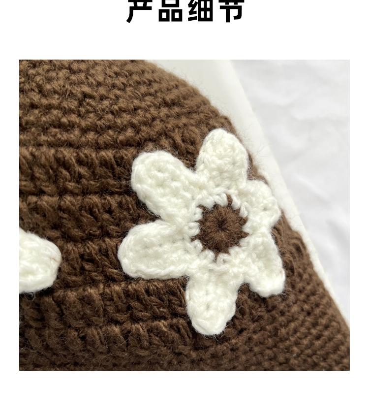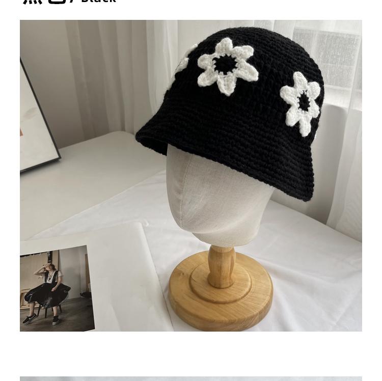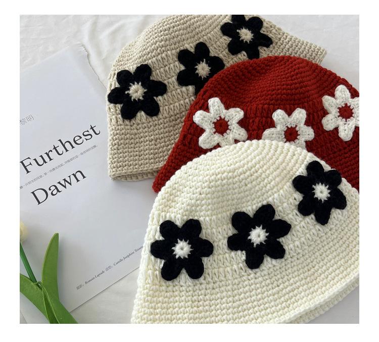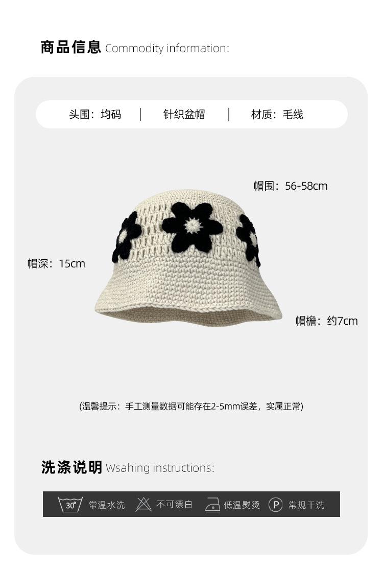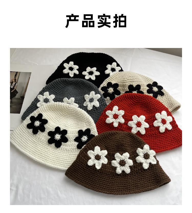 Sombrero Cubo de Flores Tejido a Mano Dulce y Lindo Estilo Japonés Diseño Nicho Femenino Combinable Muestra la Cara Pequeño Sombrero de Pescador para Primavera y Verano
