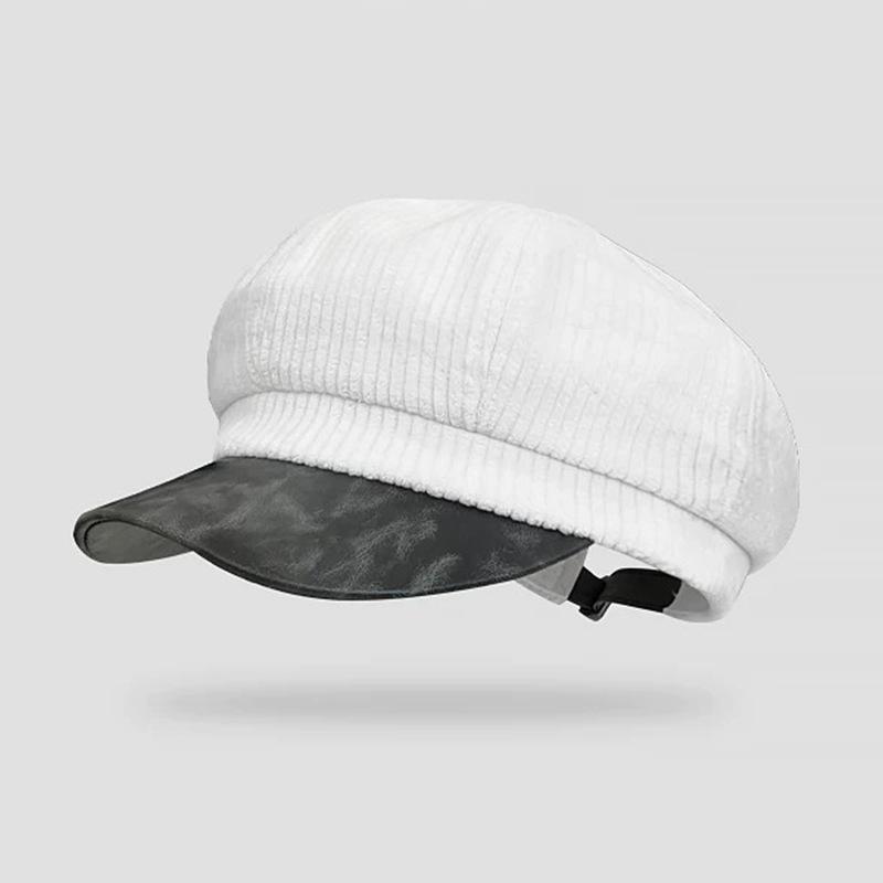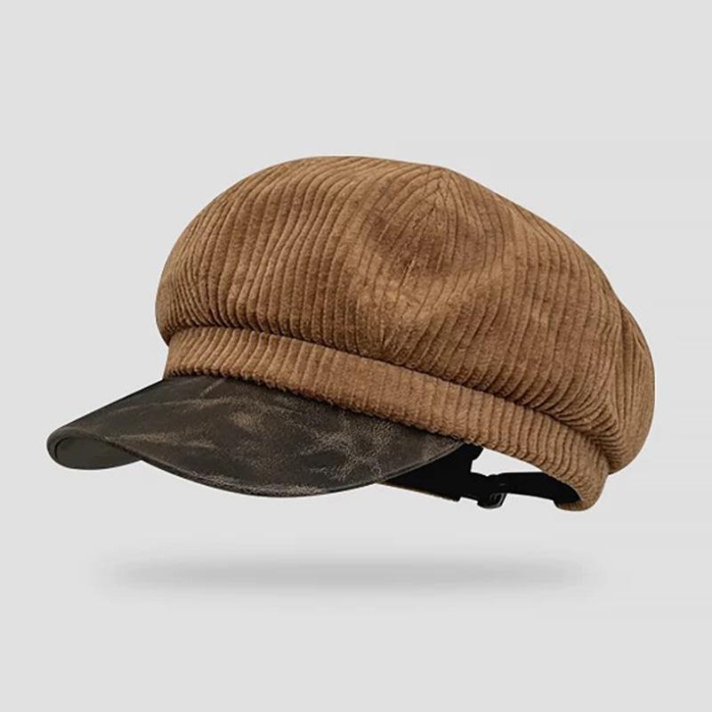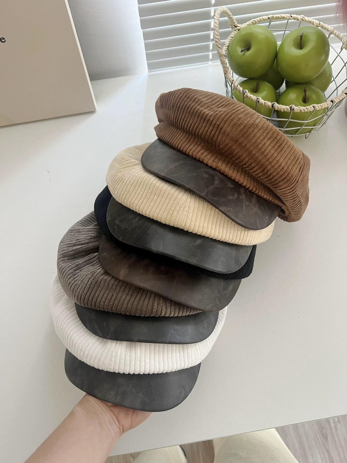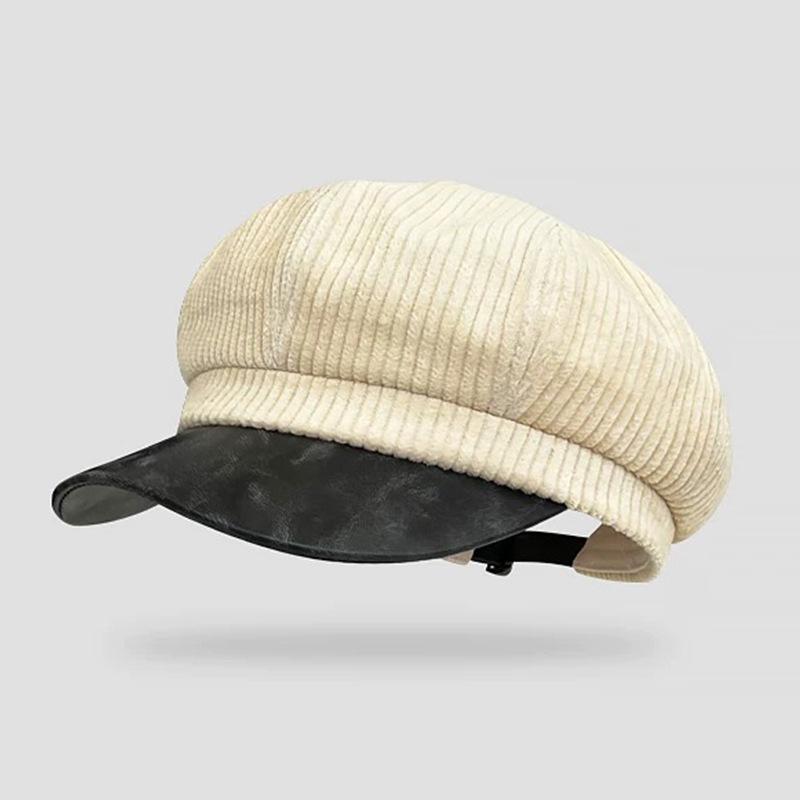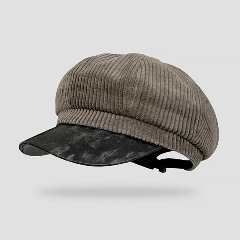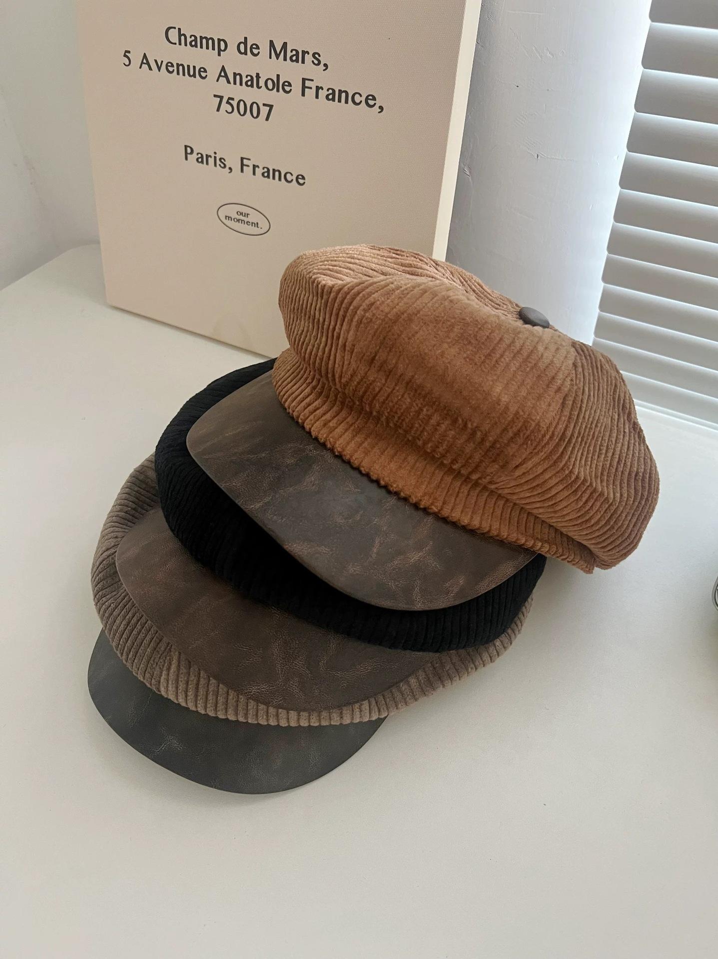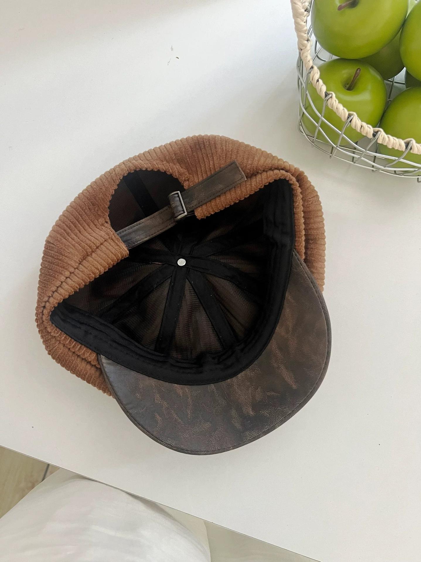 M (56-58cm)-patterned leather stitched corduroy octagonal hat