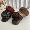 Sombrero octogonal retro artístico para niños, boina de pana de cuero sintético para otoño e invierno, sombrero pequeño de vendedor de periódicos, sombrero de pintor británico