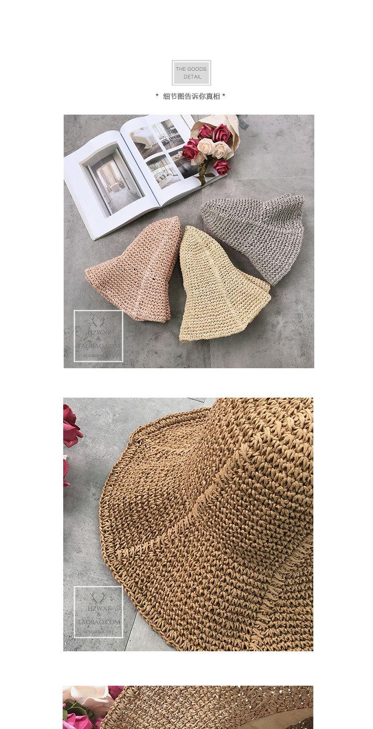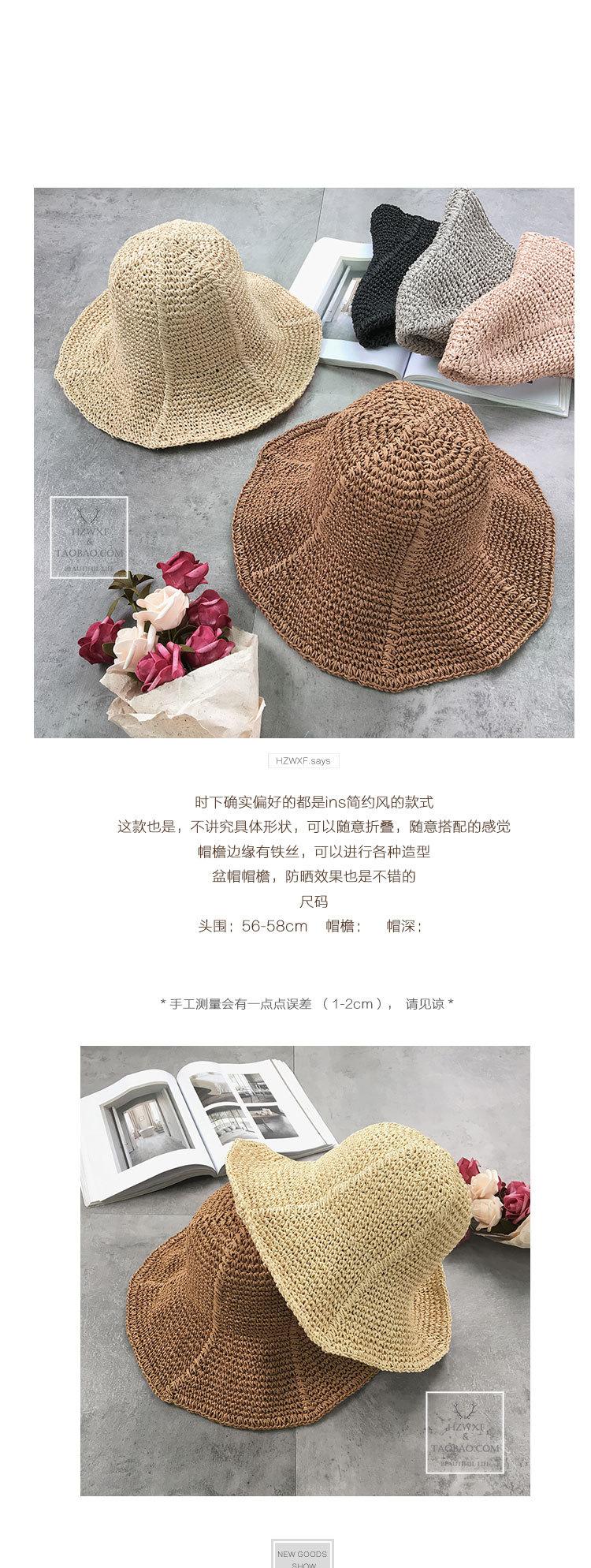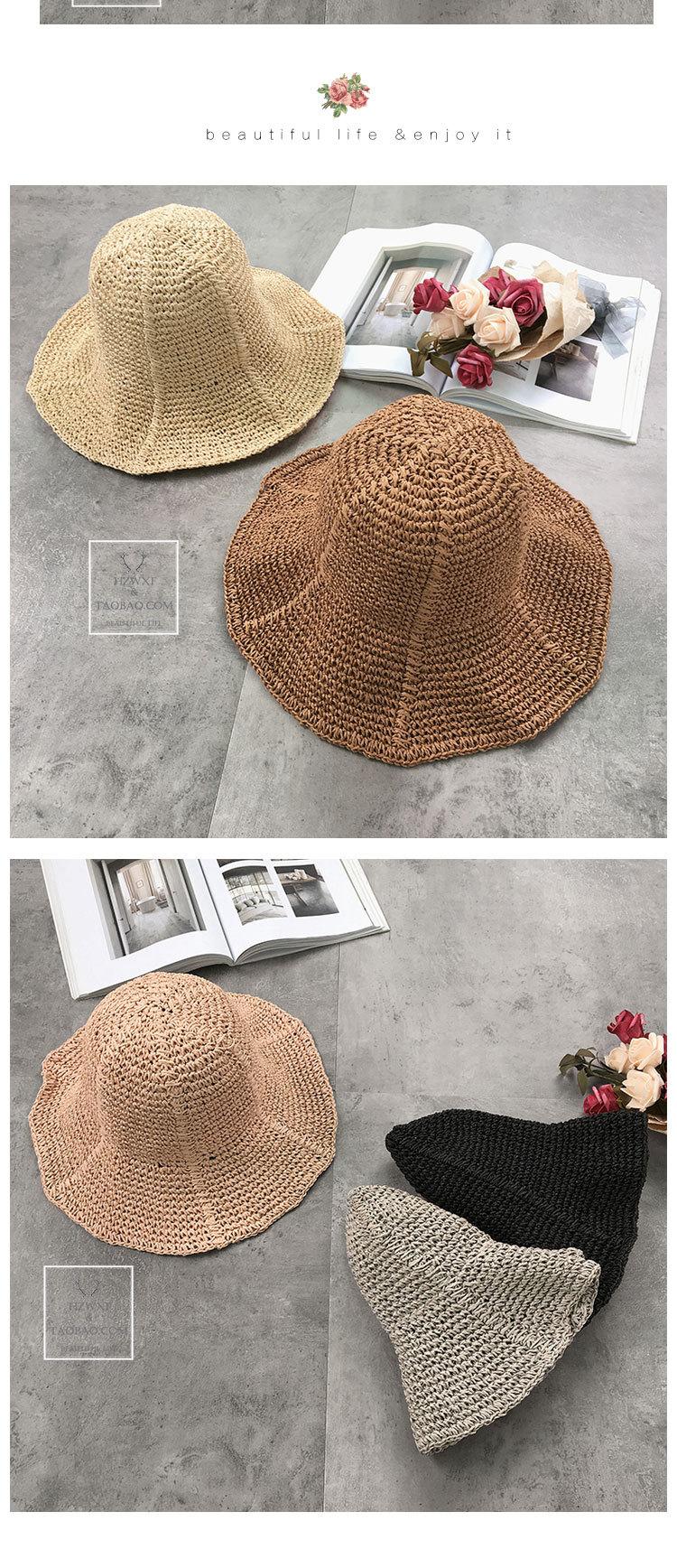 Sombrero de paja de ala ancha para protección solar de viaje de verano, sombrero para el sol estilo coreano, sombrero de playa, sombrero de cuenca, sombrero de pescador femenino, plegable, combina con todo