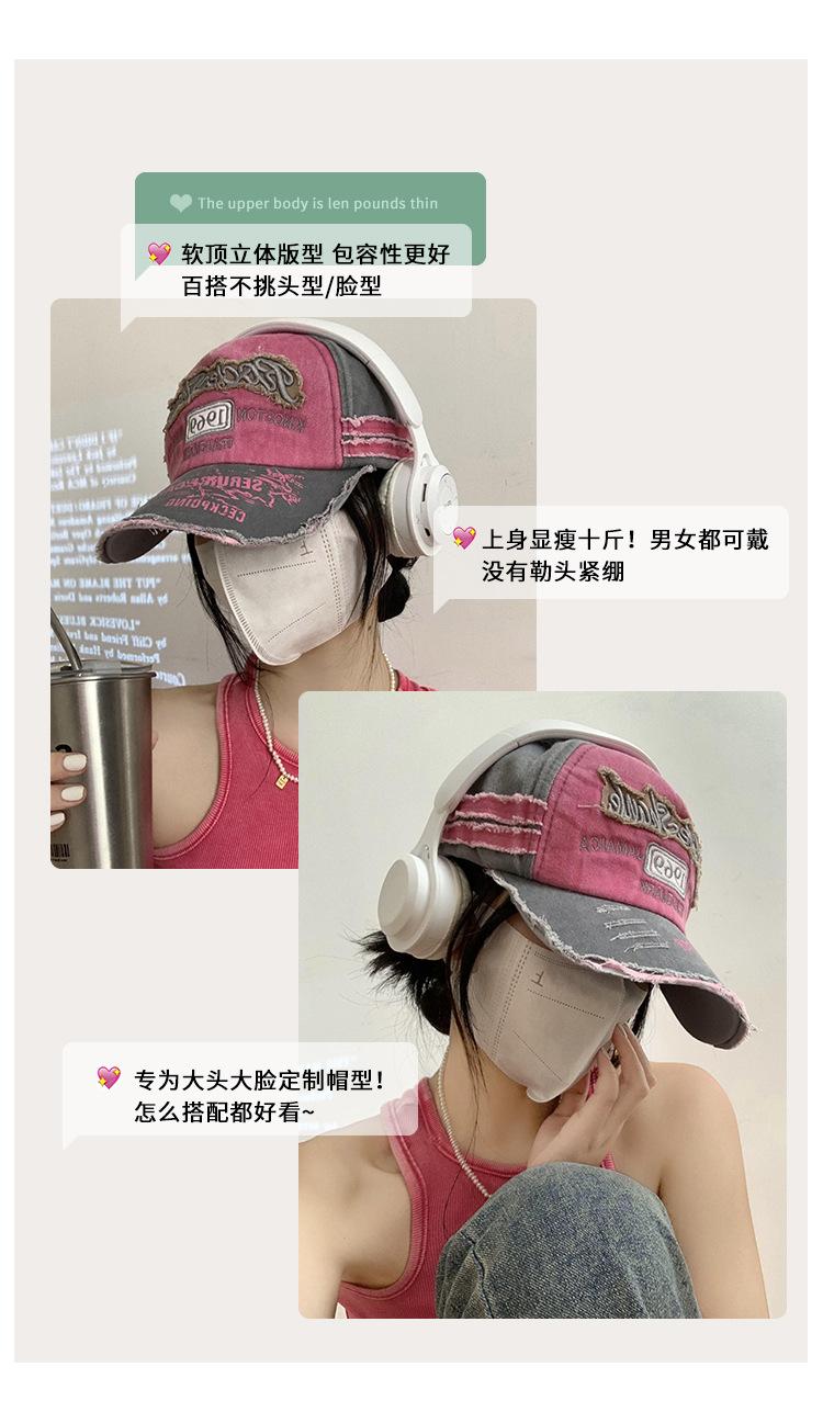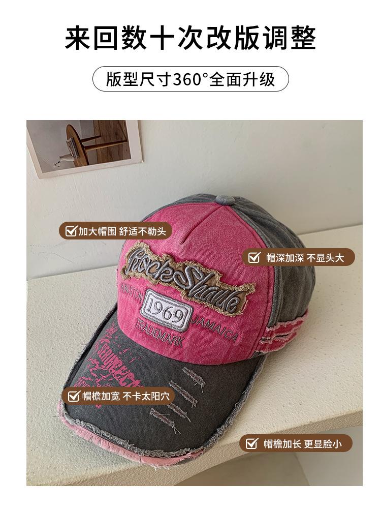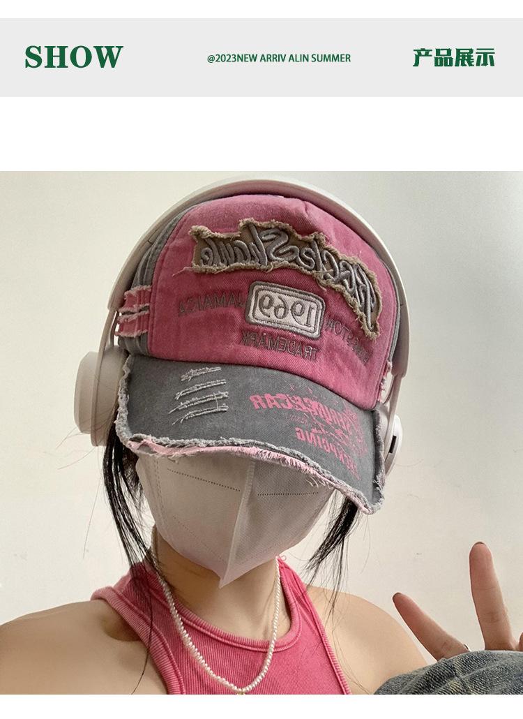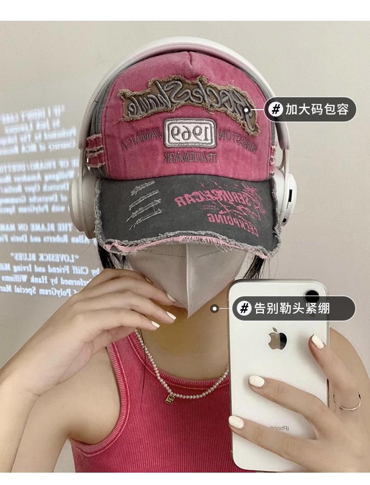 Gorra de béisbol retro estilo americano para mujer con borde deshilachado que hace que la cara se vea pequeña, gorra con visera, estilo coreano de copa profunda, sombrero de ala ancha para circunferencia de cabeza grande