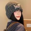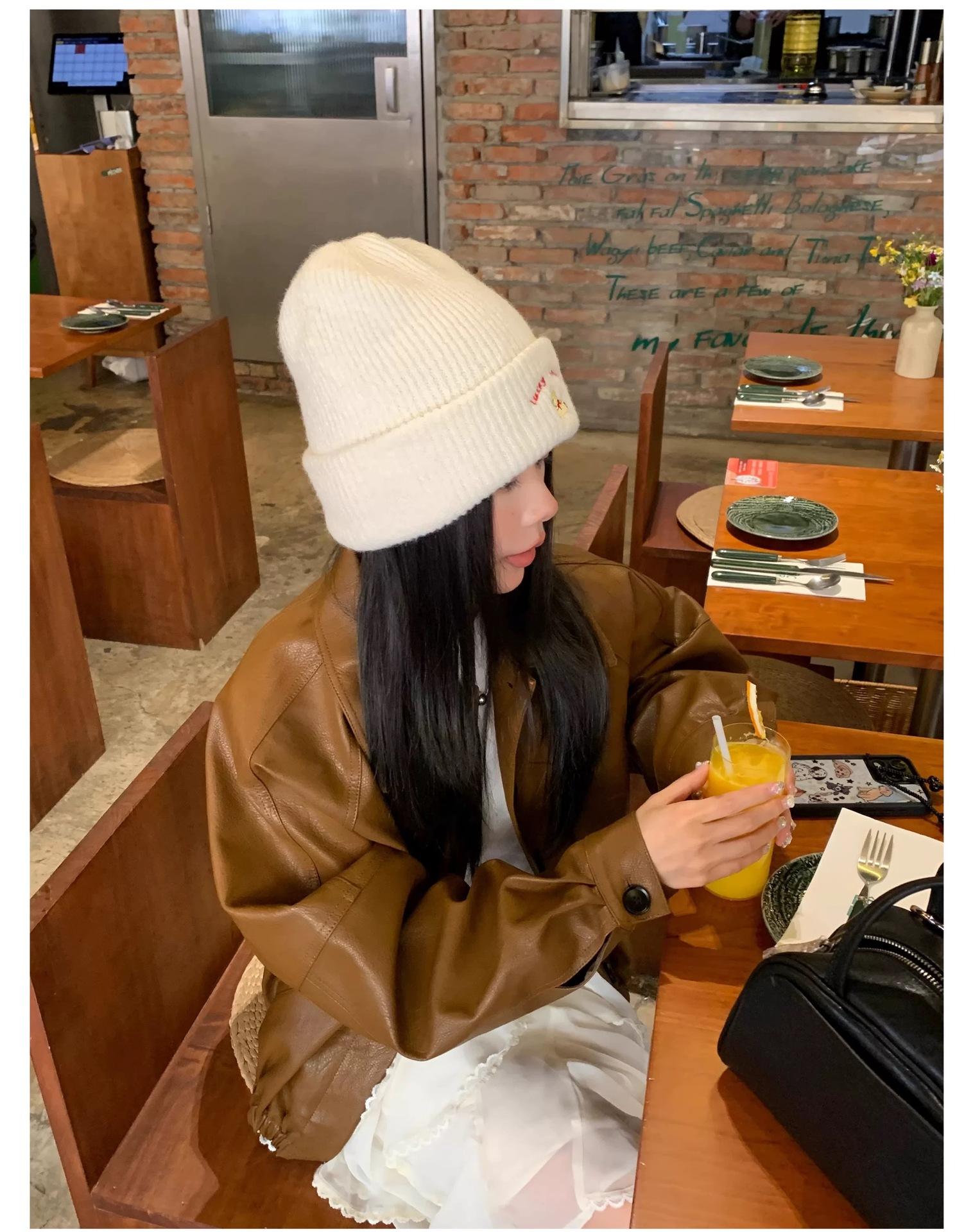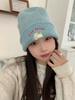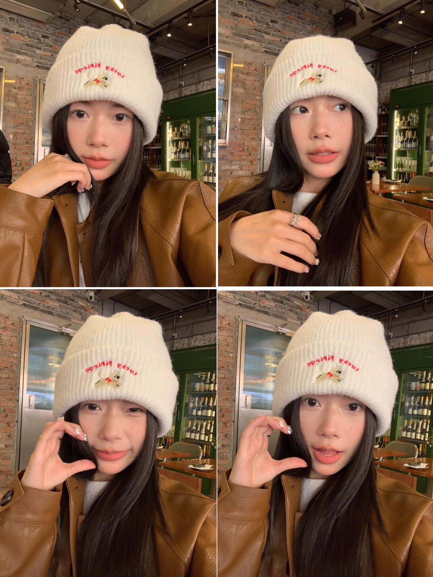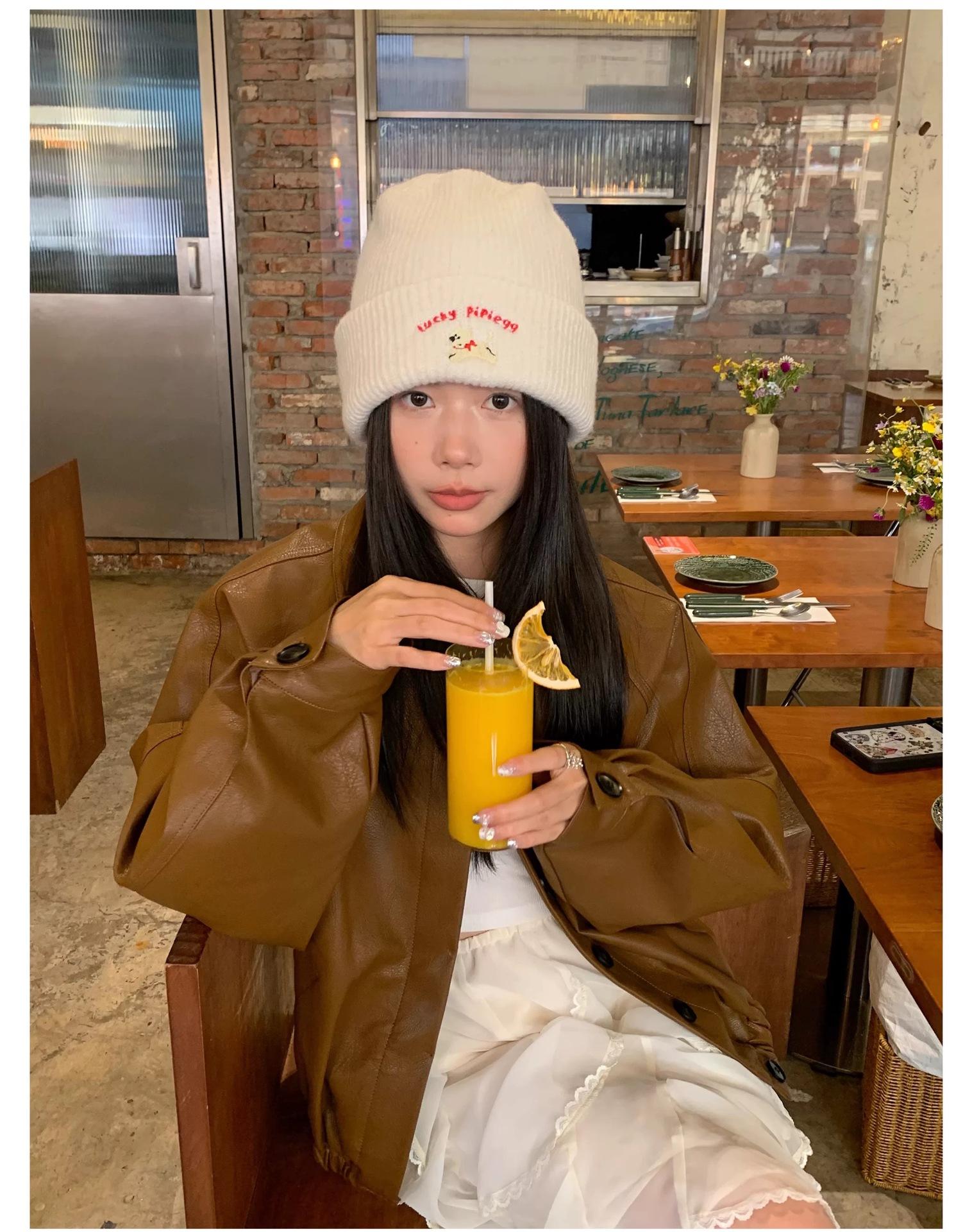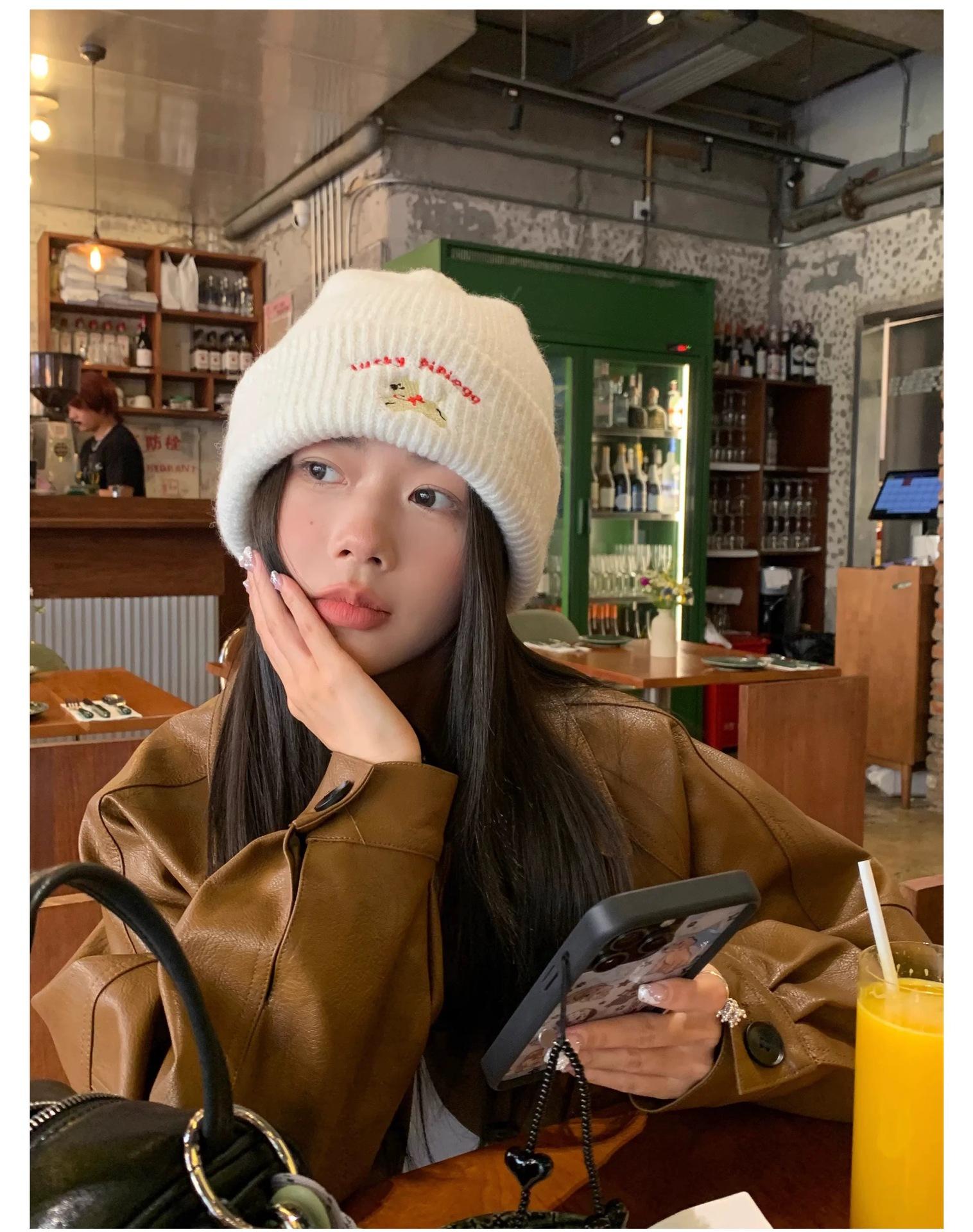 Lindo gorro de lana de punto bordado con cachorro para mujer, nuevo gorro de otoño e invierno 2024, pequeño gorro de cabeza grande que combina con todo.