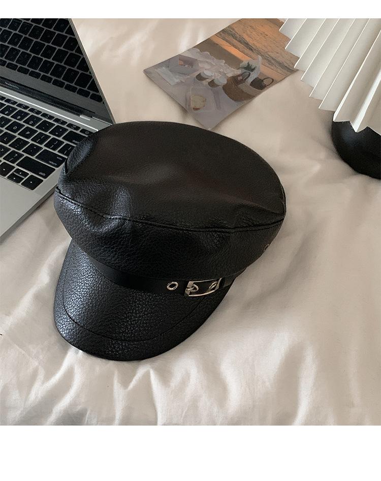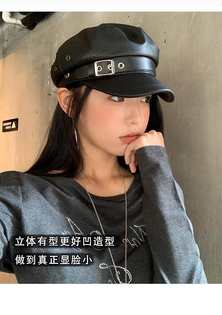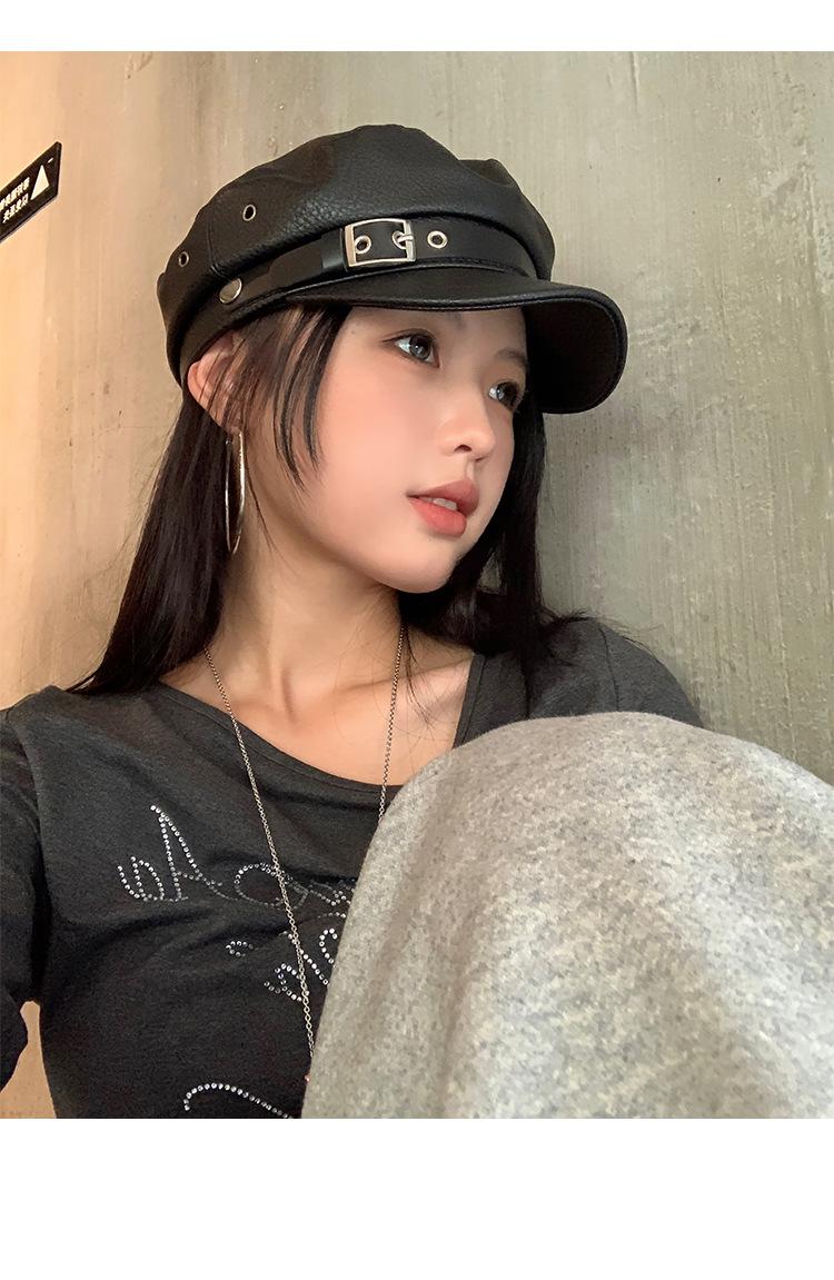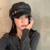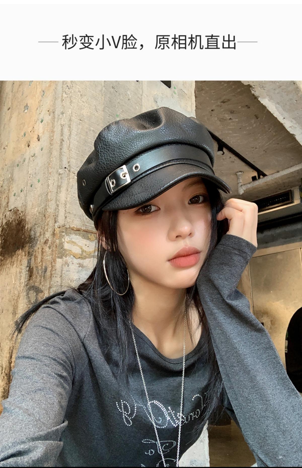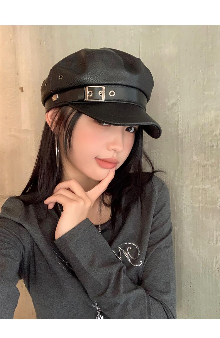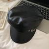 Boina de cuero sintético estilo coreano retro para mujer, elegante, artística, combinable, con cara británica, pequeña, para la calle, de verano