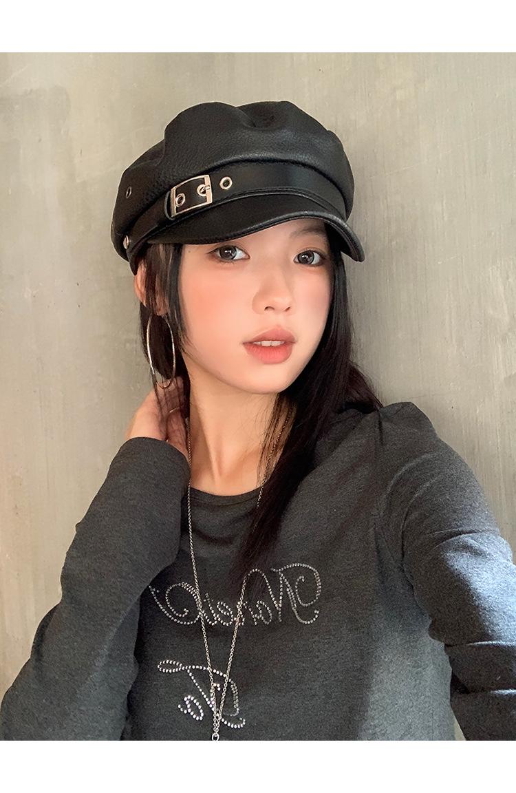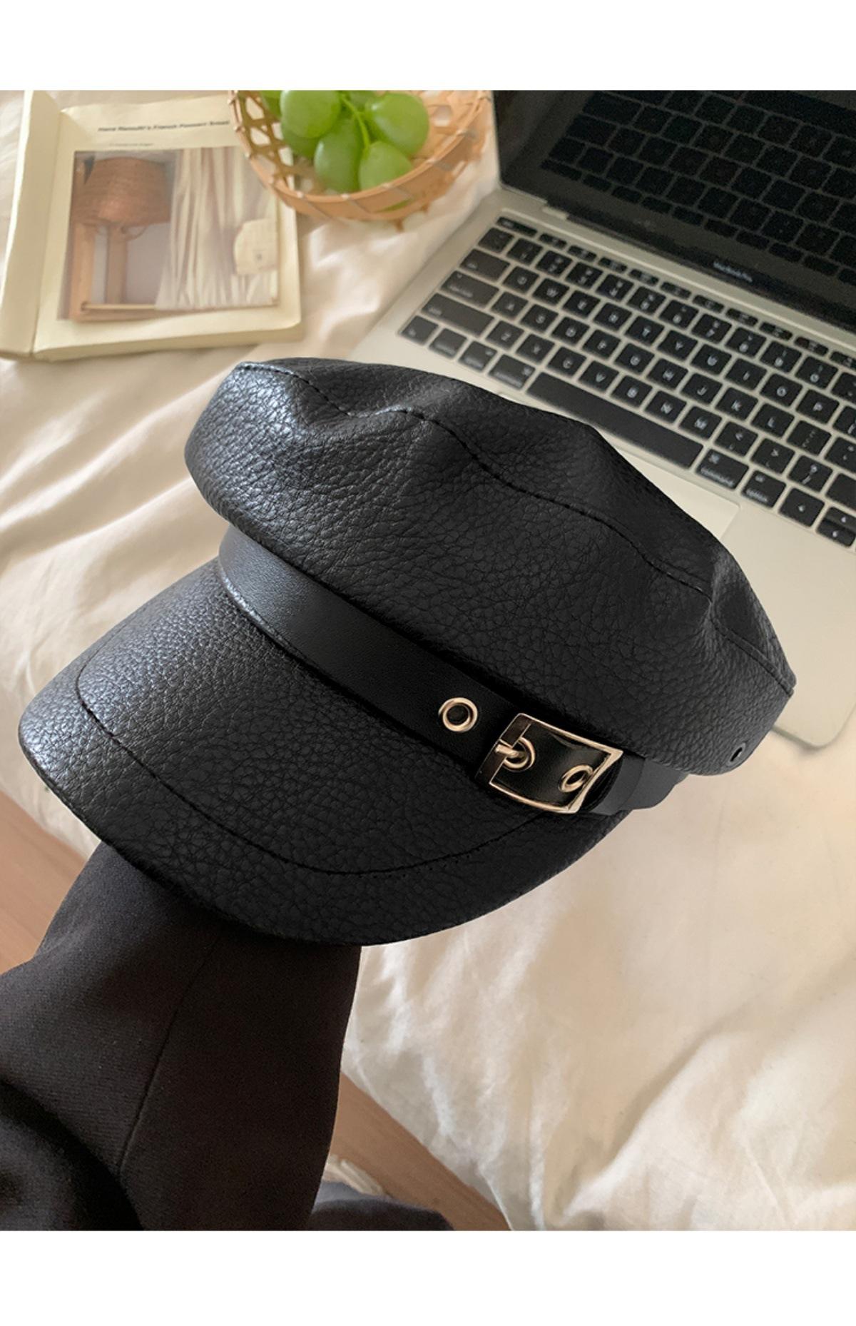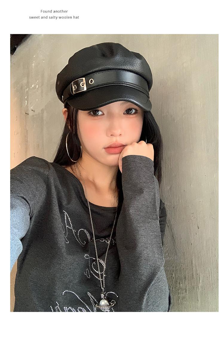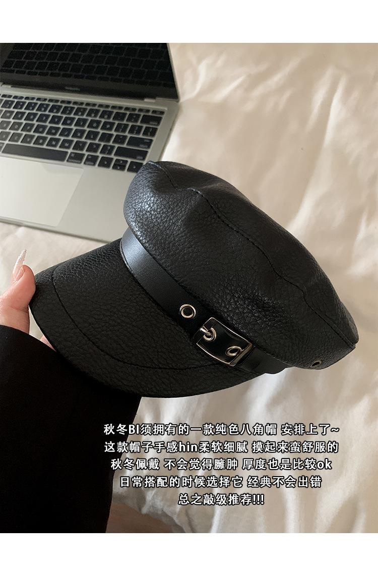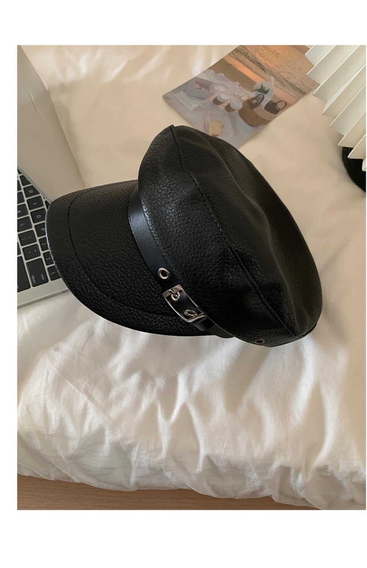 Boina de cuero sintético estilo coreano retro para mujer, elegante, artística, combinable, con cara británica, pequeña, para la calle, de verano