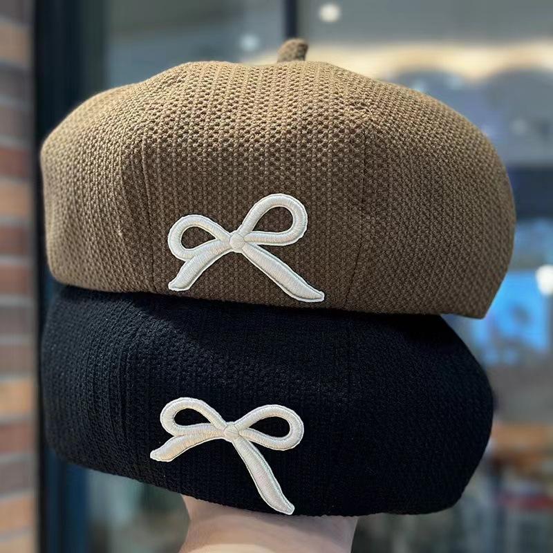 Boina elegante de pintor para mujer, estilo vintage, informal, con lazo bordado y combinable, para primavera y otoño.