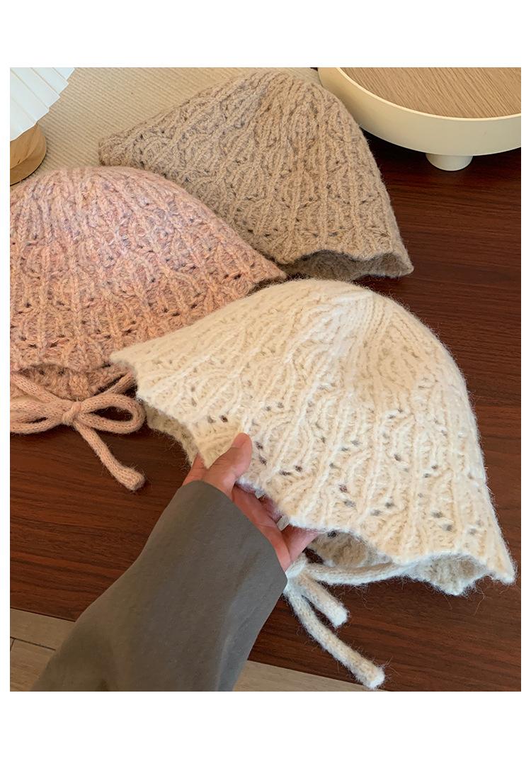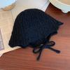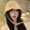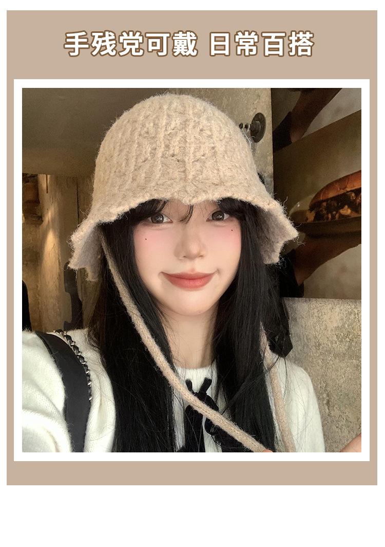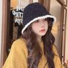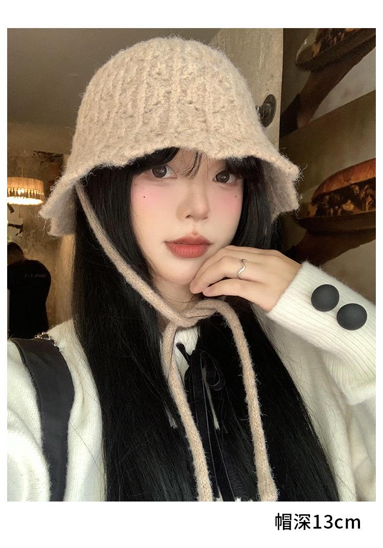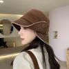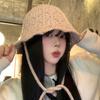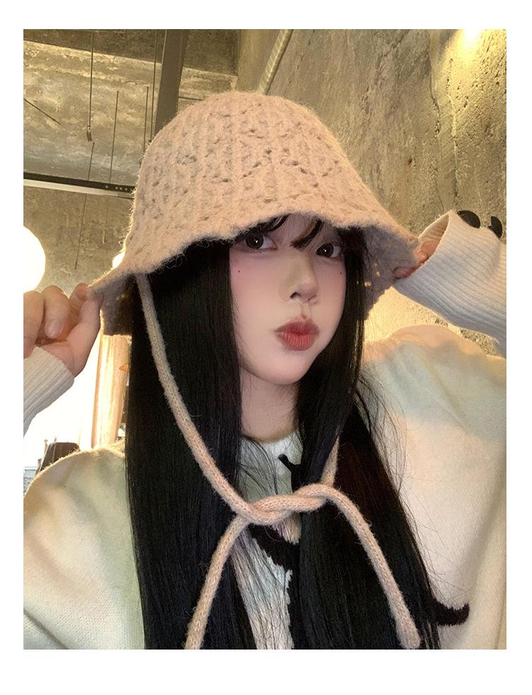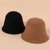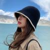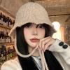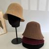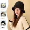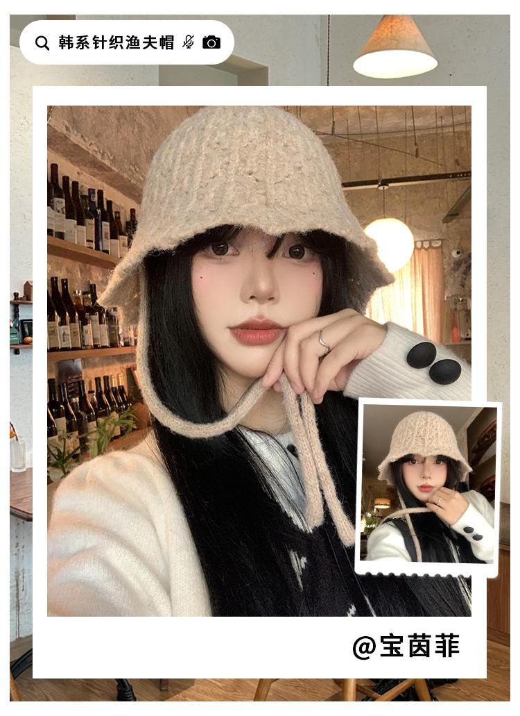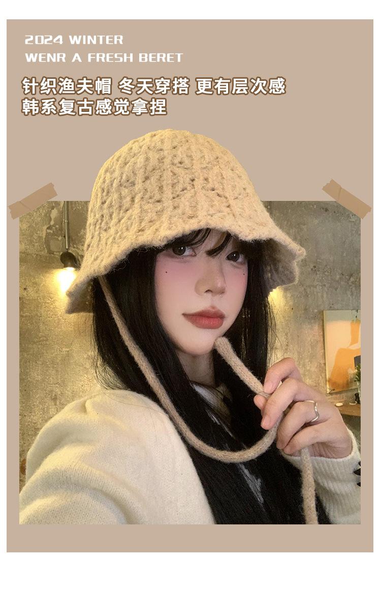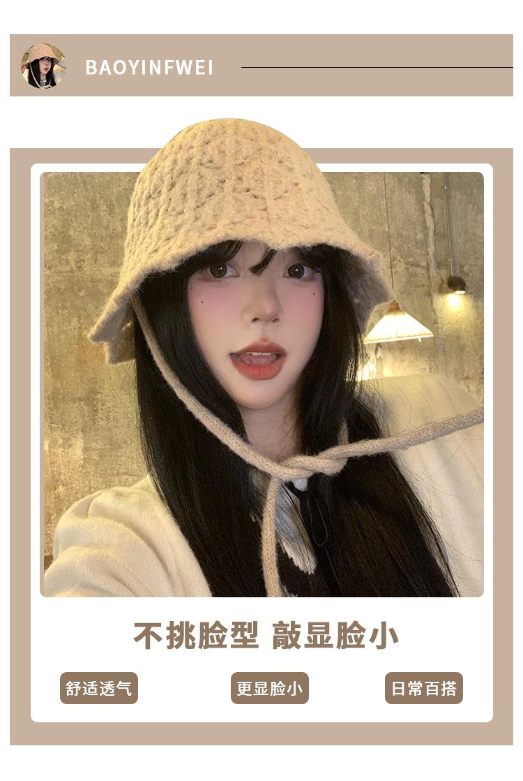Sombrero de Pescador con Correa Estilo Coreano para Mujer Otoño e Invierno Combinable Muestra el Rostro Sombrero de Cubo Pequeño Retro para Cabeza Grande Sombrero de Lana Tejido