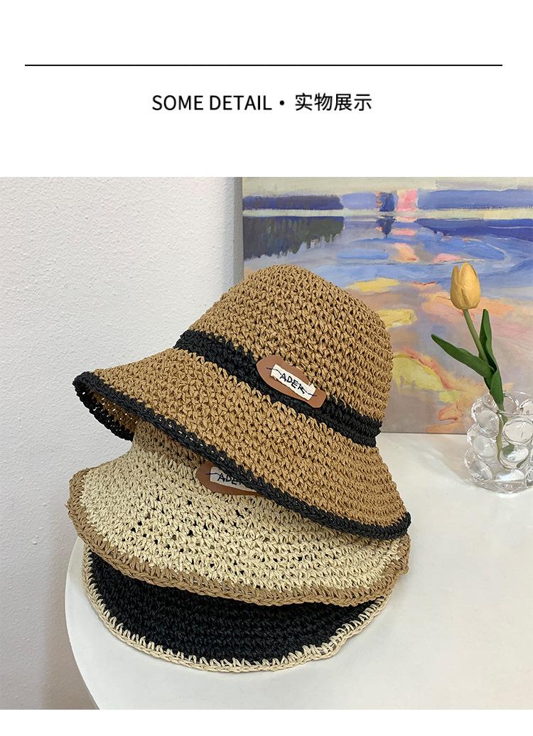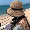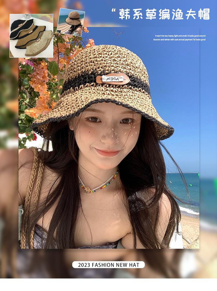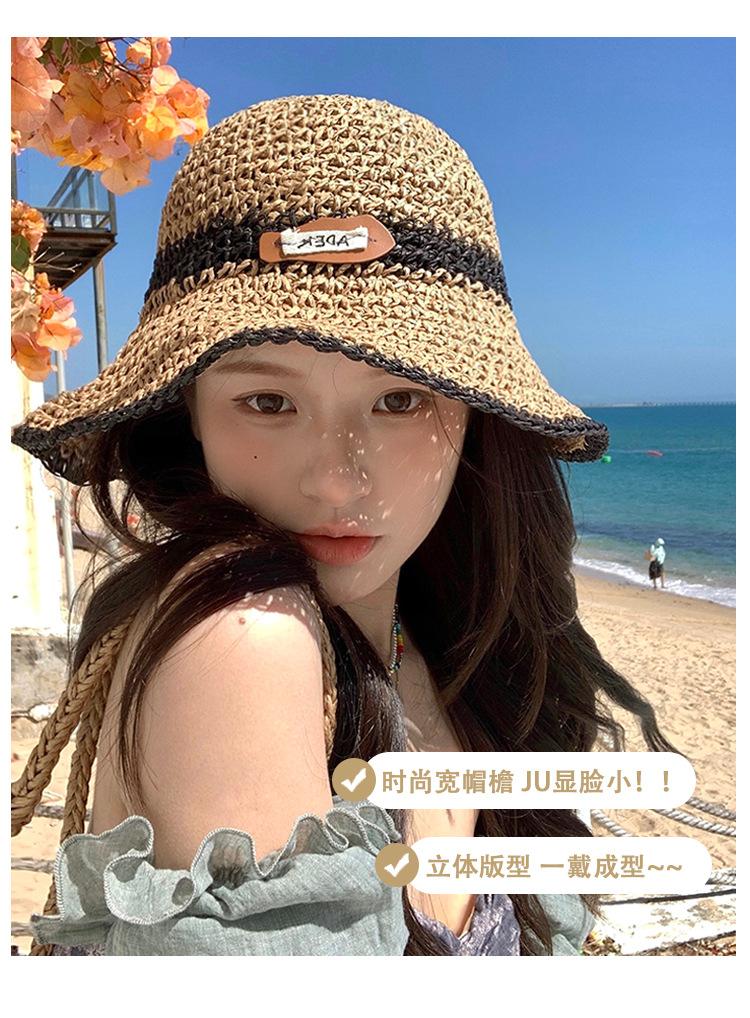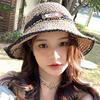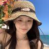 Sombrero de verano para mujer, estilo coreano, hueco, para vacaciones en la playa, de paja tejida a mano, de ala grande