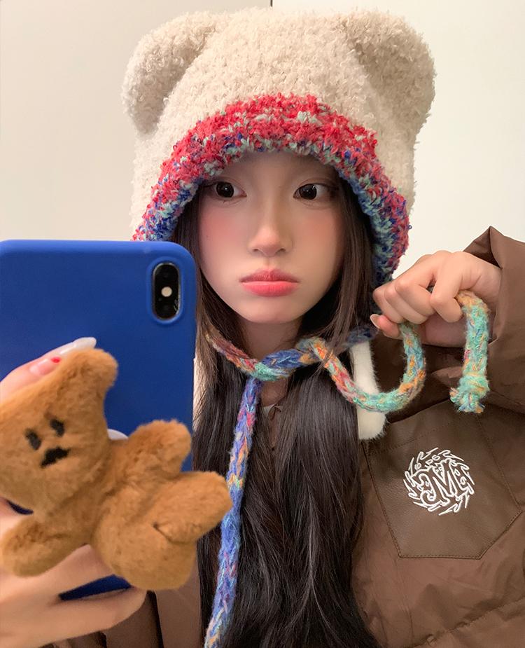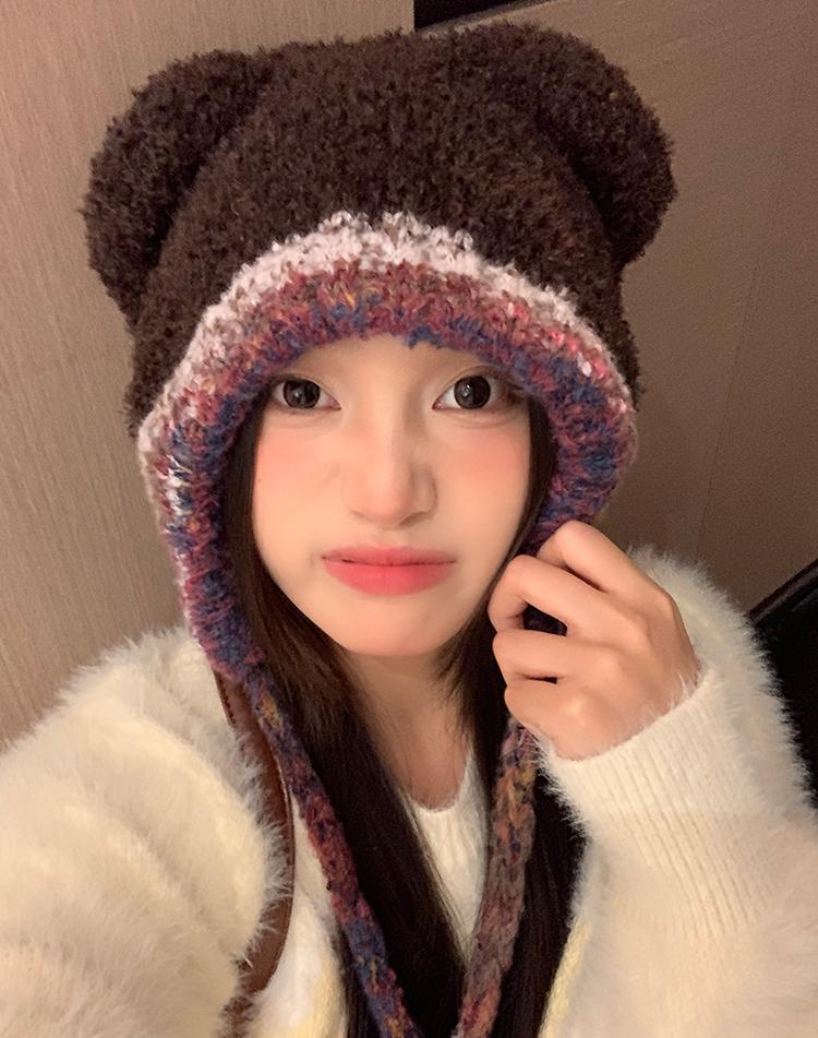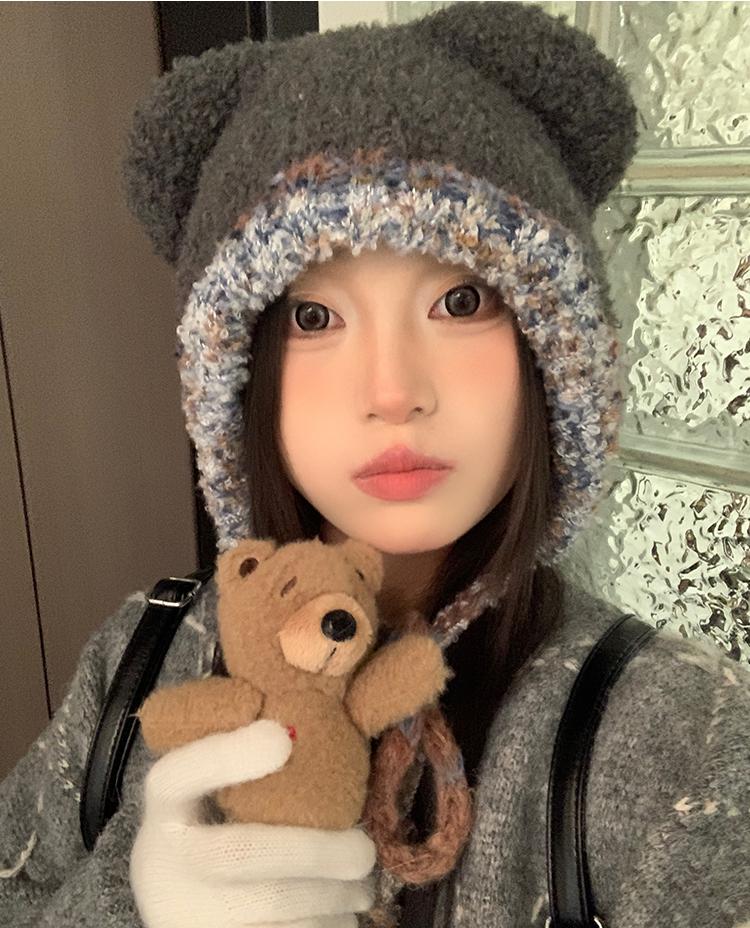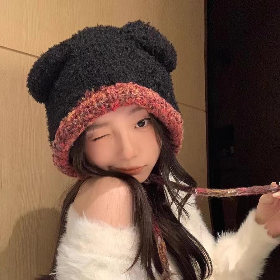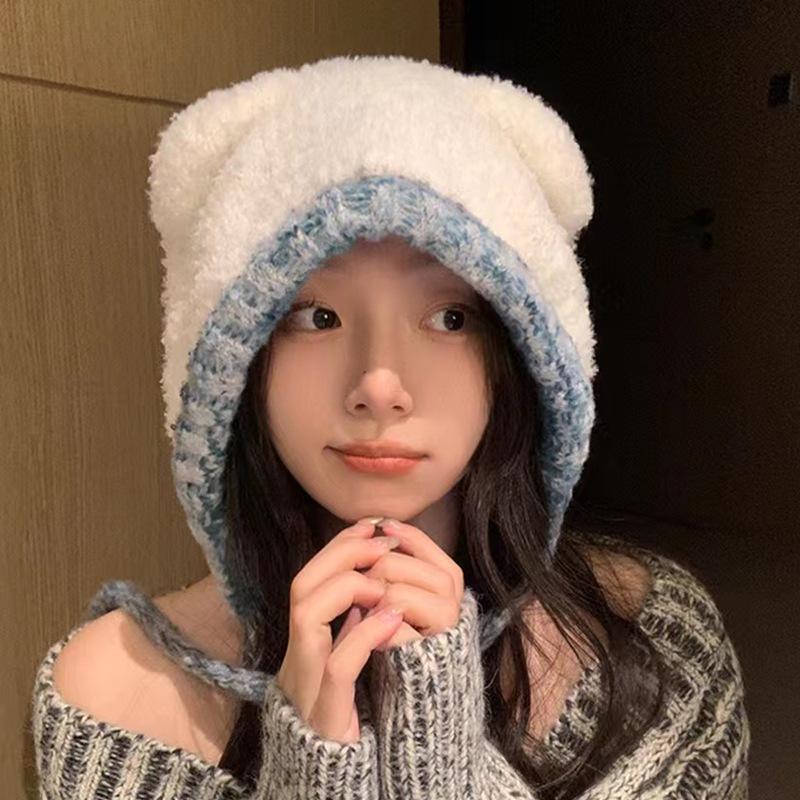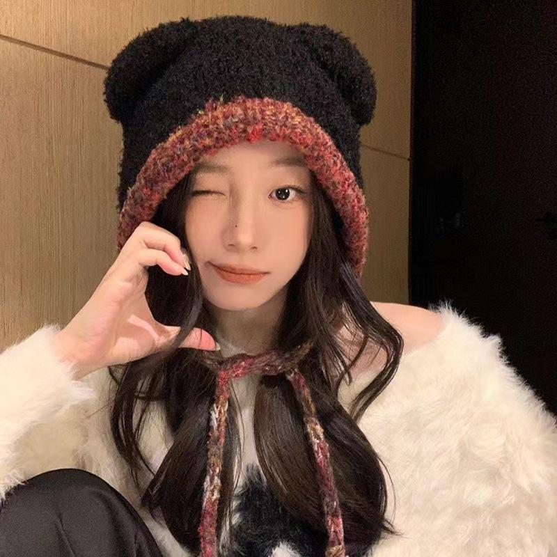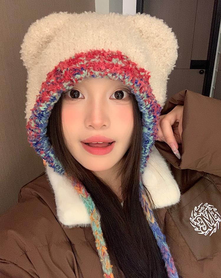 Compra Sombrero Lei Feng de Protección para Orejas de Oso Dulce para Mujer Otoño e Invierno Viaje a Prueba de Frío Atado Sombrero de Felpa Cabeza Grande Lindo Sombrero de Lana al por mayor en Joom.pro