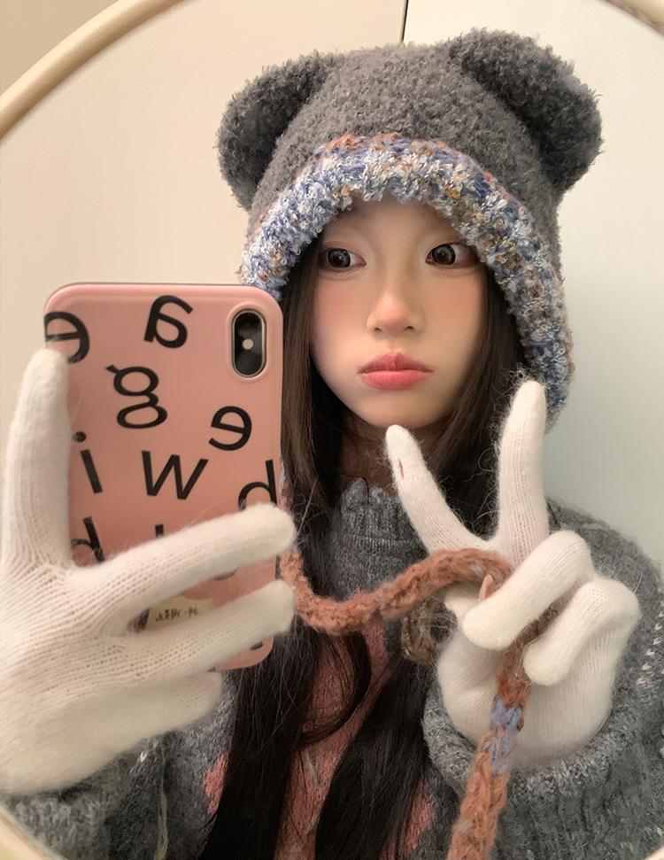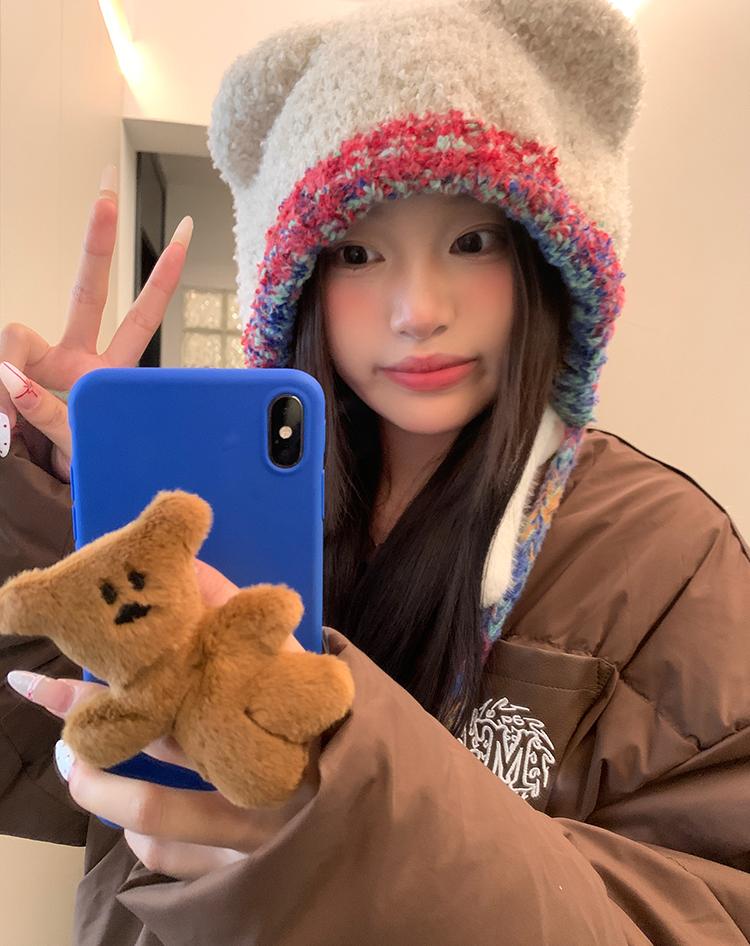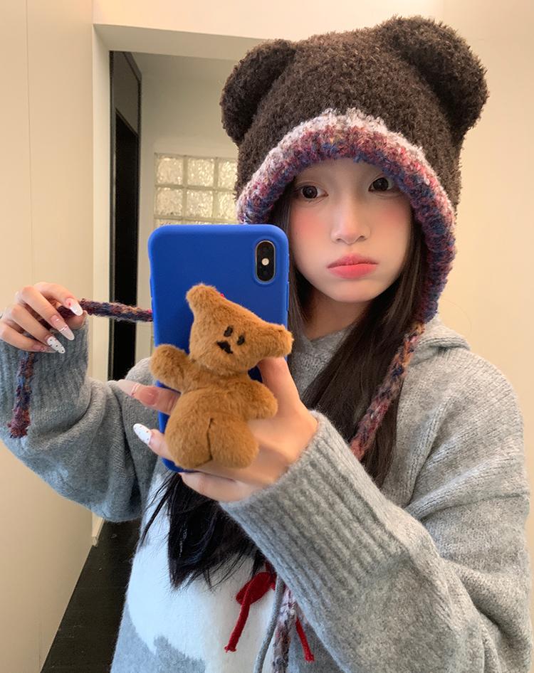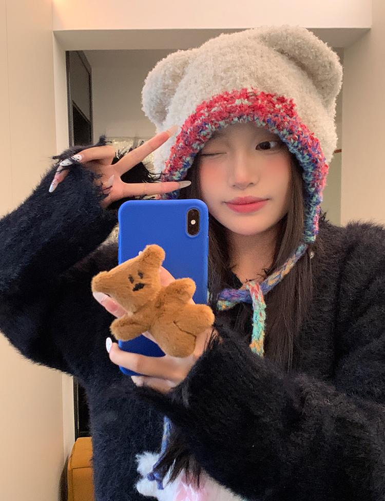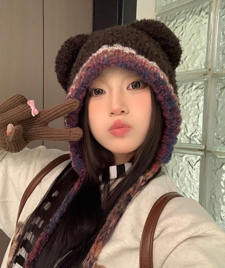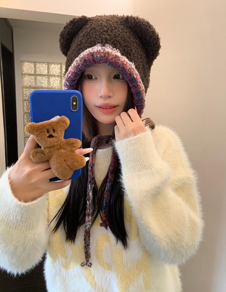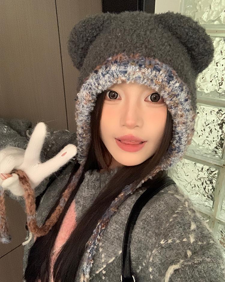 Compra Sombrero Lei Feng de Protección para Orejas de Oso Dulce para Mujer Otoño e Invierno Viaje a Prueba de Frío Atado Sombrero de Felpa Cabeza Grande Lindo Sombrero de Lana al por mayor en Joom.pro