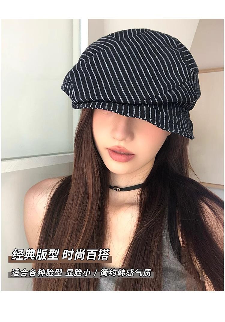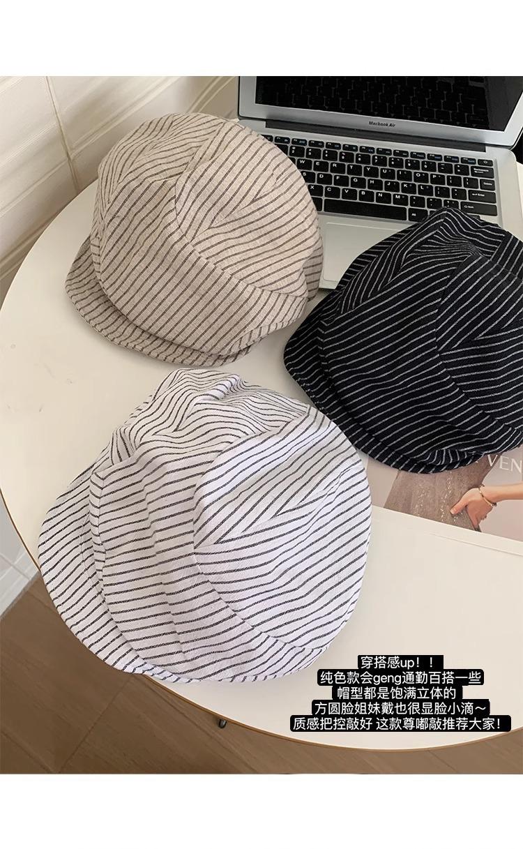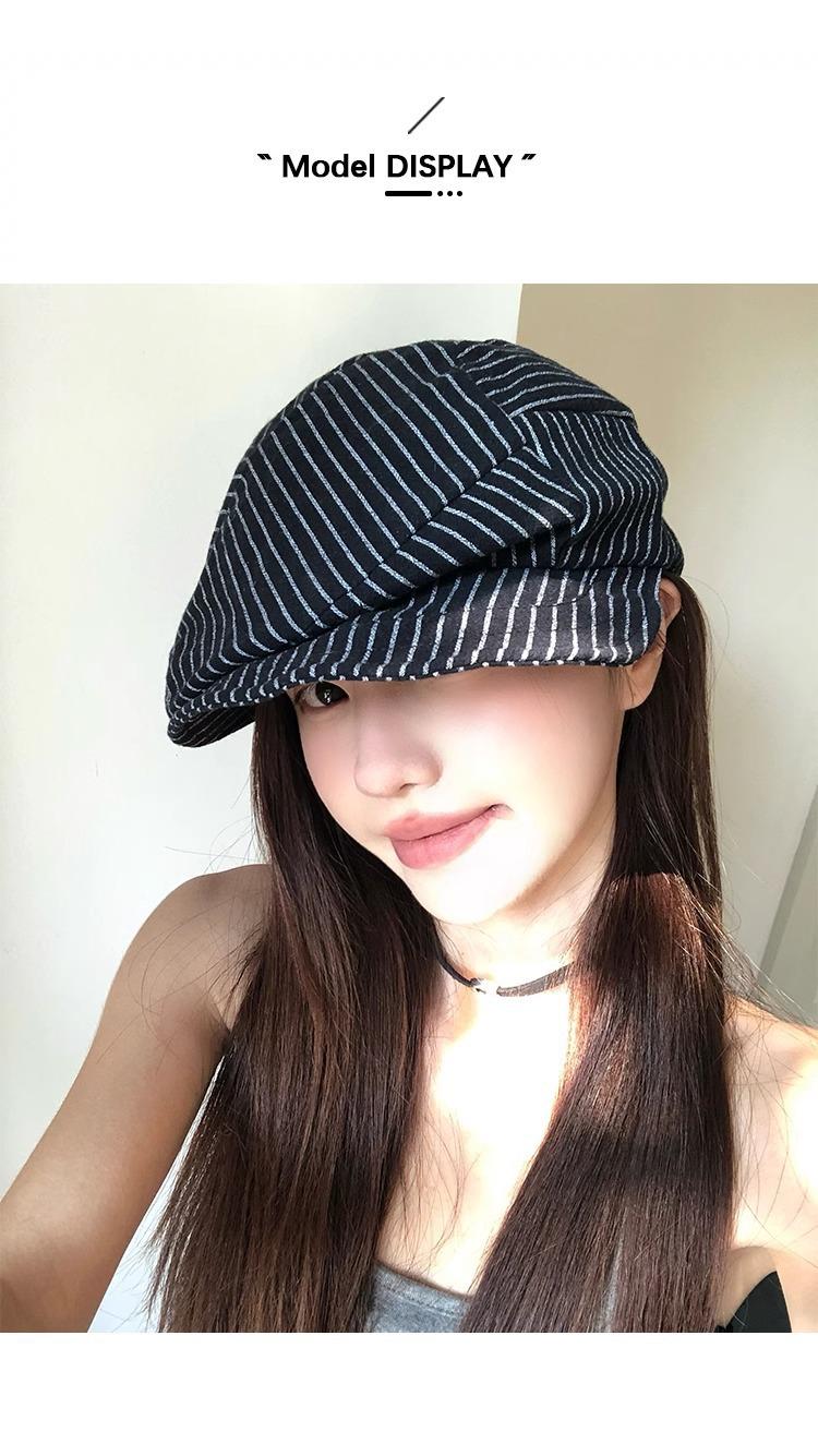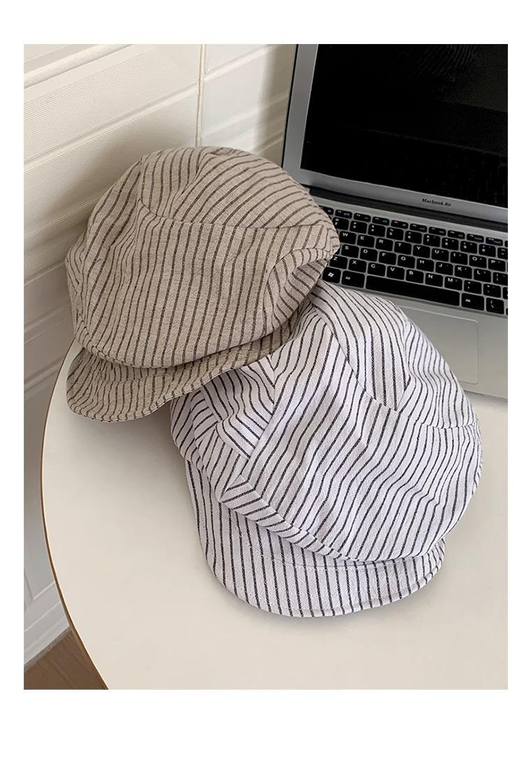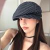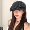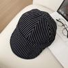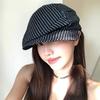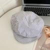 Gorra Artística Rayada Estilo Japonés Boina de Algodón y Lino para Mujer Primavera y Verano Transpirable Adelgazante para la Cara Gorra de Niño de los Periódicos Retro Gorra de Pintor