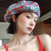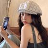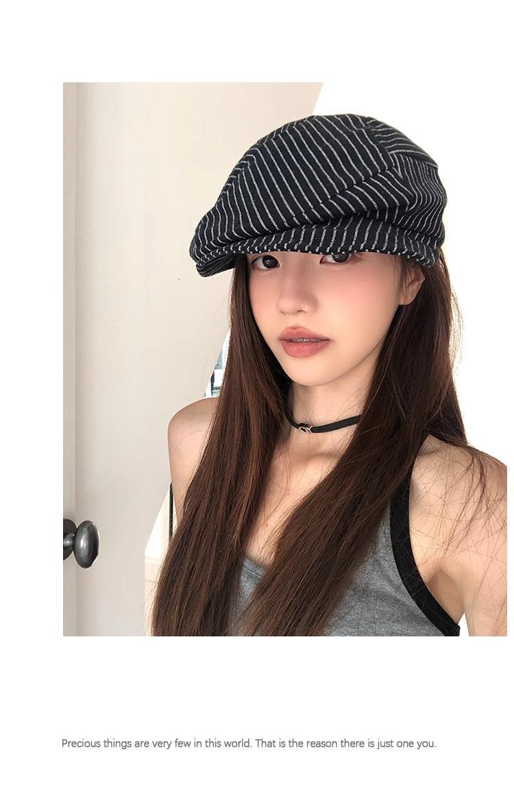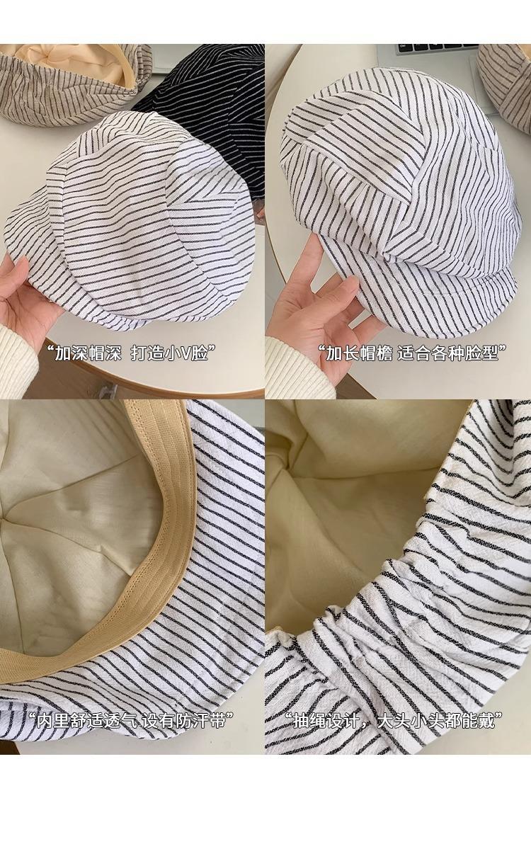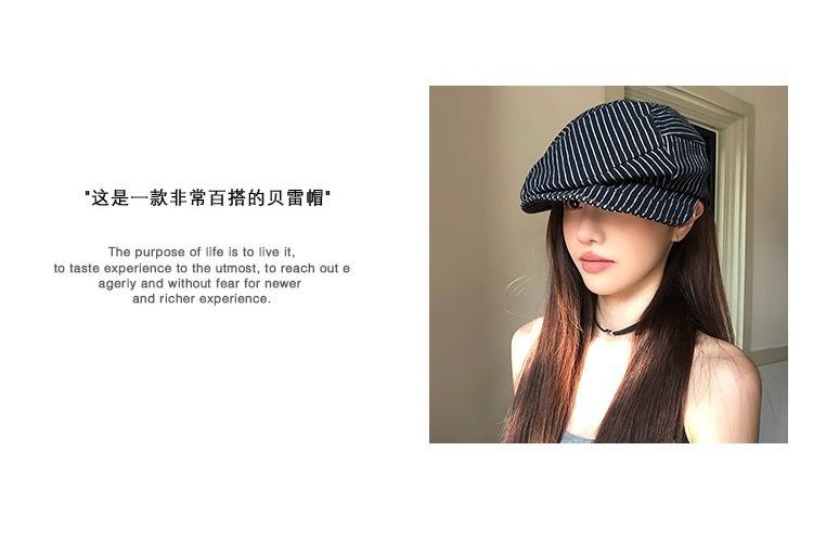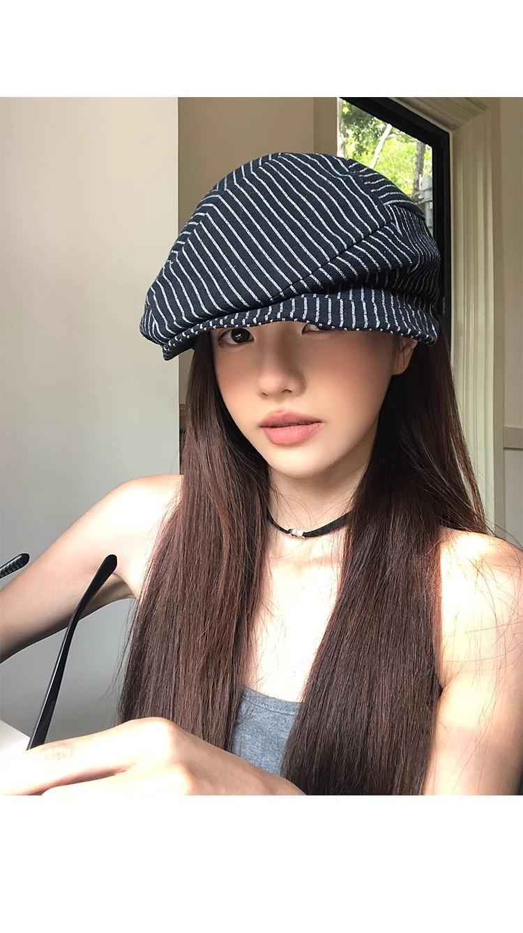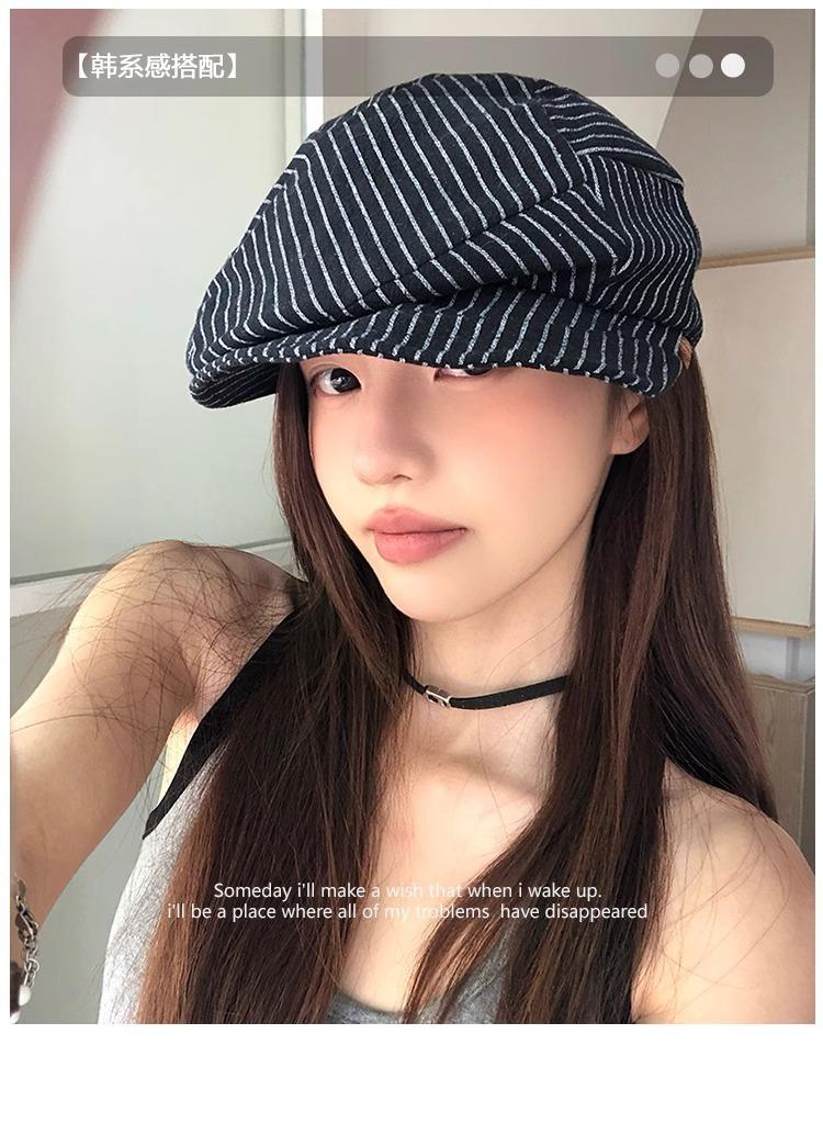 Gorra Artística Rayada Estilo Japonés Boina de Algodón y Lino para Mujer Primavera y Verano Transpirable Adelgazante para la Cara Gorra de Niño de los Periódicos Retro Gorra de Pintor