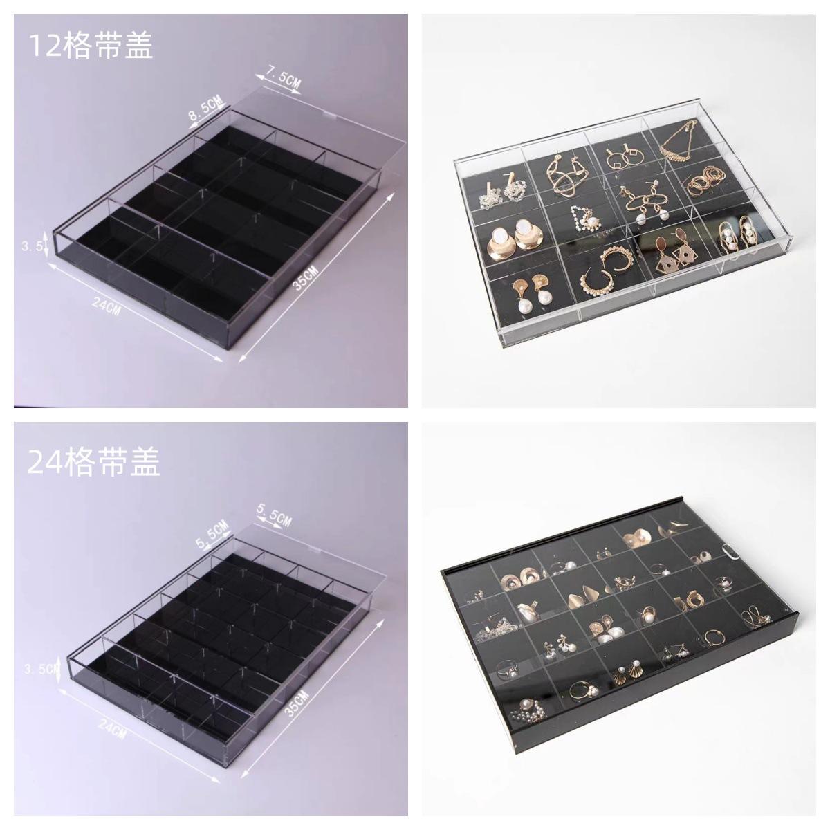 Caja de Exhibición de Compartimentos de Acrílico Transparente, Joyero para Aretes, Caja de Almacenamiento Multicompartimento a Prueba de Polvo con Tapa, Caja para Accesorios de Cuentas Sueltas