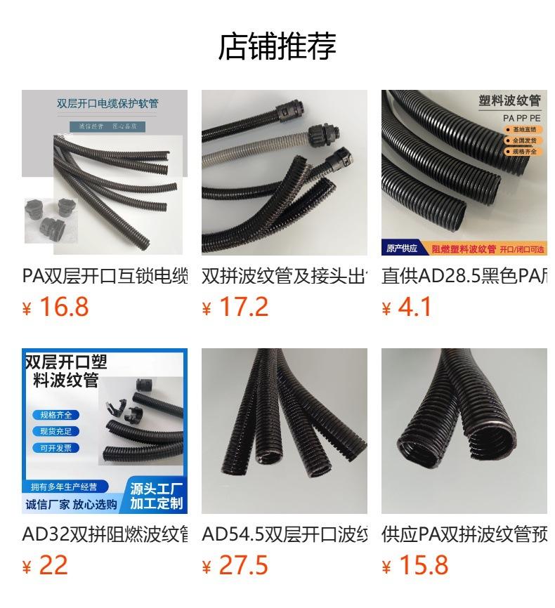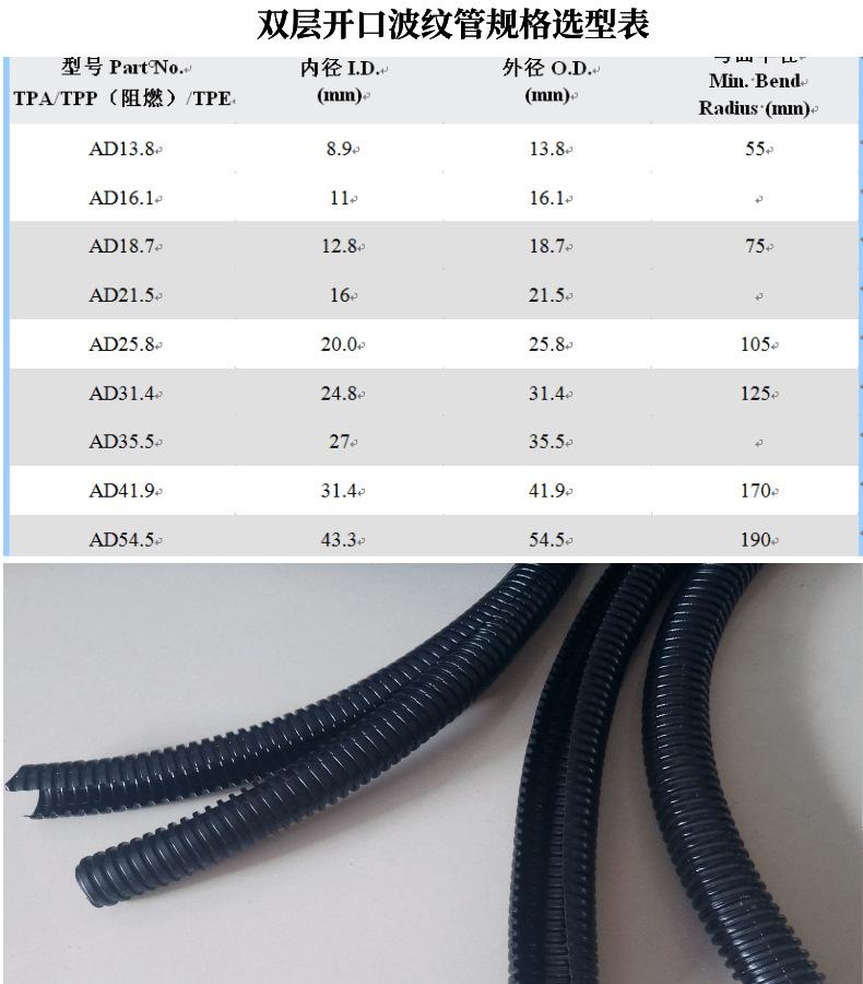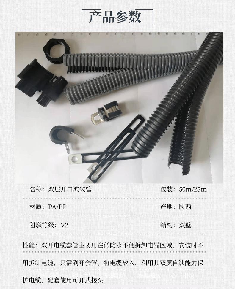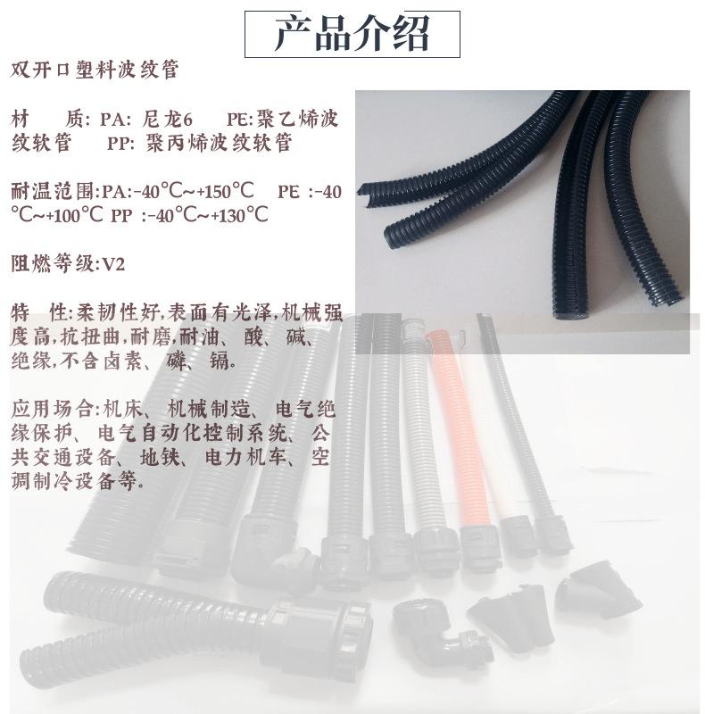 Especificaciones de Manguito Protector de Cables de Doble Brazo de Nailon Corrugado de Dos Piezas Retardante de Llama Industrial