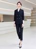 Traje Profesional Formal Clásico Negro Corte Slim para Mujer Sin Planchado Ropa para Mujer de Cuello Blanco Chaqueta de Manga Larga Conjunto de Pantalón