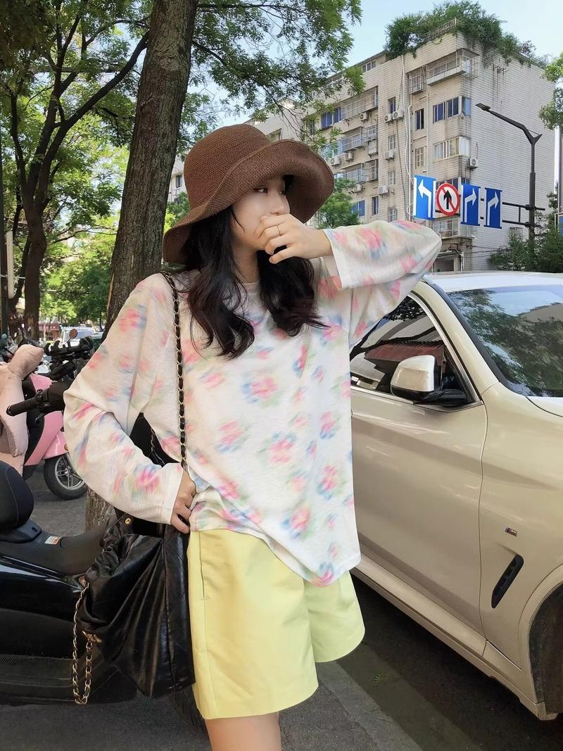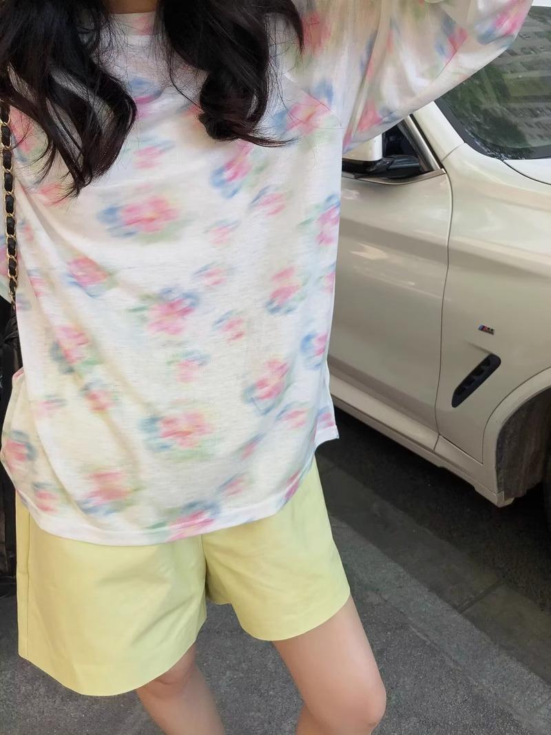 Small flower blooming sunscreen T, Yellow Hot Summer Shorts