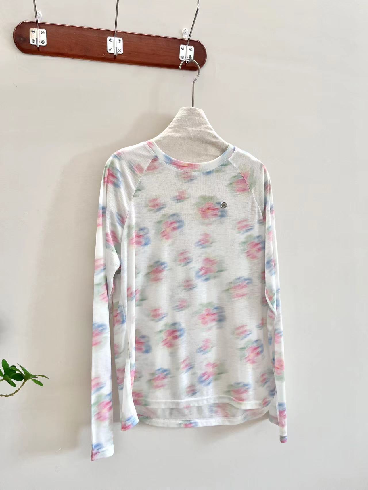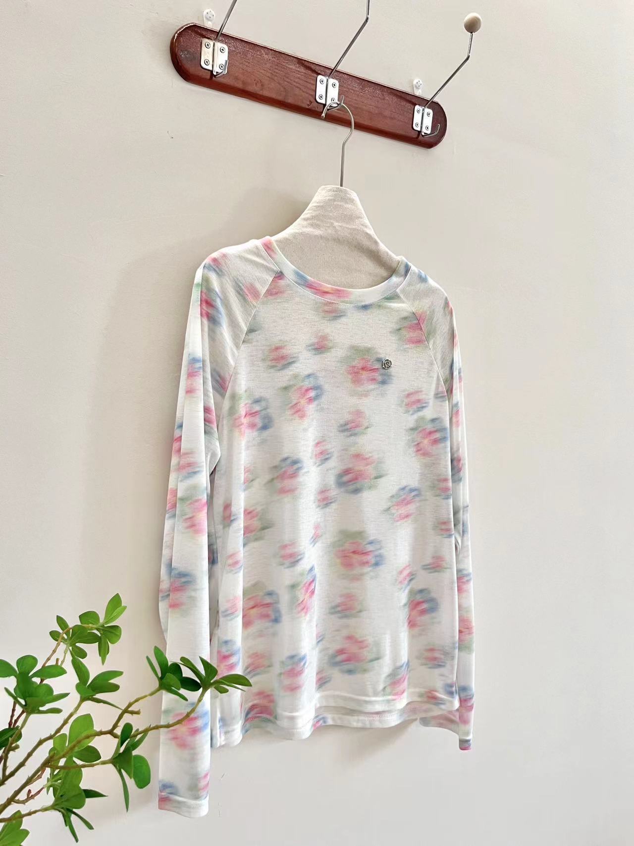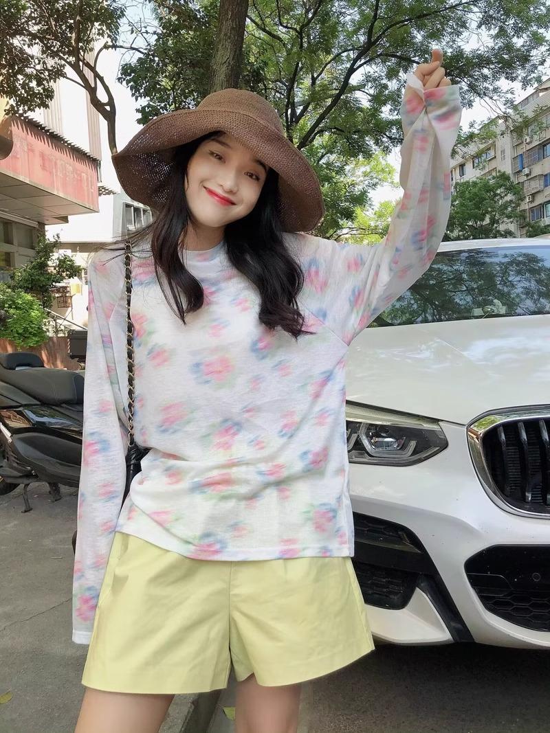 Dopamina Verano 2024 Coreano Nicho Estilo Perezoso Blusa Protector Solar Ultradelgada Top de Malla Degradado Tie-dye T