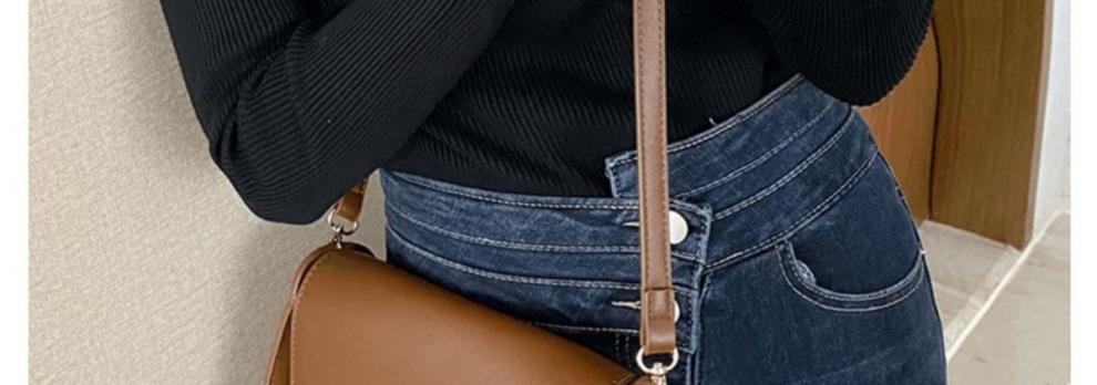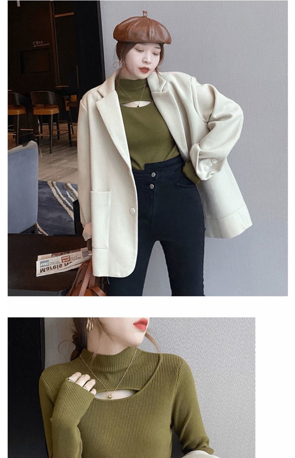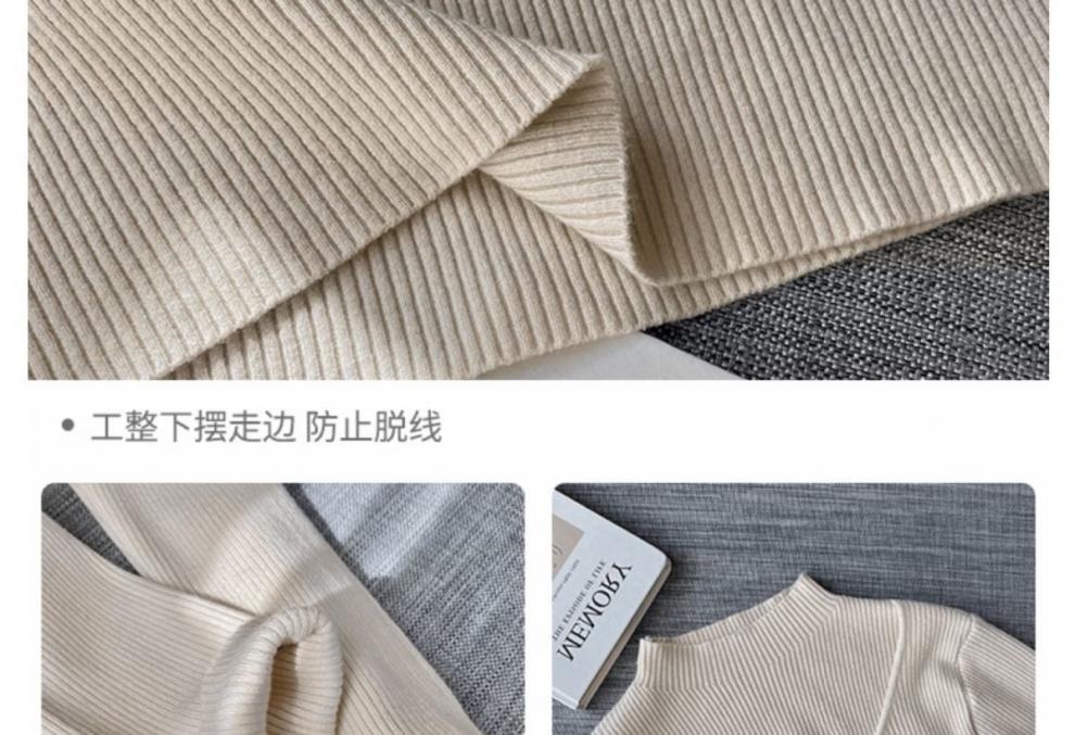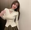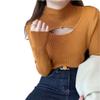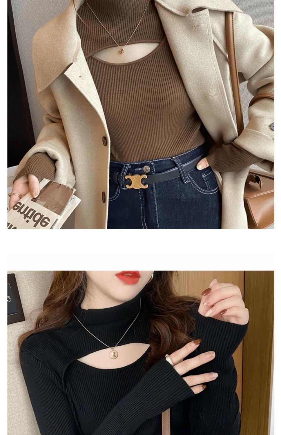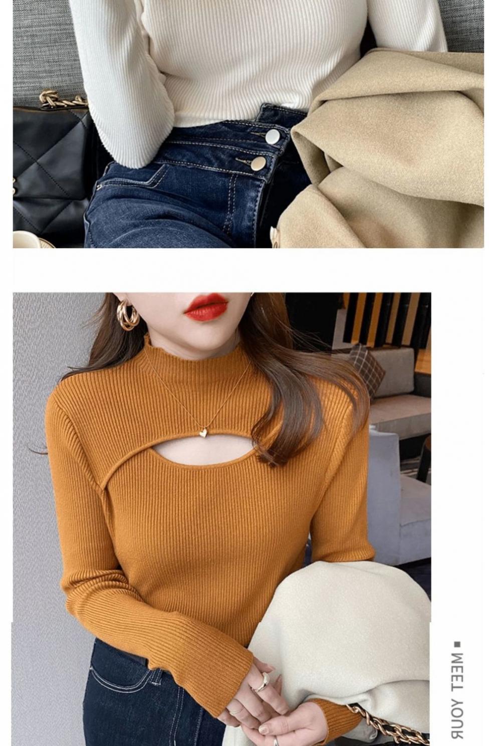 Camiseta Base de Punto de Cuello Medio Alto Hueco para Mujer Ropa Interior Otoño Sentido del Diseño Nicho Estilo Occidental Suéter Top