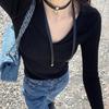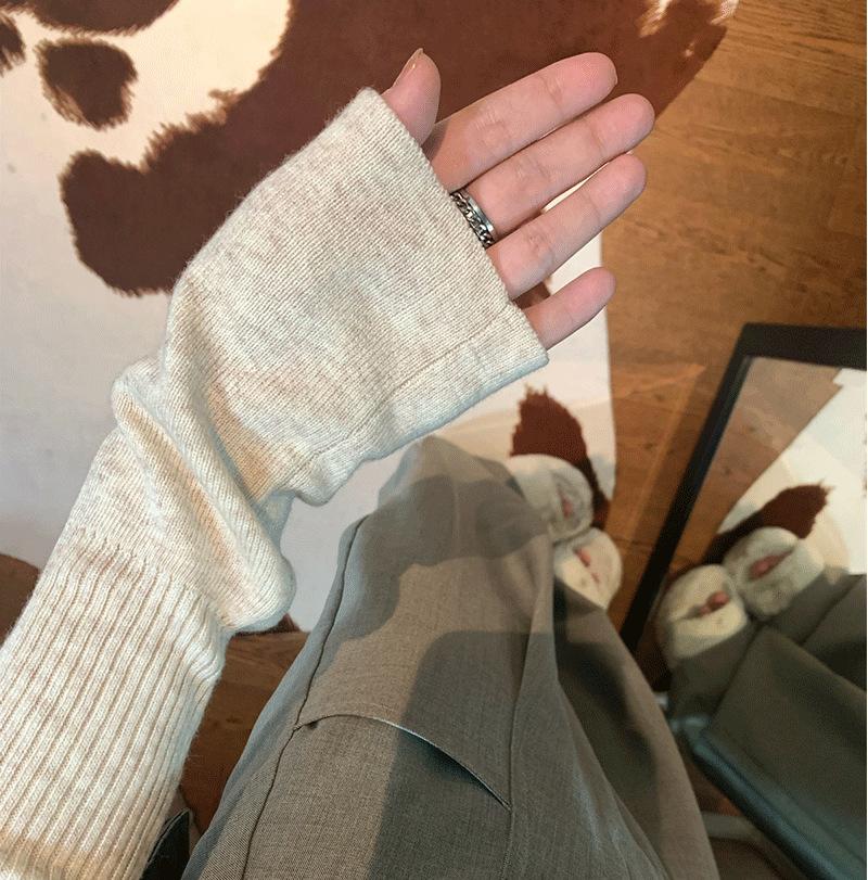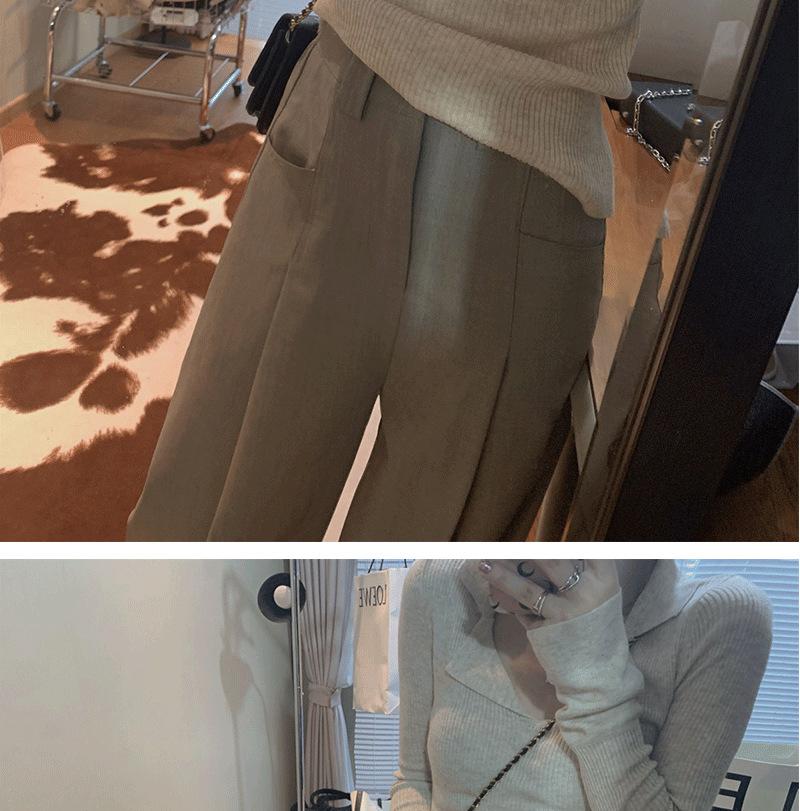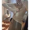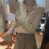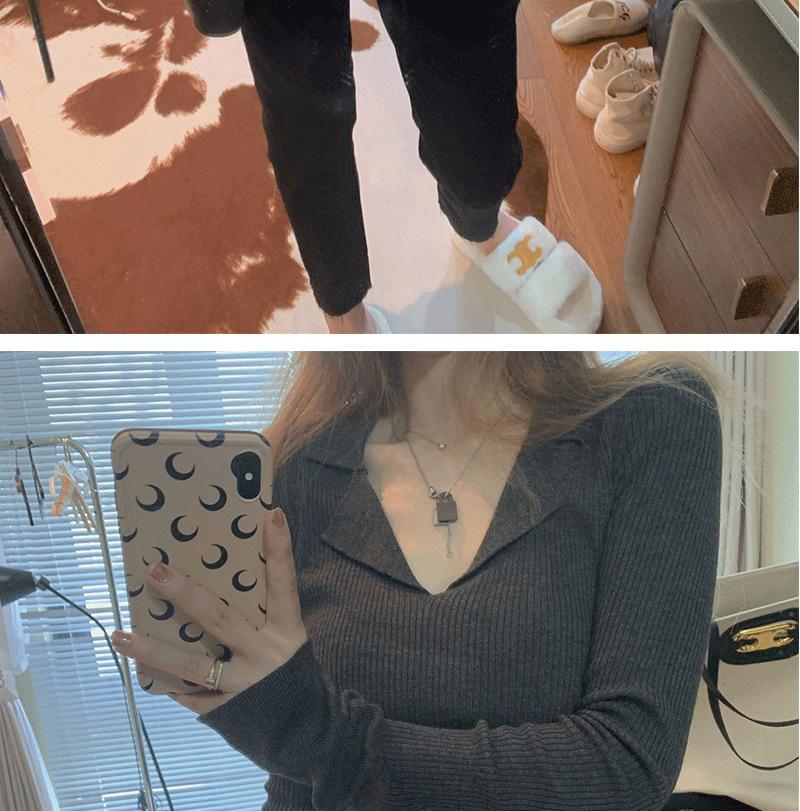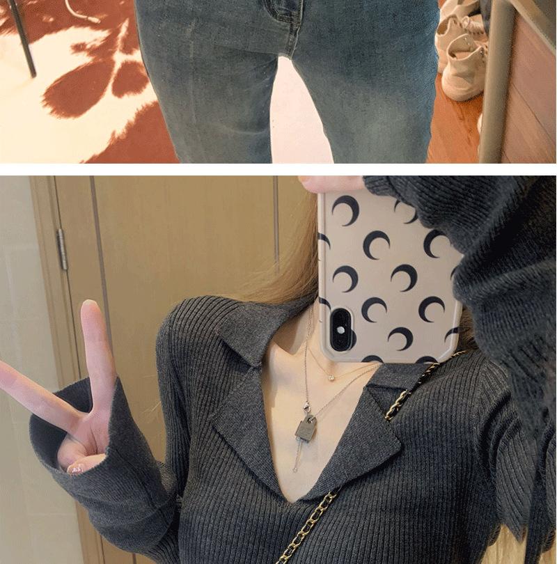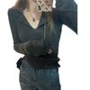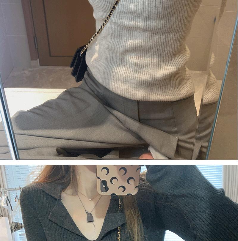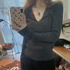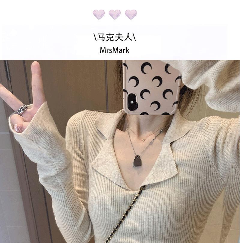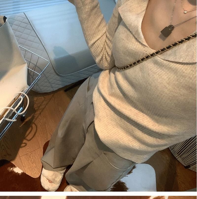 Suéter Suave Ceroso Cuello Polo para Mujer Otoño e Invierno Diseño Grueso Sentido Puro Cuello en V Manga Larga Camisa Base Top Clavícula