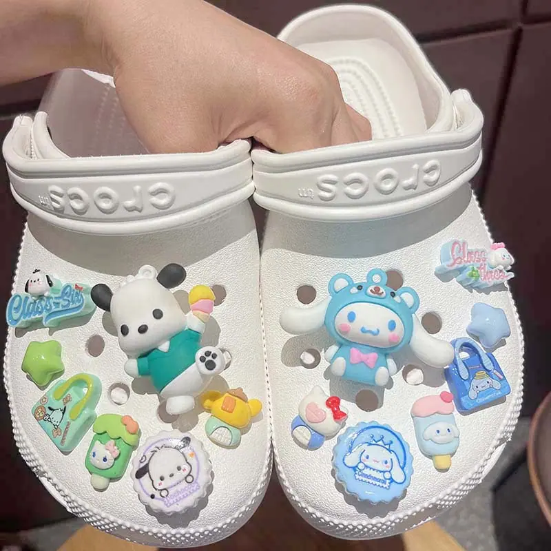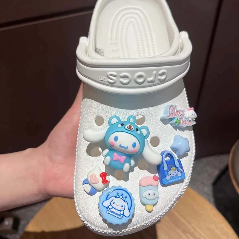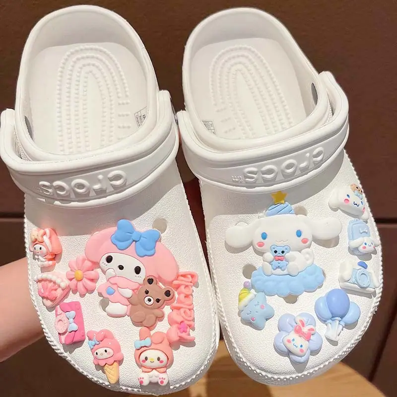 Sanrio DIY Zapatos Croc Hebilla para Zapatos Flor para Zapatos Dibujo Animado Lindo Adaptación de Plástico Suave Perro Canela Gato Kt Flor para Zapatos Hebilla para Zapatos