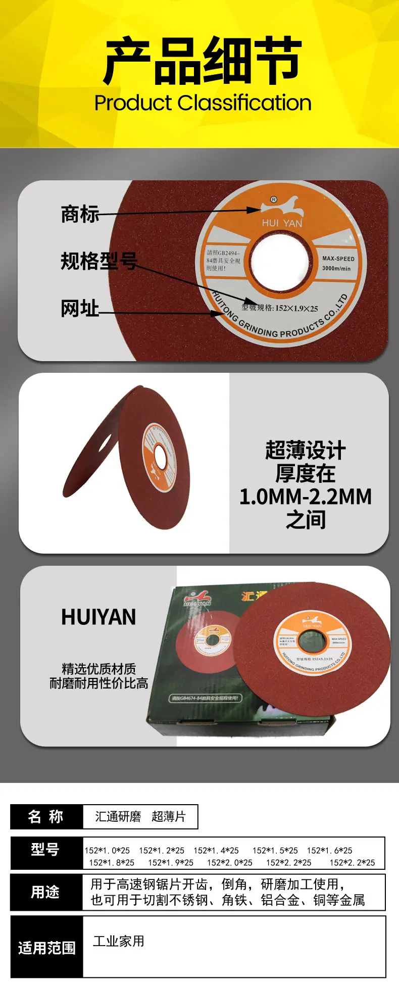 Huitong Cutting Disc 152*1.0*25, Huitong Cutting Disc 152*1.2*25, Huitong Cutting Disc 152*1.4*25, Huitong Cut...