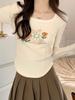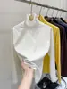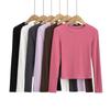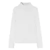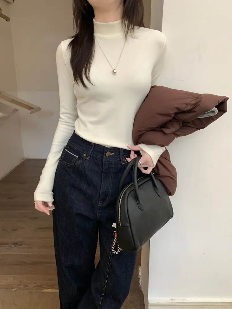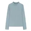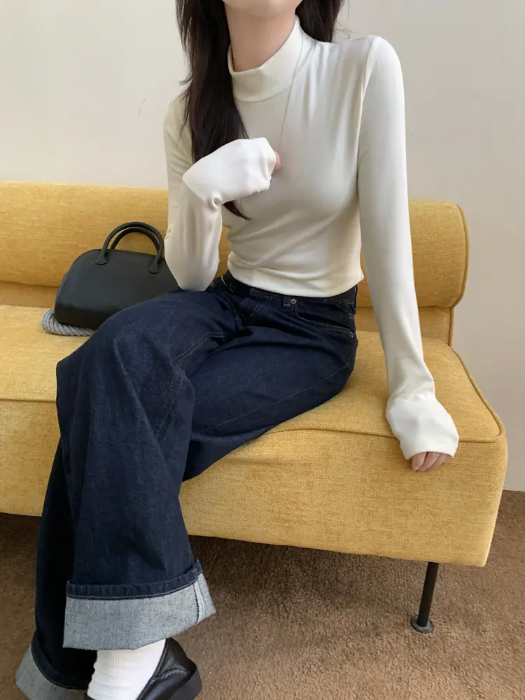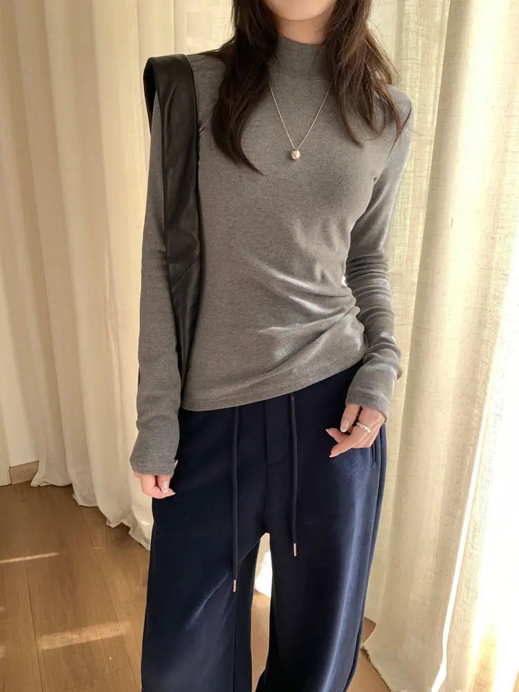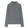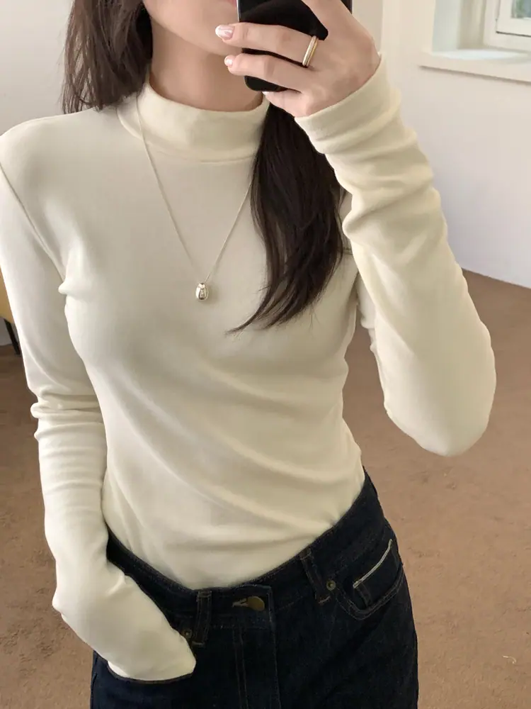 Camiseta básica de cuello semi-alto forrada de polar para mujer, otoño e invierno 2024, ajustada, corta, de color sólido, con hombreras y manga larga, top interior