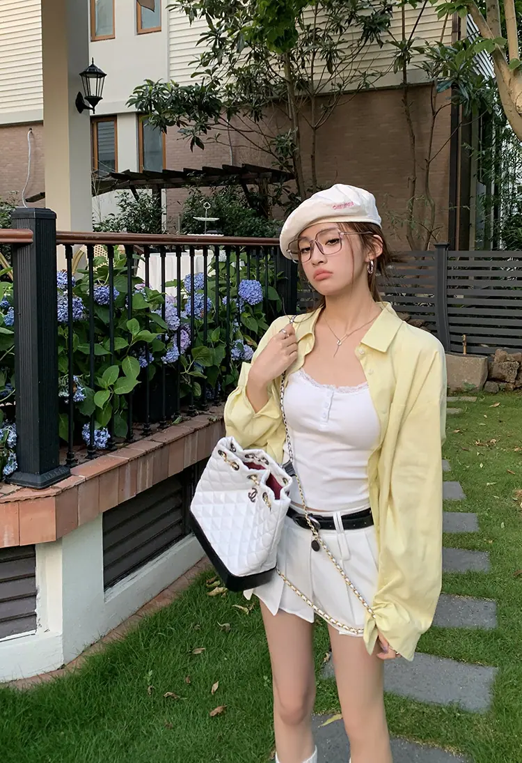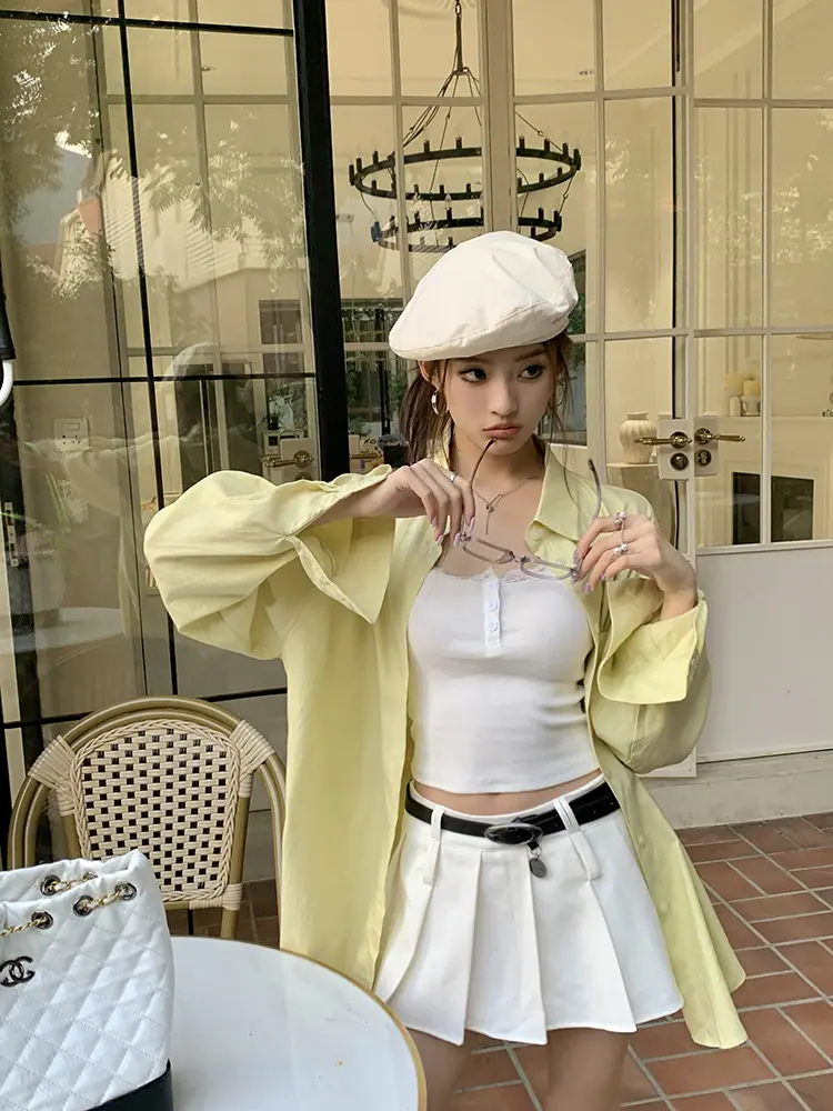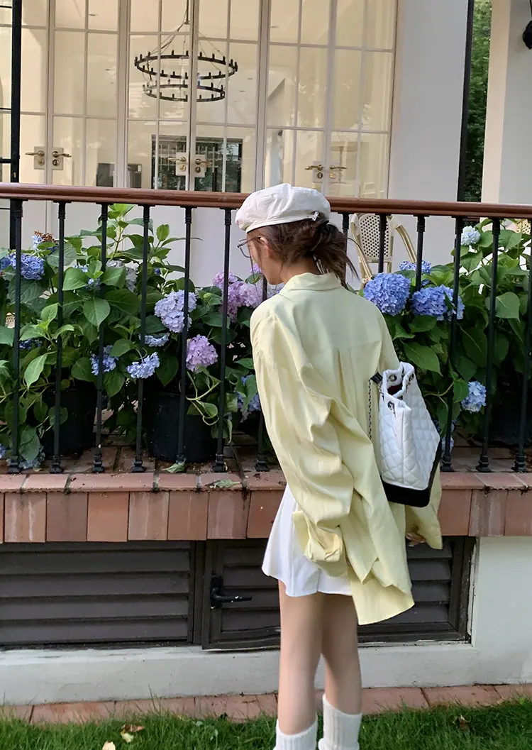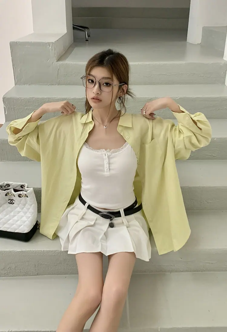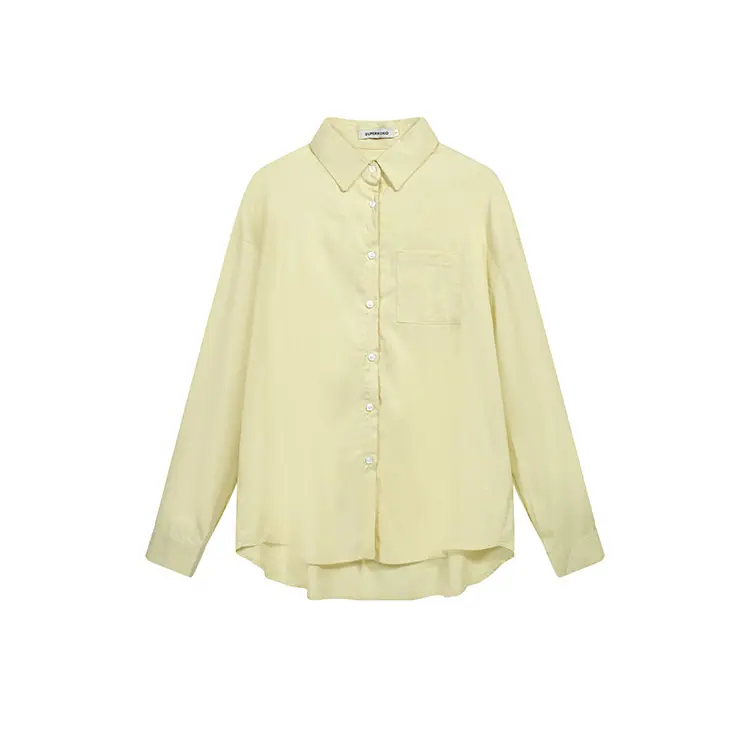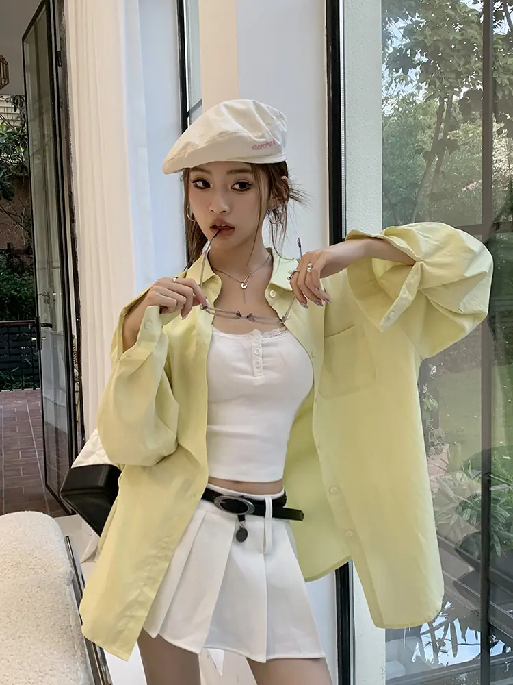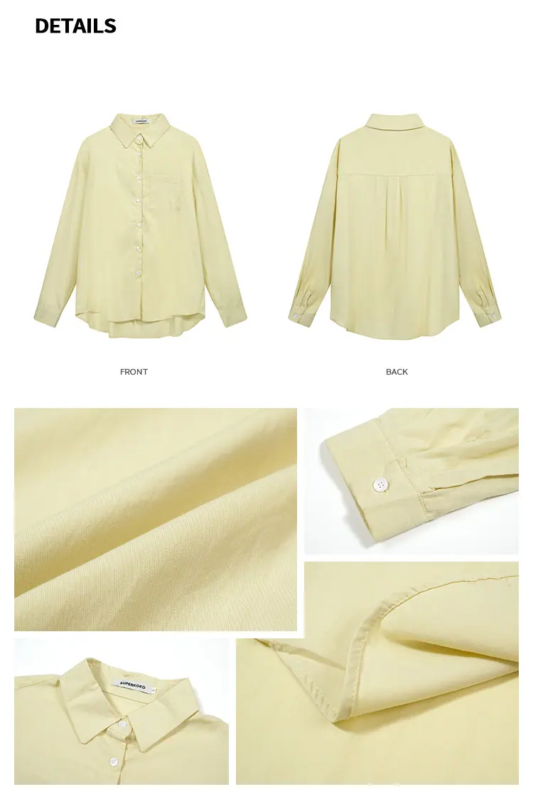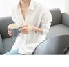Nueva Camisa de Algodón de Diez Otoño 2024 para Viajero, Versátil, Holgada, con Solapa, Manga Larga de Largo Medio, Camisa Protectora Solar para Mujer