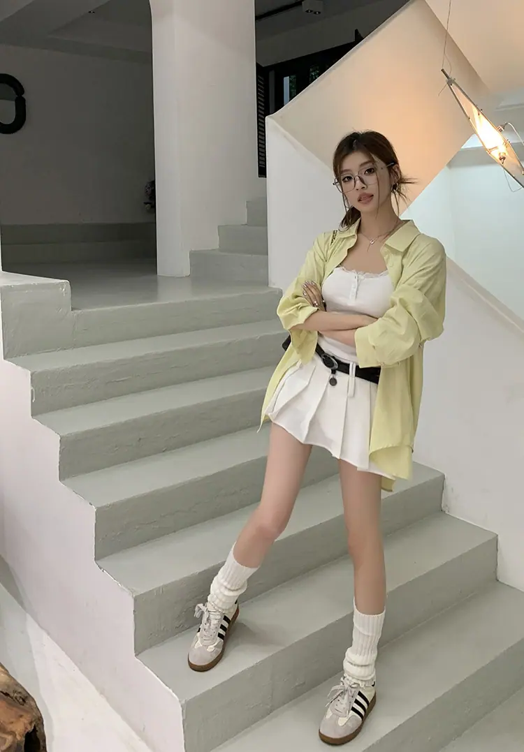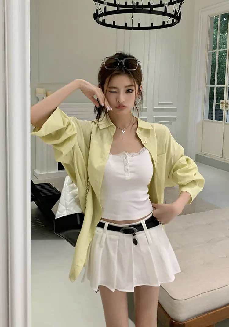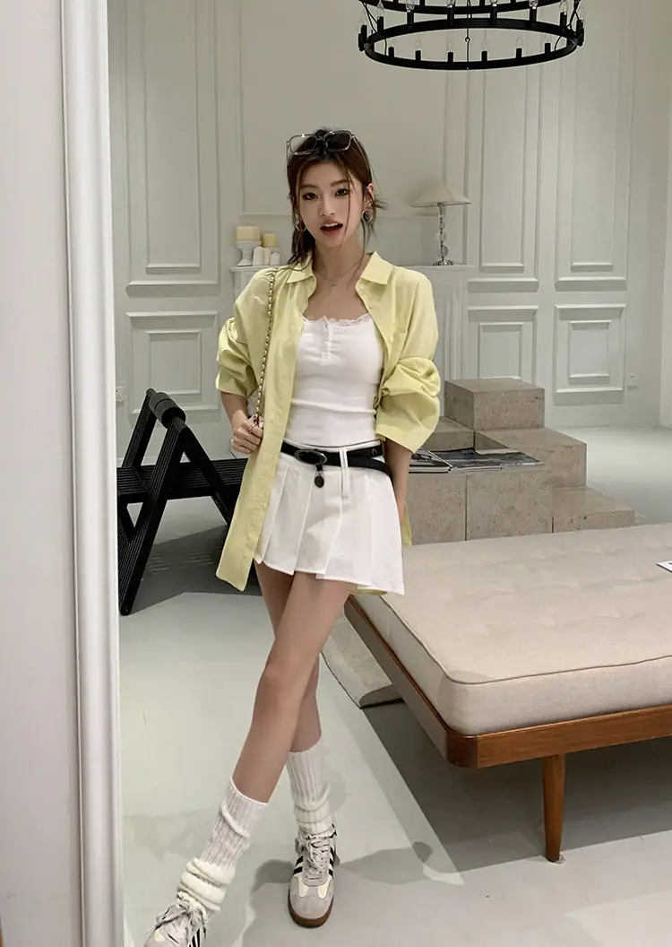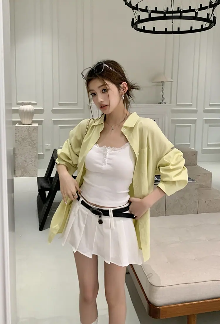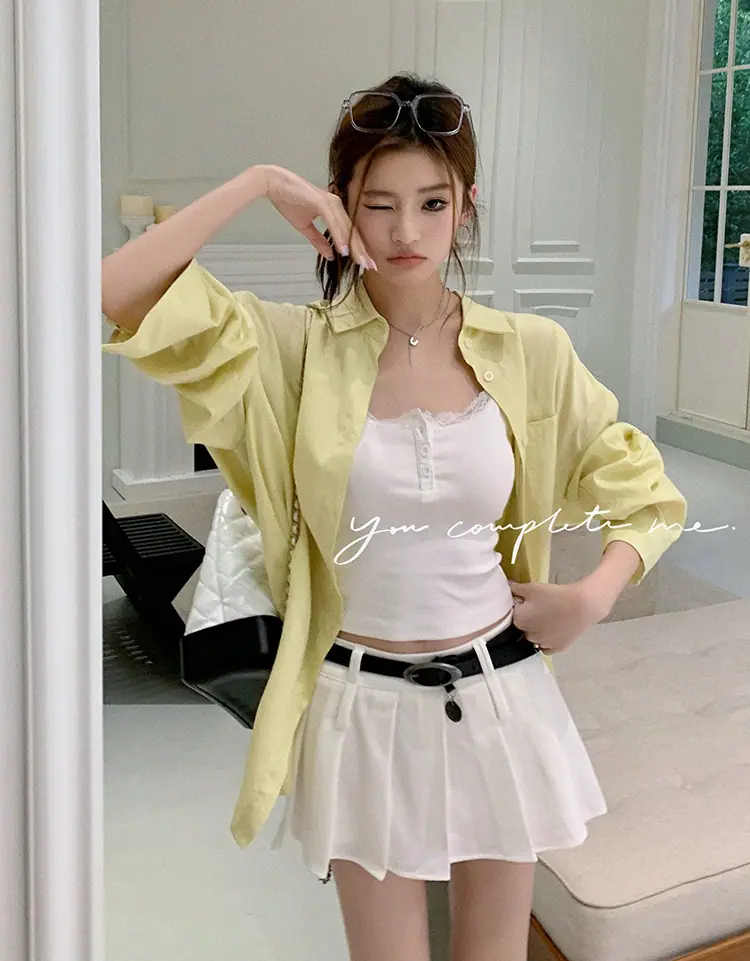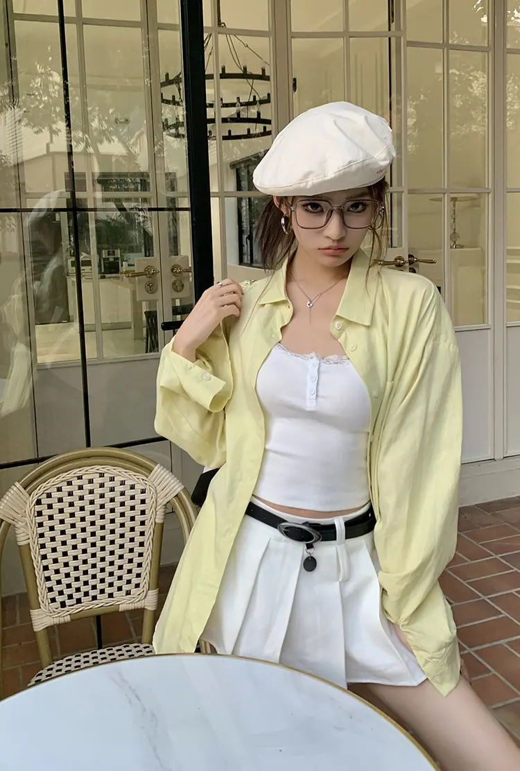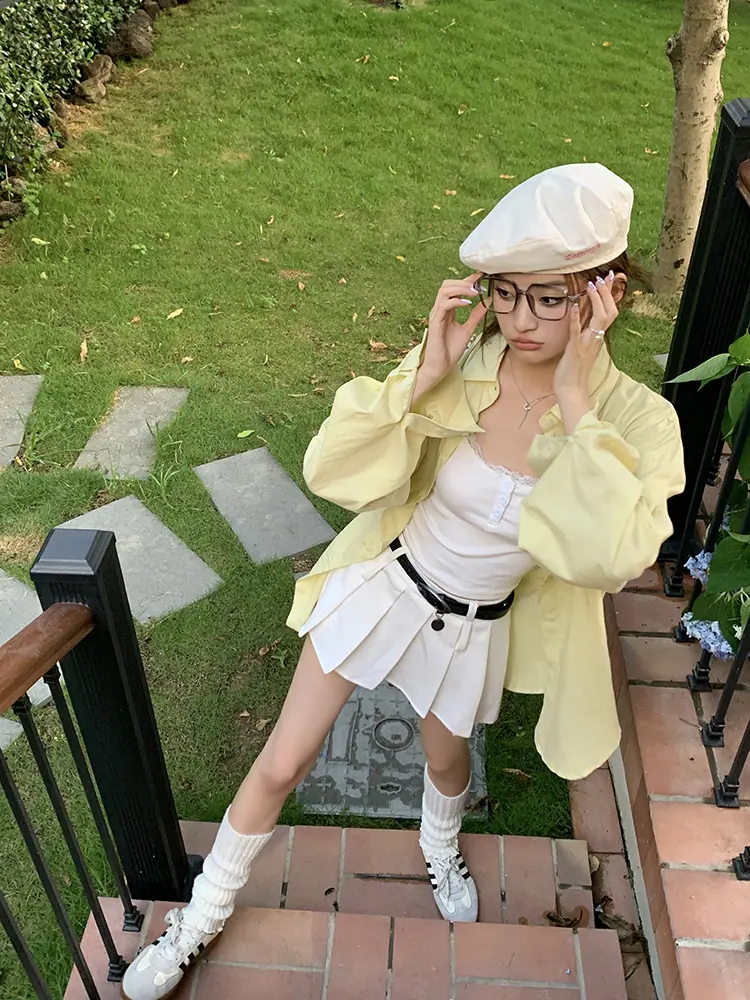 Nueva Camisa de Algodón de Diez Otoño 2024 para Viajero, Versátil, Holgada, con Solapa, Manga Larga de Largo Medio, Camisa Protectora Solar para Mujer