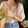 Camiseta de corte coreano para mujer con cuello redondo y manga corta abullonada, verano 2021, holgada, combinable con todo, adelgazante, jersey blanco