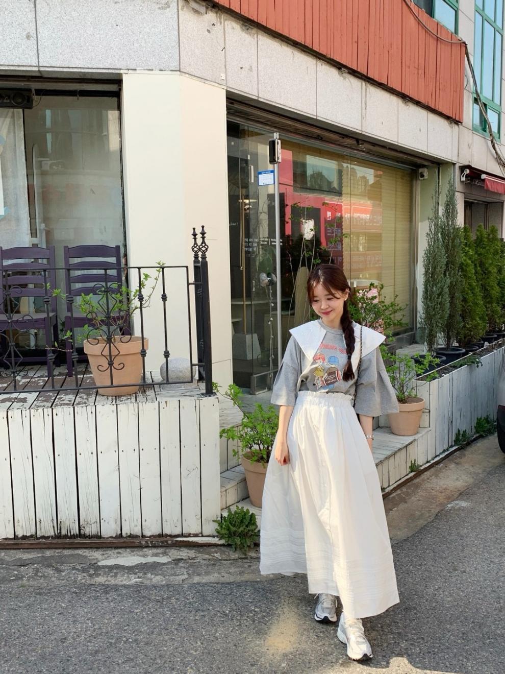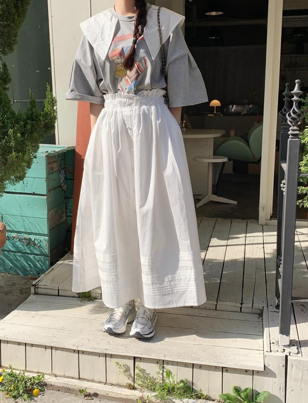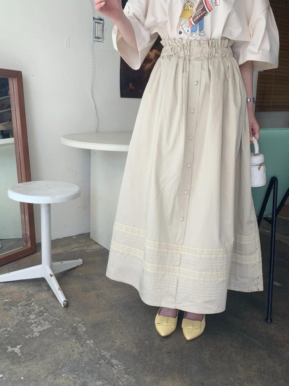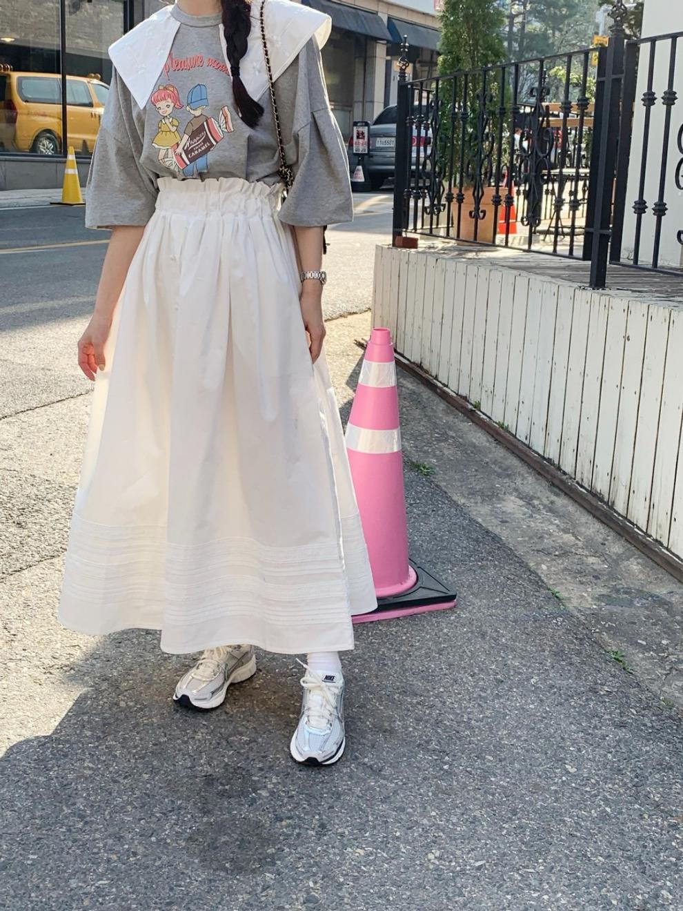 2025 Primavera/Verano Estilo Coreano Dulce Cintura Elástica Volantes Cintura Alta Versátil Falda Larga Acampanada Media Falda