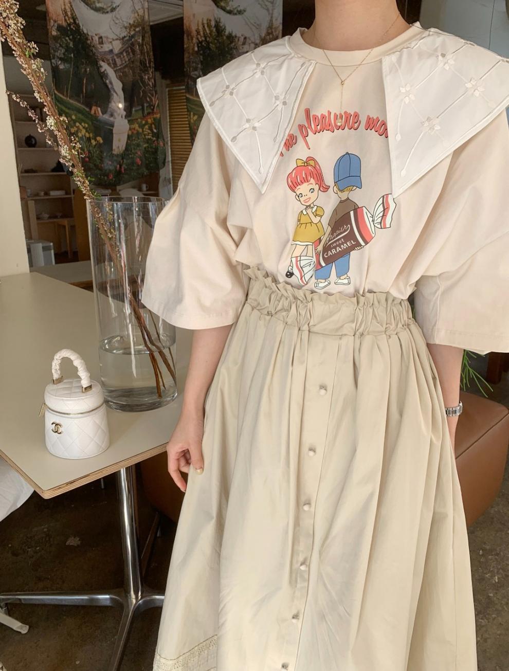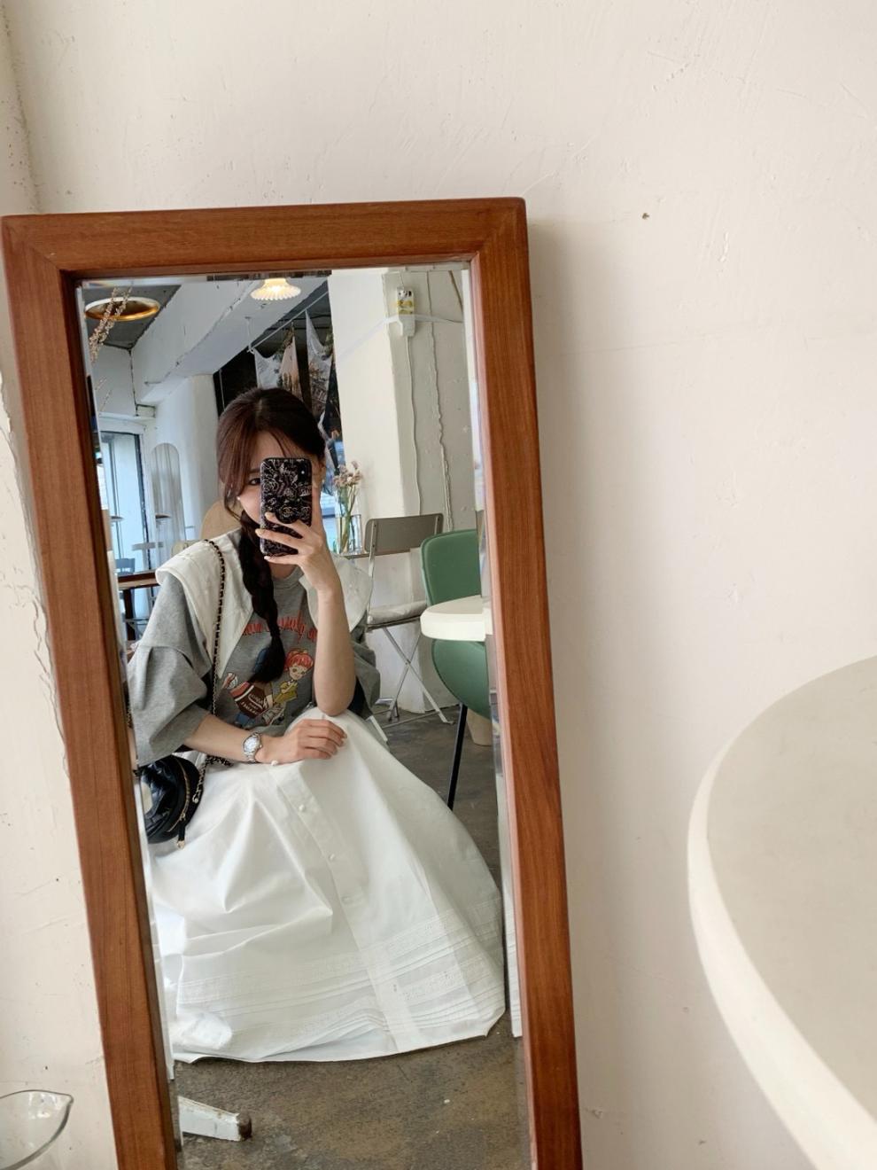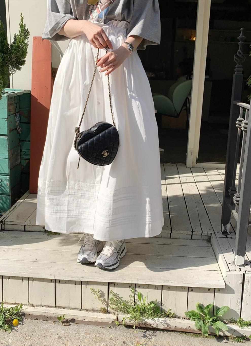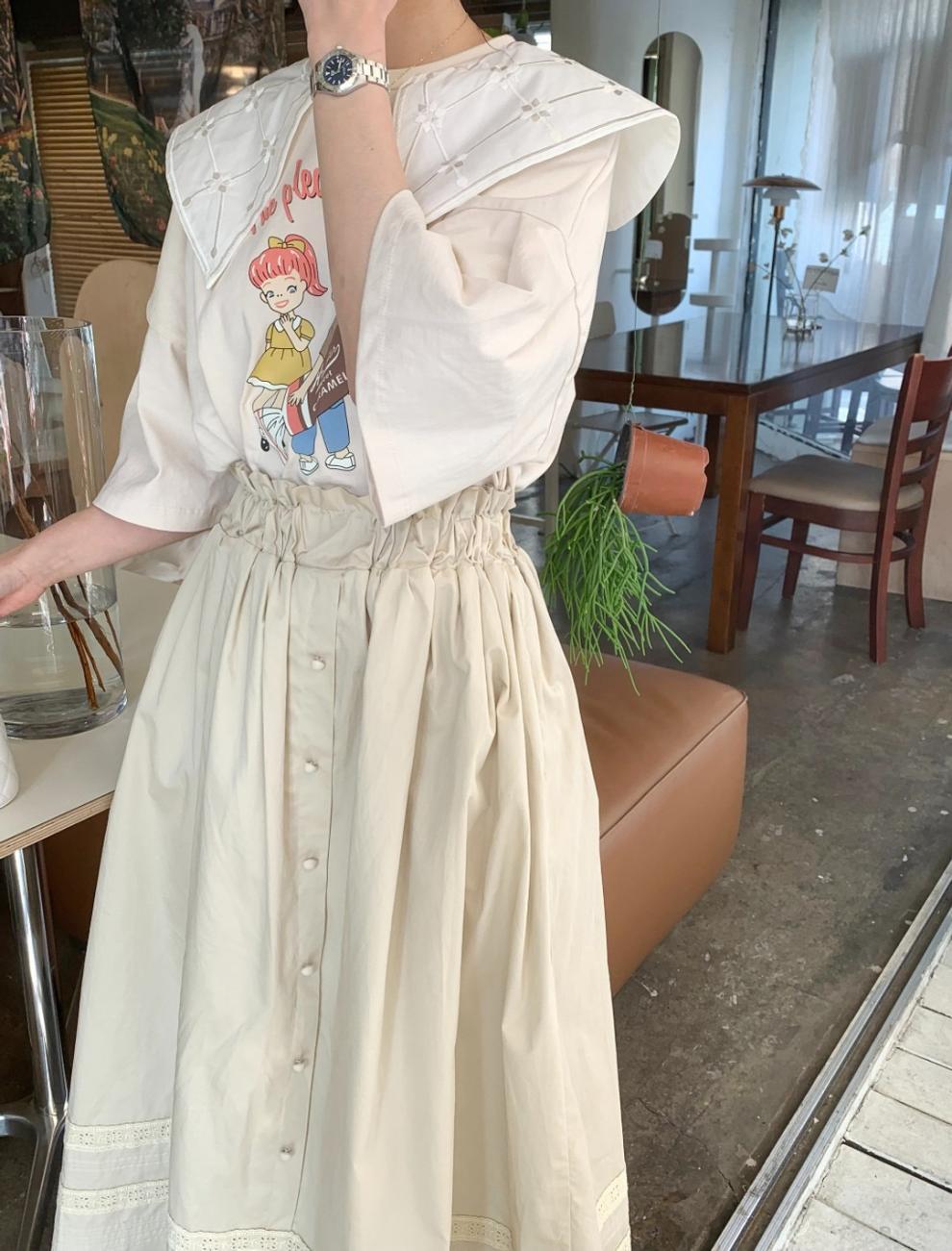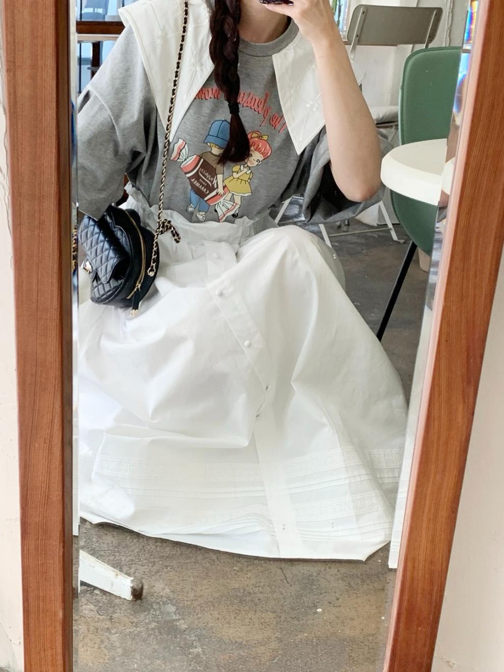 2025 Primavera/Verano Estilo Coreano Dulce Cintura Elástica Volantes Cintura Alta Versátil Falda Larga Acampanada Media Falda