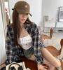 Camisa de cuadros retro a contraste de color Otoño 2023 para mujer, holgada, talla grande, hombro caído, largo medio, cárdigan protector solar