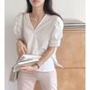 2021 Verano Nuevo Diseño Nicho Francés Sentido Cuello en V Hebilla Oblicua Color Sólido Camisa Blanca de Burbujas Manga Corta para Mujer