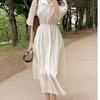 Vestido de Verano 2022 Estilo Coreano Estilo Francés Elegante Pequeño Cuello Abierto Color Sólido Cintura Ajustada Adelgazante Largo Medio Manga Corta para Mujer