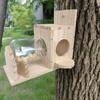 Comedero para Ardillas Exterior Comedero de Madera para Ardillas Mesa para Mascotas con Banco Soporte para Mazorcas Plataforma de Alimentación
