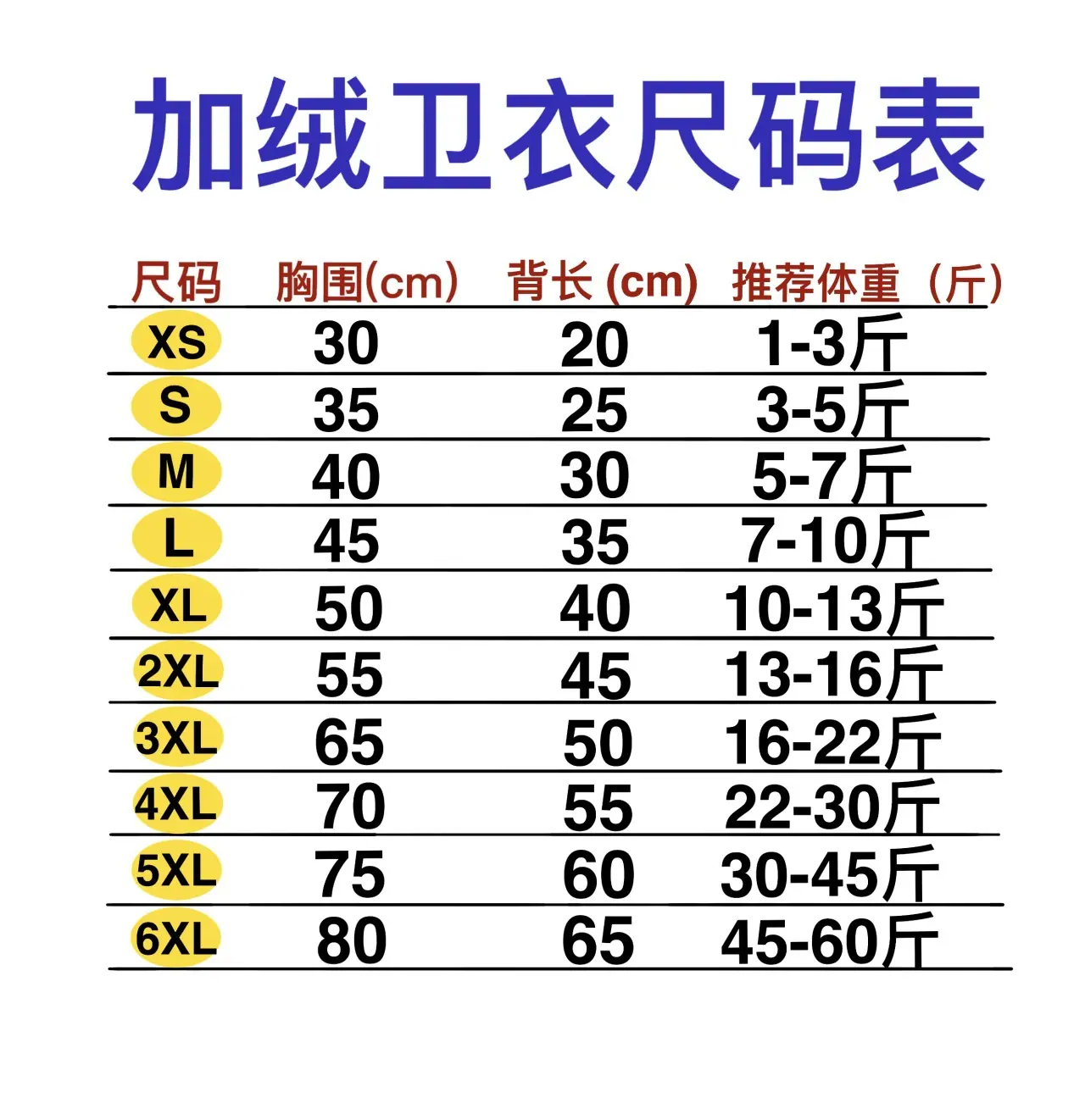 XS reference 1-3 catties, S reference 3-5 catties, M reference 5-7 jin, L reference 7-10 jin, XL reference 10-...