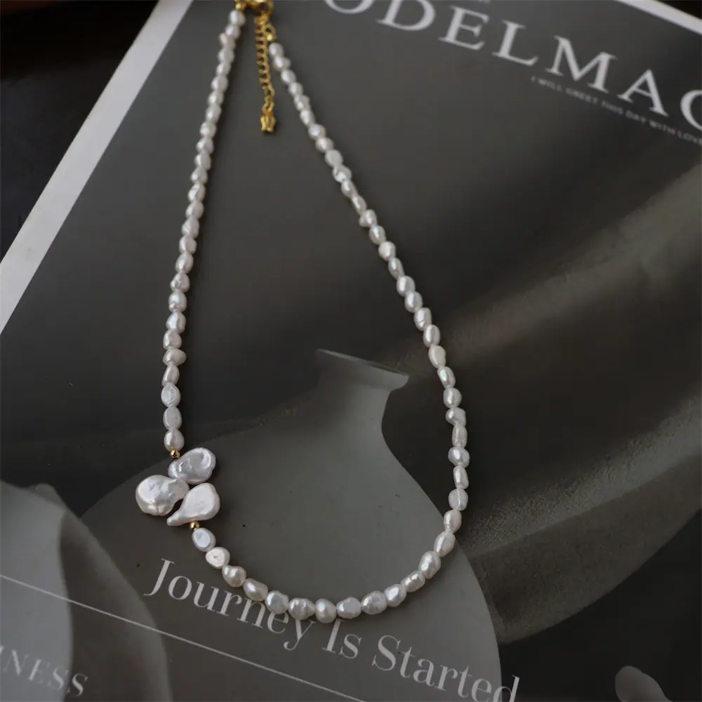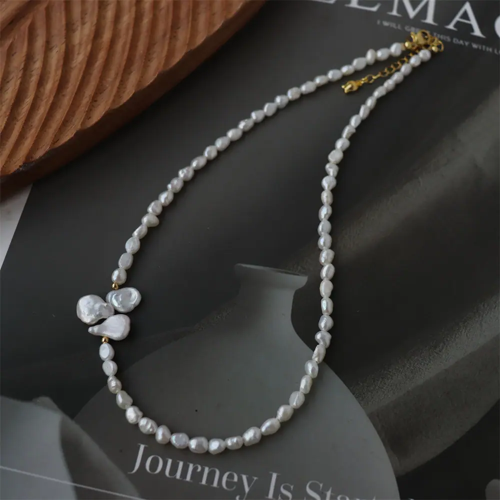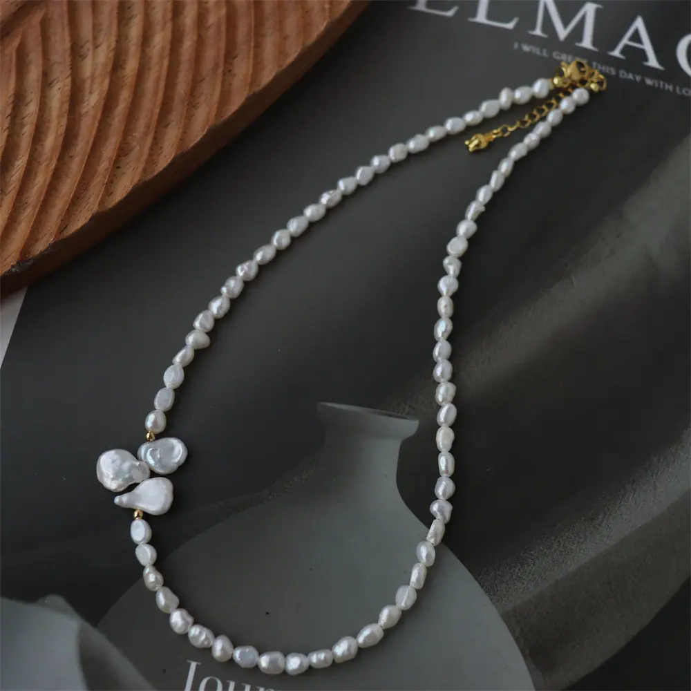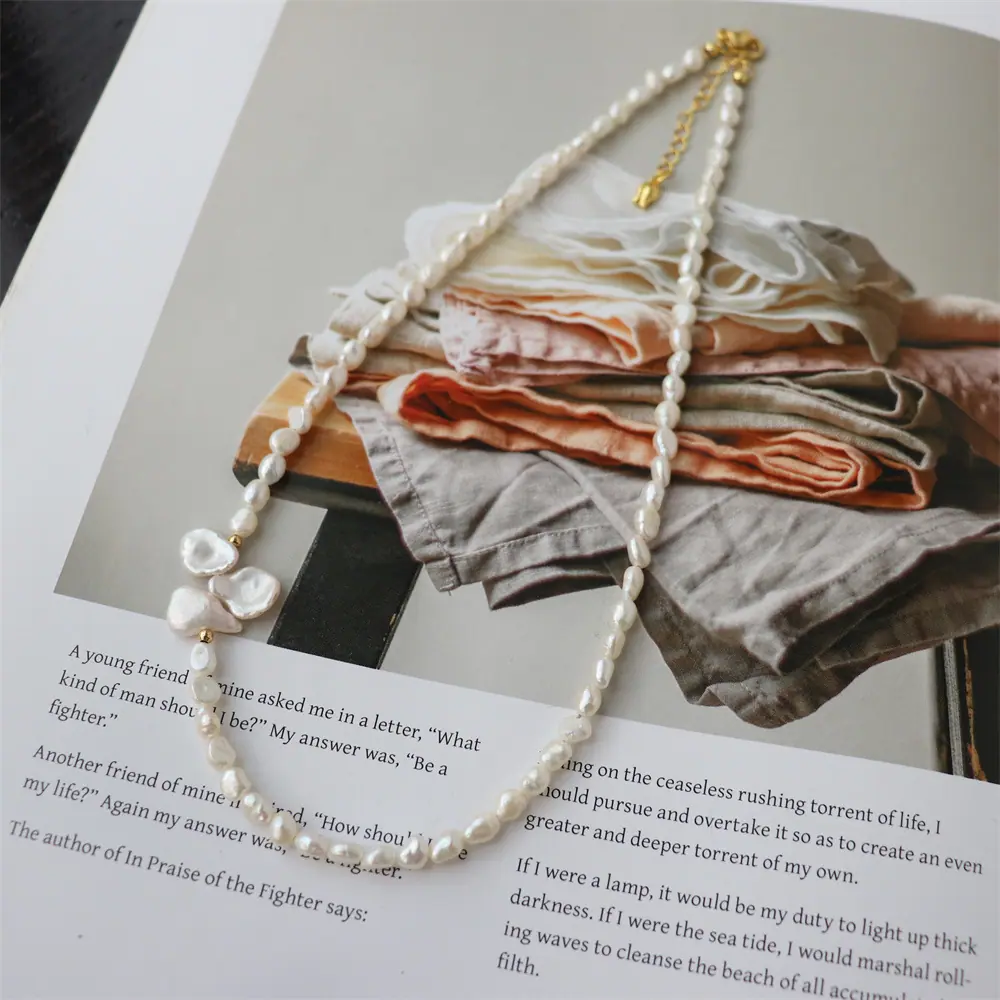 Nuevo Collar de Perlas Barrocas de Agua Dulce Simple Versátil Perlas Pétalo Mujeres Venta al por Mayor Flores