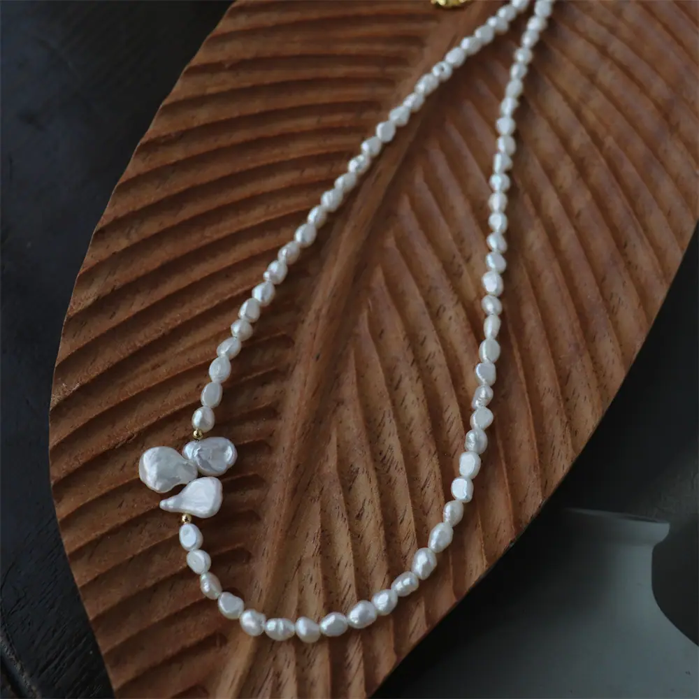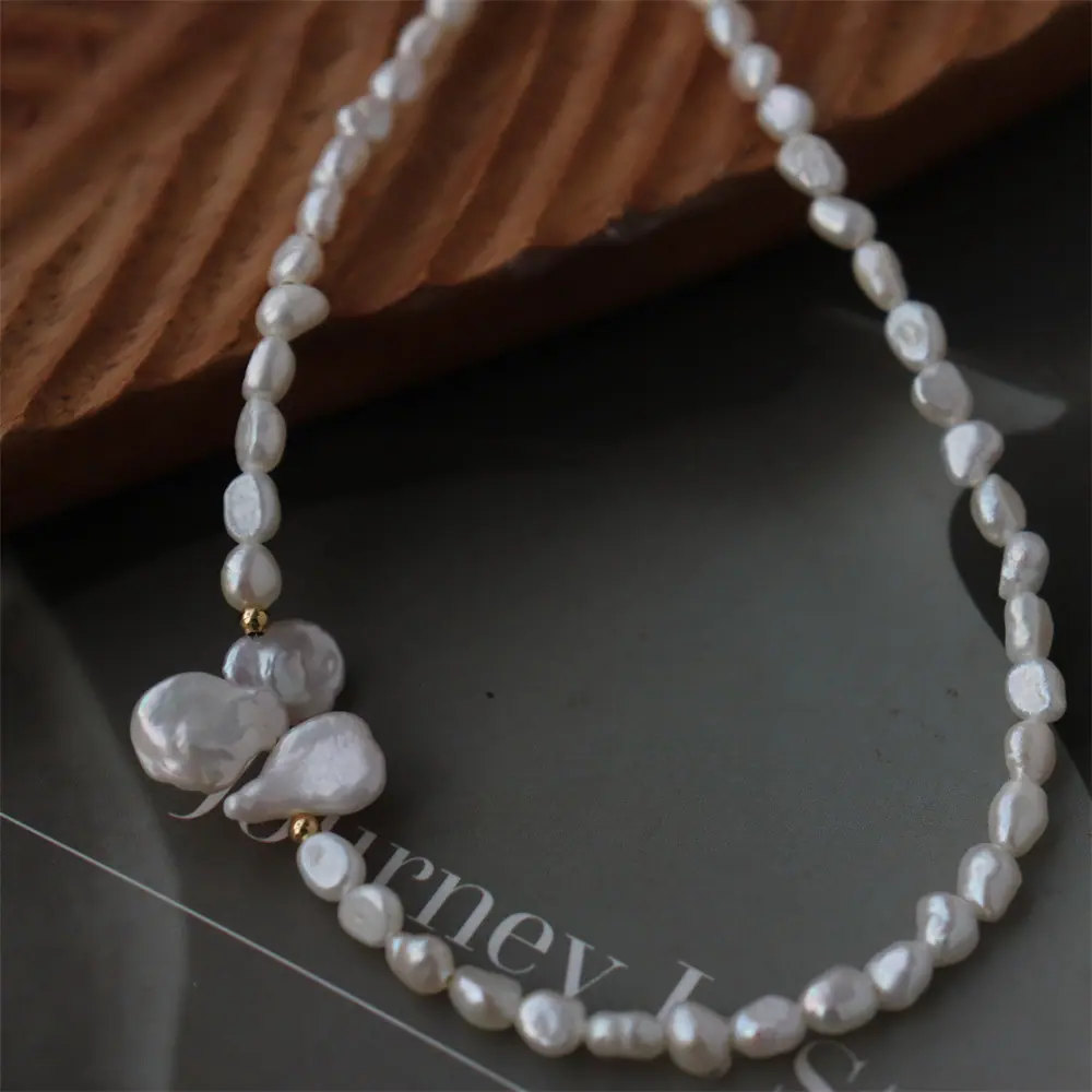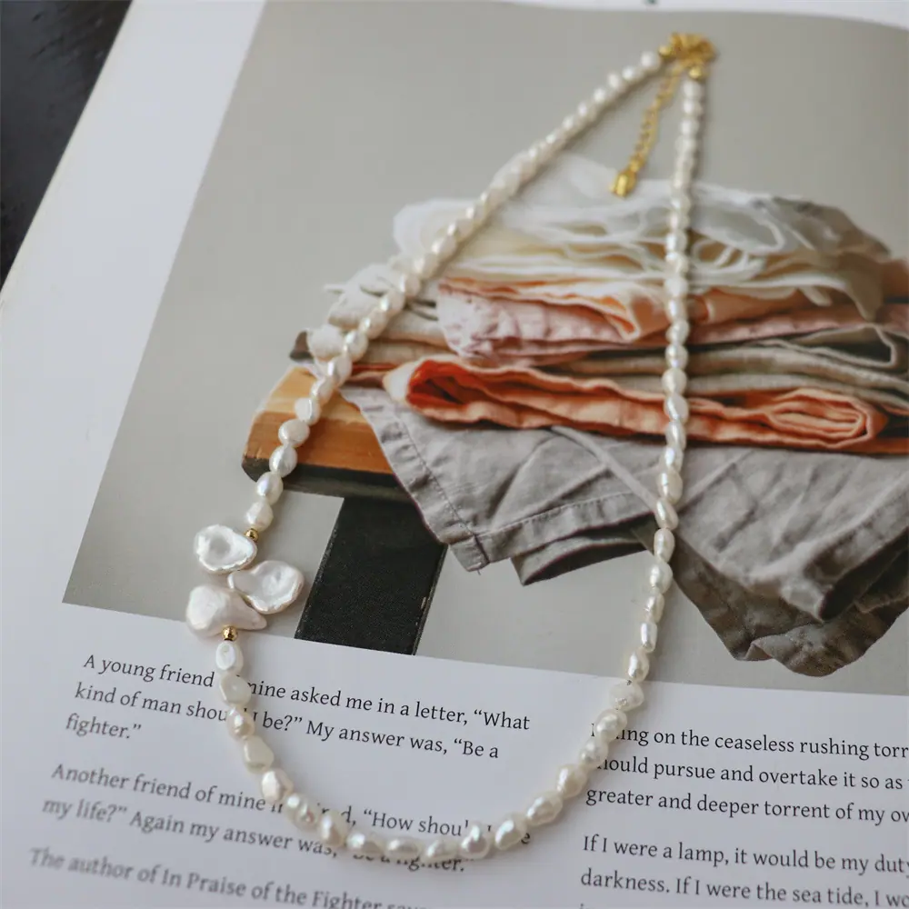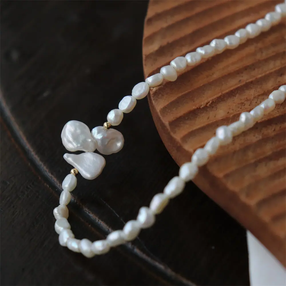 Nuevo Collar de Perlas Barrocas de Agua Dulce Simple Versátil Perlas Pétalo Mujeres Venta al por Mayor Flores