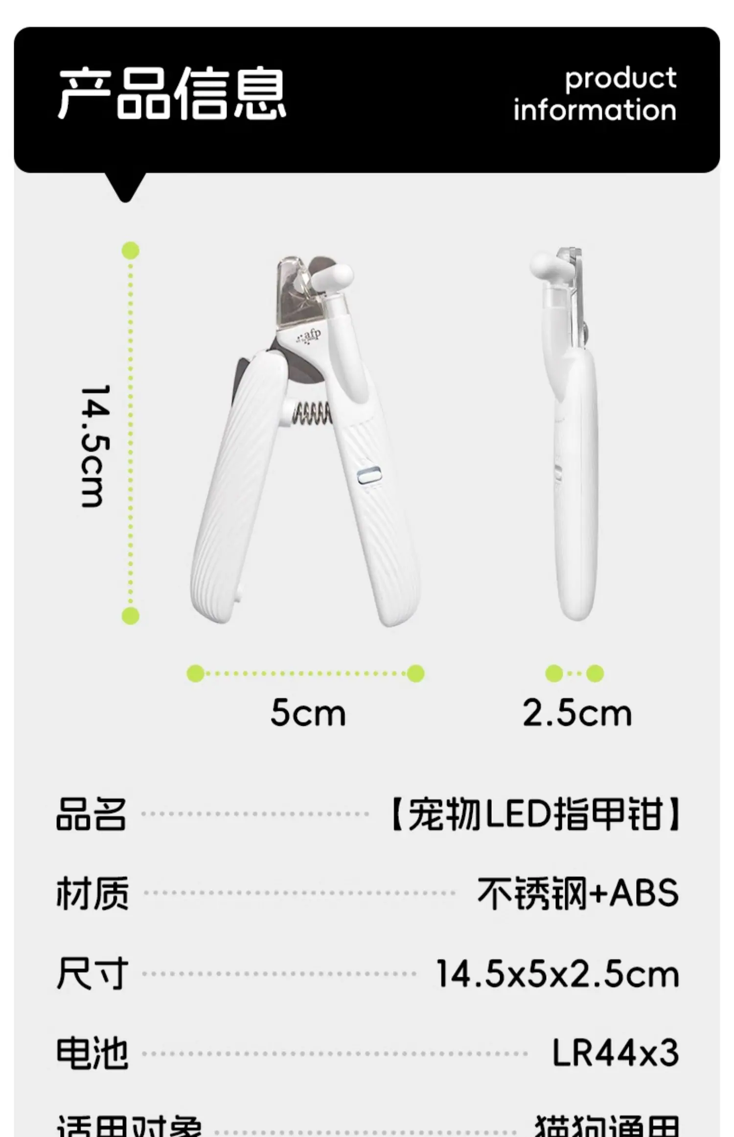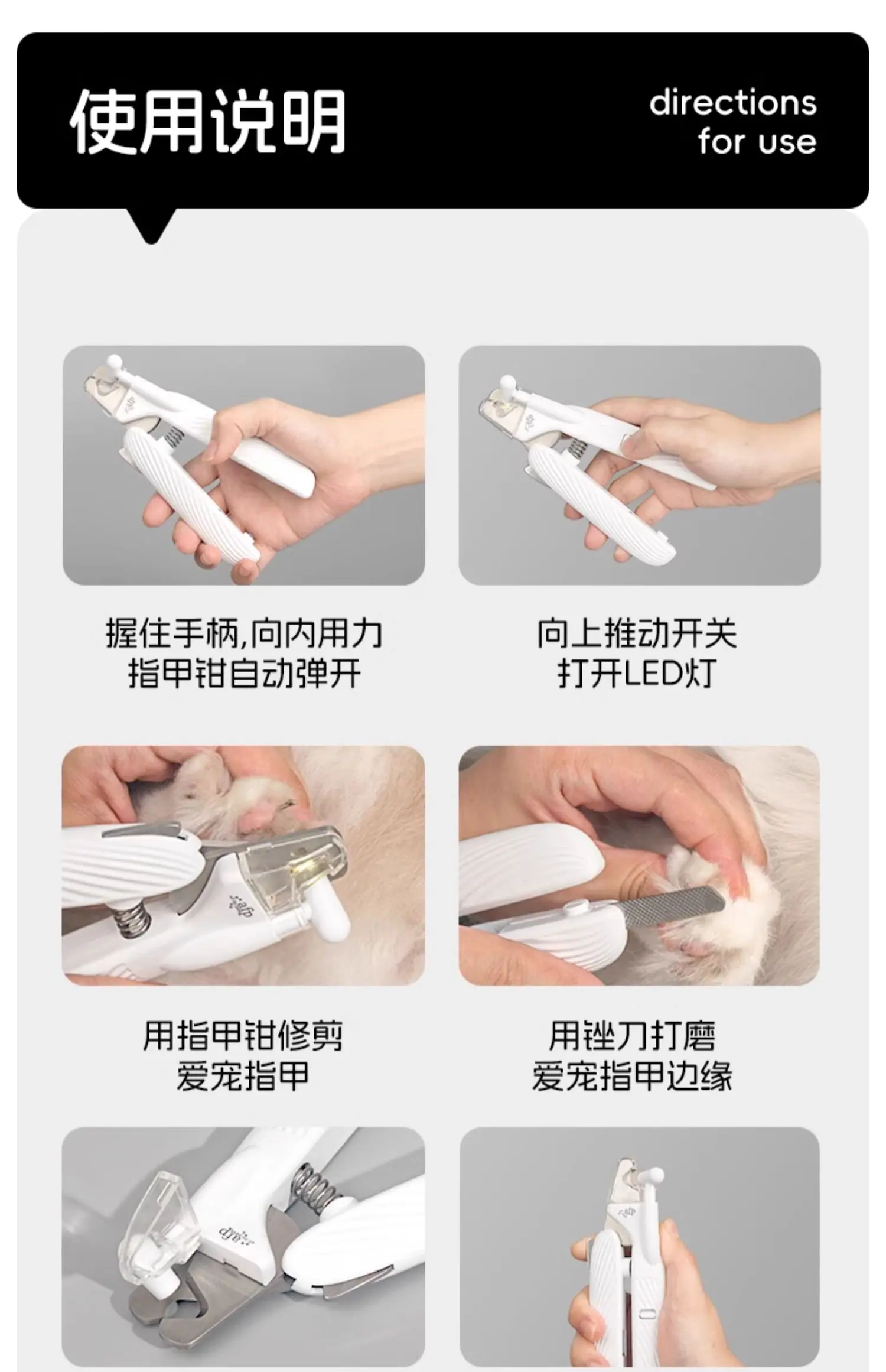 Afp pet cortauñas LED para mascotas colección flip-top hoja curva de acero inoxidable cortauñas para gatos perros corte de uñas seguro