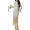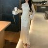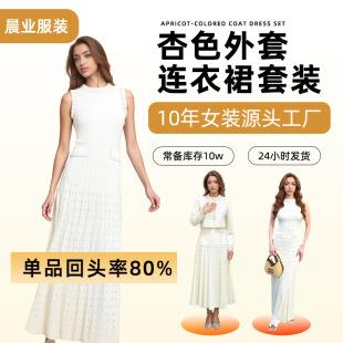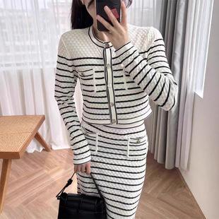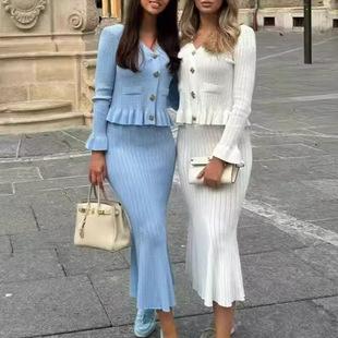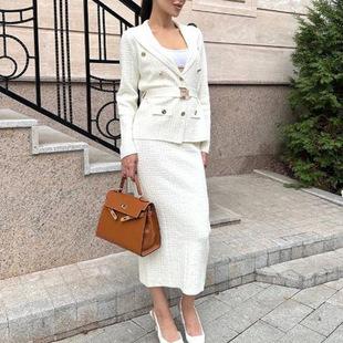 Nuevo Conjunto de Dos Piezas Estilo Little Chanel de Otoño Temprano 2025 Top de Punto de Manga Larga Acampanada con Aberturas Falda Midi Conjunto de Moda